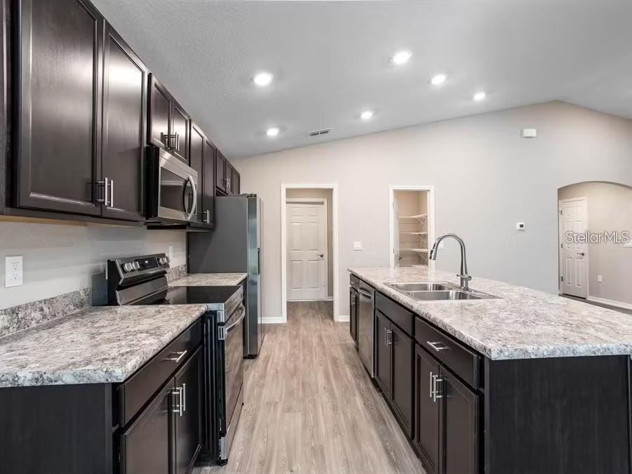 Em construção. Nova casa de construção com 1.545 pés quadrados em um andar, incluindo 3 quartos, 2 banheiros e uma área de estar aberta. Desfrute de uma cozinha aberta com bancadas de quartzo, utensílios de aço inoxidável Samsung, uma despensa e uma ilha espaçosa, totalmente aberta ao café e sala de jantar. A área de estar, a lavanderia e os banhos incluem piso de tábua de vinil de madeira de luxo, com tapete resistente a manchas nos quartos. A suíte do seu proprietário é completa com um guarda-roupa e um banheiro privativo com um chuveiro de azulejos e um banheiro fechado. Além disso, desfrute de um lanai coberto, garagem de 2 carros, persianas de janelas personalizadas, telhas arquitetônicas, isolamento e janelas com eficiência energética e uma garantia completa do construtor. "Observe que o Tour/Fotos virtuais mostra o layout da casa; cores e opções de design em casa real para venda podem diferir. Mobiliários e decoração não transmitem.