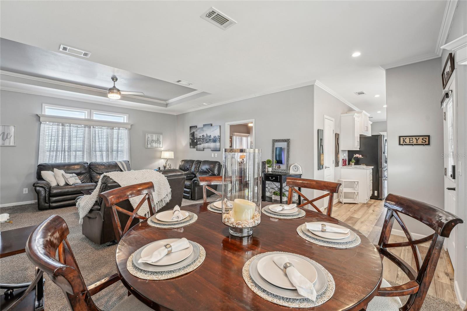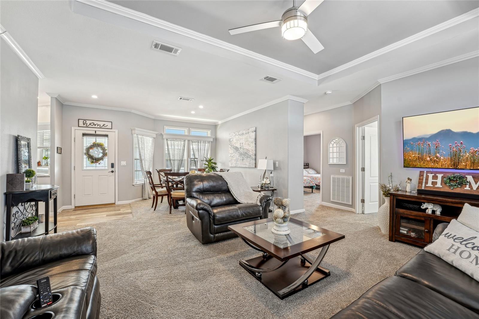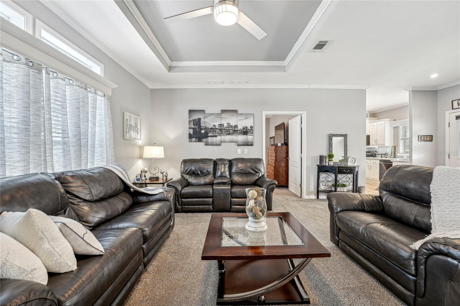 Novo preço! Bem-vindo à sua casa de sonho na procurada comunidade de mais de 55 anos de Grand Horizons, onde você possui sua terra! Esta casa de 2023 Skyline possui mais de US $ 70.000 em recursos e atualizações adicionais para a vida e facilidade modernas. Uma varanda de cadeira de balanço encantadora recebe você para relaxar enquanto com vista para o lindamente paisagístico quintal da frente. A garagem ampliada da pavimentadora permite o estacionamento lado a lado sob uma garagem coberta e inclui uma sala de armazenamento em grandes dimensões. No interior, a grande sala impressiona com um teto de bandeja e ampla luz natural de grandes janelas. O layout de conceito aberto conecta perfeitamente as áreas de estar e jantar, ideais para entretenimento. O sonho de um chef, a cozinha da galera apresenta armários brancos e de perto com moldagem por coroa, bancadas com aparência de mármore e aparelhos de primeira linha, incluindo uma geladeira Samsung Hub e aparelhos de aço inoxidável LG. Um recanto de café da manhã adjacente com portas de vidro deslizante leva à varanda da frente, aumentando o charme. O armário de lavanderia interior inclui uma lavadora e secadora de alta eficiência, mesa dobrável e prateleiras personalizadas. Projetado com um layout de quartos divididos, a suíte primária está localizada na frente da casa para obter a máxima privacidade e inclui dois armários com organizadores embutidos. O banho privativo apresenta pias duplas, espelhos personalizados e iluminação atualizada. O terceiro quarto, atualmente usado como sala de artesanato, poderia servir como um escritório ou covil. A ala de hóspedes oferece um banheiro de salão com acessórios atualizados e um armário de linho profundo. O apelo do meio -fio desta casa é inegável, com paisagismo exuberante, rodapé de tijolos e uma garagem coberta de 55x12 que acomoda dois carros, um carrinho de golfe e uma área de estar, todos em pavimentadores adoráveis. Moradores de Grand Horizons desfrutam de um condomínio fechado com comodidades excelentes, incluindo uma piscina aquecida, banheira de hidromassagem, clube com cozinha comercial, sala de bilhar, sala de artesanato/costura e uma biblioteca bem abastecida. Um calendário social vibrante inclui jantares de potluck, excursões de viagem e entretenimento, tudo em um bairro bem conservado. Convenientemente localizado perto de instalações médicas, compras, restaurantes e grandes rodovias para facilitar o acesso a Tampa, Lakeland, Orlando e às praias. Ligue hoje para fazer esta linda casa a sua!