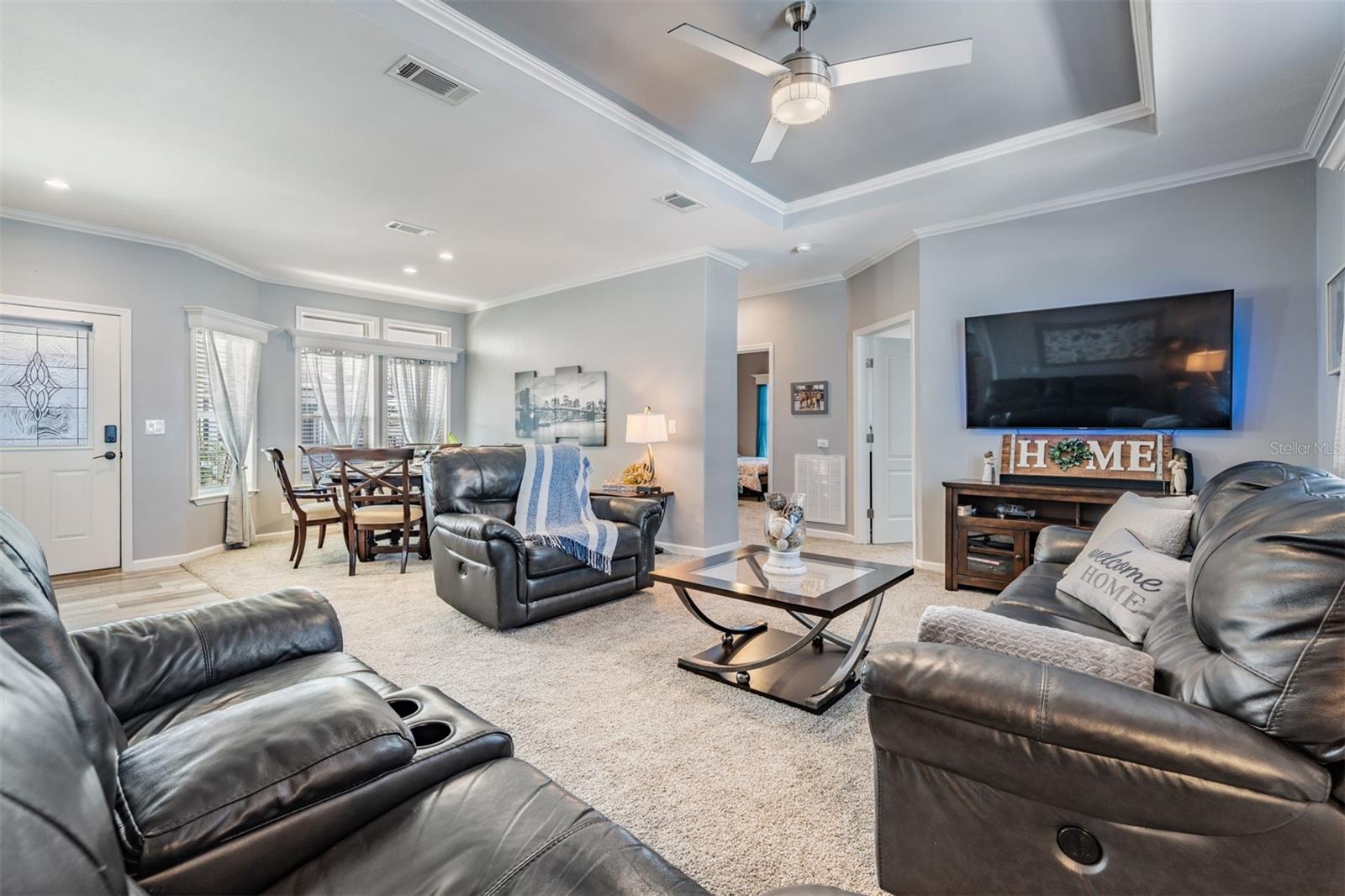 Melhor que novo e pronto para você! Linda 2023 Skyline Home em Grand Horizons, onde você possui sua terra, é carregado com mais de US $ 70.000 em recursos adicionais! A varanda da cadeira de balanço recebe você para se sentar e ficar um pouco com vista para o gramado da frente. A entrada deslumbrante da pavimentadora é ampliada para acomodar estacionamento lado a lado com garagem coberta e galpão enorme e anexo. Entre na linda porta da frente de vidro com chumbo na aterrissagem coberta em um espaçoso Greatroom com teto de bandeja e muitas janelas. Sala de jantar espaçosa e área de estar neste modelo Silver Springs Premier Le 5079 com planta baixa para maximizar o espaço divertido. A moldura da coroa ao longo deste interior recém -pintada aumenta o charme, com cornijas de madeira e janelas de popa coloridas adicionando muita luz natural. A cozinha da galera possui armários brancos e suaves com corda e molduras de coroa por cima e minimizam a iluminação abaixo, puxões inoxidáveis, geladeira familiar de Samsung Hub, utensílios de aço inoxidável LG, grande despensa de armário, balcões de mármore e um com comer no recanto do café da manhã com porta deslizante de vidro para acessar facilmente a vara da frente. Armador de lavanderia interior abriga a lavadora e secadora de alta eficiência de 2023 com a mesa dobrável acima e prateleiras personalizadas adicionadas para armazenamento adicional. O plano de quarto dividido tem o quarto principal na frente da casa, com 2 armários com organizadores embutidos, banheiro privativo com pias duplas, espelhos personalizados, iluminação atualizada e armário de água. O terceiro quarto está sendo usado como uma sala de artesanato/costura e seria um ótimo escritório/covil. O banheiro do Hall fica na asa de hóspedes e possui uma combinação de banheira/chuveiro, espelho atualizado, iluminação atualizada e um armário de linho profundo. Grande apelo ao meio -fio com a grama Lusch Saint Augustine, pátio paisagístico, rodapé de tijolos, calhas, garagem coberta profunda ... tempo suficiente para estacionar 2 carros e ter uma área de estar. O fechamento de mais de 55 anos da Grand Horizons oferece ruas particulares, terrenos bem bem cuidados e comodidades de propriedade residente: piscina aquecida e banheira de hidromassagem, belas vistas das colinas de East Pasco, clube com cozinha comercial, sala de bilhar, sala de artesanato/costura e biblioteca com filmes, quebra -cabeças, livros, jogos e DVDs. Atividades sociais planejadas, jantares de sorte, shows de jantar, excursões de viagem e entretenimento no local fornecido. Localizado a uma milha de instalações médicas, restaurantes, compras, boliche, teatro, grandes rodovias para facilitar o acesso a Tampa, Lakeland, Orlando, Ocala, aeroportos e as praias! Ligue hoje!