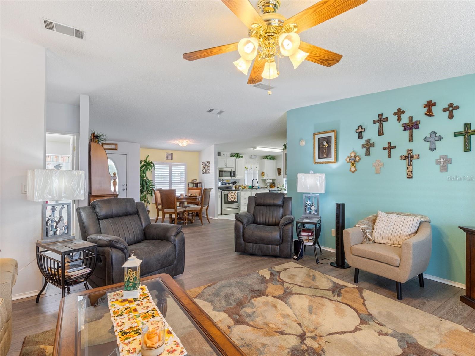 GRANDE APELO DE CURB neste lote de CANTO paisagístico em GRANDE HORIZONS FECHADO! Paisagismo tropical e garagem dupla com BRICK PAVER Driveway DÁ-LHE as boas-vindas a esta casa Jacobson de qualidade com galpão de grandes dimensões/garagem para carrinho de golfe e sala Florida com ar condicionado e vidro fechado. A entrada decorativa da porta de vidro com chumbo em uma planta baixa ABERTA e iluminada com janelas de popa acima para permitir a entrada de muita luz natural é um ótimo espaço de convivência. As salas de estar e de jantar estão ABERTAS, facilitando o entretenimento! MOVE PRONTO com pisos recém-ATUALIZADOS, torneiras, pia de cozinha, balcões, luminárias, eletrodomésticos em 2021, máquina de lavar louça 2022, novo AC e aquecedor de água 2021 e TELHADO NOVO em 2024. Plano de quarto dividido com retiro privado para proprietários com closet e banheiro privativo, com chuveiro grande reformado, cômoda elevada e penteadeira com pias duplas. Os quartos secundários possuem armários grandes; um é configurado como quarto de hóspedes e o outro como home office com vista para o amplo pátio lateral. Banheiro de hóspedes localizado na mesma ala dos quartos secundários e no extremo oposto da casa ao retiro dos proprietários, para maior privacidade. Impressionantes pisos laminados de madeira na cozinha e na sala de jantar contrastam com os pisos com aparência de madeira nas áreas comuns. Relaxe na sua espaçosa varanda frontal fechada em vidro com janelas deslizantes e ar condicionado e aprecie a vista! POSSUIR seu terreno neste bairro fechado e montanhoso com ruas privadas nesta comunidade ativa com mais de 55 anos, sem taxas de CDD, baixas taxas mensais de HOA e comodidades de propriedade dos residentes... clubhouse, cozinha comercial, sala de artesanato/costura, piscina aquecida, banheira de hidromassagem, shuffleboard, atividades planejadas e excursões emocionantes. Localizado ao norte de Tampa, em Zephyrhills, perto de todas as lojas, restaurantes, instalações médicas e principais rodovias para fácil acesso a Lakeland, Orlando, Tampa, Wesley Chapel, aeroportos e praias... LIGUE HOJE para saber por que este É o lugar para ESTAR !