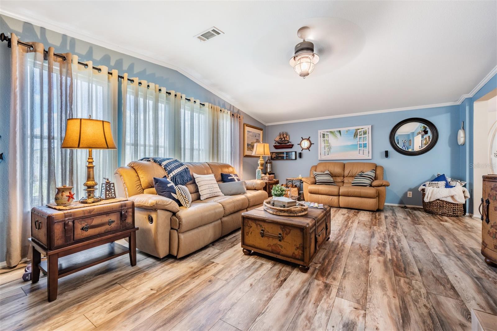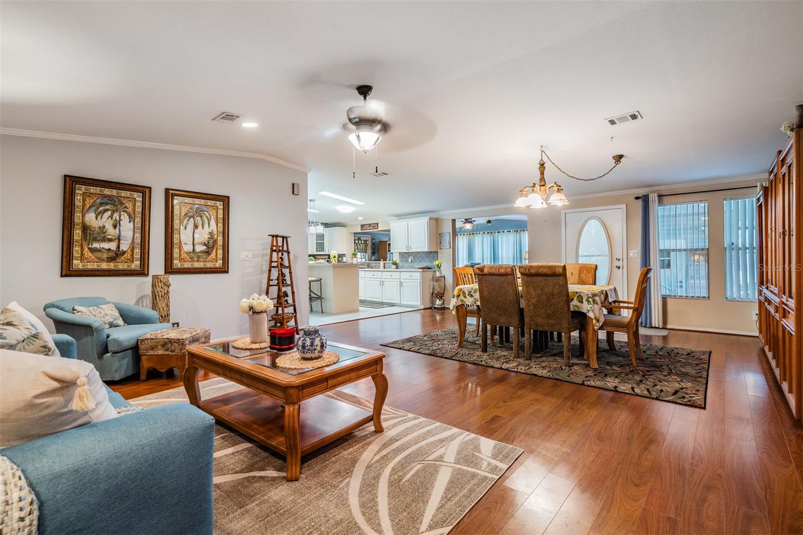 Linda casa em Gated Grand Horizons em Sunny Florida está pronta para novos proprietários! O paisagismo tropical recebe você nesta residência impecável, um proprietário! Pisos de madeira reluzentes o cumprimentam quando você entra pela porta da frente de vidro oval nesse espaçoso, aberto e de qualidade Palm Harbor "Seminole", com mais de 2.300 pés quadrados. Apresentando um novo telhado em 2024, o sistema HVAC em 2021 e uma cozinha gourmet equipada com geladeira de porta francesa inoxidável, forno duplo inoxidável, backsplash de ladrilhos, área de mesa e barra de ilha/café da manhã central, que serve como o centro desta casa. O entretenimento é facilitado com o passe/bar alto para o Den e uma área de vida/jantar aberta projetada para reuniões elegantes. Desfrute de noites relaxantes na varanda traseira, com vista para o jardim borboleta e gazebo ao lado. A casa é aprimorada com porta de tempestade para deixar a luz natural, janelas coloridas por toda parte, decoração de interiores de bom gosto, tubos solares para luz adicional e uma lavanderia interna com pia de utilidade. O retiro dos proprietários é grandioso, com portas francesas que se abrem para uma banheira de imersão romana em colunas, áreas de vaidade dupla e apresenta um armário de destaque, com janelas que rodam ao longo da duração da suíte primária. O plano dividido fornece privacidade com mais 3 quartos e um banheiro completo no lado oposto da casa. A garagem acomoda 4 carros, além de um grande galpão de utilidade com uma oficina anexada. Espaço adicional para sentar e desfrutar do lote bem-humorado parecido com um parque ao lado, completo com uma ponte de madeira. Possui sua terra nesta comunidade de mais de 55 anos, ao norte de Tampa, e desfrute de comodidades de propriedade residente, incluindo piscina e spa aquecidos, bilhar, um clube com cozinha comercial, shuffleboard, várias atividades, entretenimento no local e excursões. Ligue hoje para ver uma das casas mais agradáveis da região - professionalmente encenada e pronta para você!