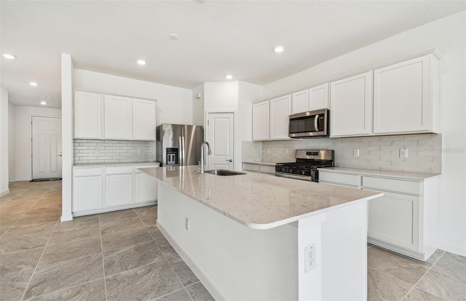 Uma ou mais fotos foram virtualmente encenadas. Mova-se pronto, disponível agora! Pulte Homes agora está à venda em Riverwood! Aproveite todos os benefícios de uma nova casa em construção neste condomínio altamente amenizado, idealmente localizado em Wesley Chapel. Este novo condomínio contará com uma piscina estilo resort com cabana aberta, clubhouse, academia, trilhas naturais, espaços verdes compartilhados, quadras de pickleball, sala de jogos com tela e parque para cães! Apresentando o design de casa Winthrop perfeitamente planejado com um layout de conceito aberto, esta casa tem todos os acabamentos atualizados que você procura. A cozinha de design apresenta uma grande ilha central com pia de tigela única e torneira atualizada, armários brancos modernos, bancadas de quartzo com backsplash de azulejos de 3 "x 11", despensa e eletrodomésticos Whirlpool de aço inoxidável, incluindo lava-louças, micro-ondas e fogão. Os banheiros possuem armários e bancadas combinando. Além disso, o banheiro do proprietário possui um box amplo, armário de roupa de cama e vaso sanitário privativo. Há piso de ladrilho de 22”x22” nas principais áreas de estar, banheiros e lavanderia, e carpete resistente a manchas nos quartos e loft. Esta casa aproveita muito o espaço com uma suíte do proprietário no 1º andar, quarto flexível versátil, loft grande, closets em três dos quatro quartos, lavanderia conveniente, depósito embaixo da escada e varanda coberta. Recursos adicionais e atualizações incluem downlights de LED, pré-fiação pendente na cozinha, preparação de TV na sala de reuniões e um pacote de tecnologia Smart Home com campainha de vídeo.