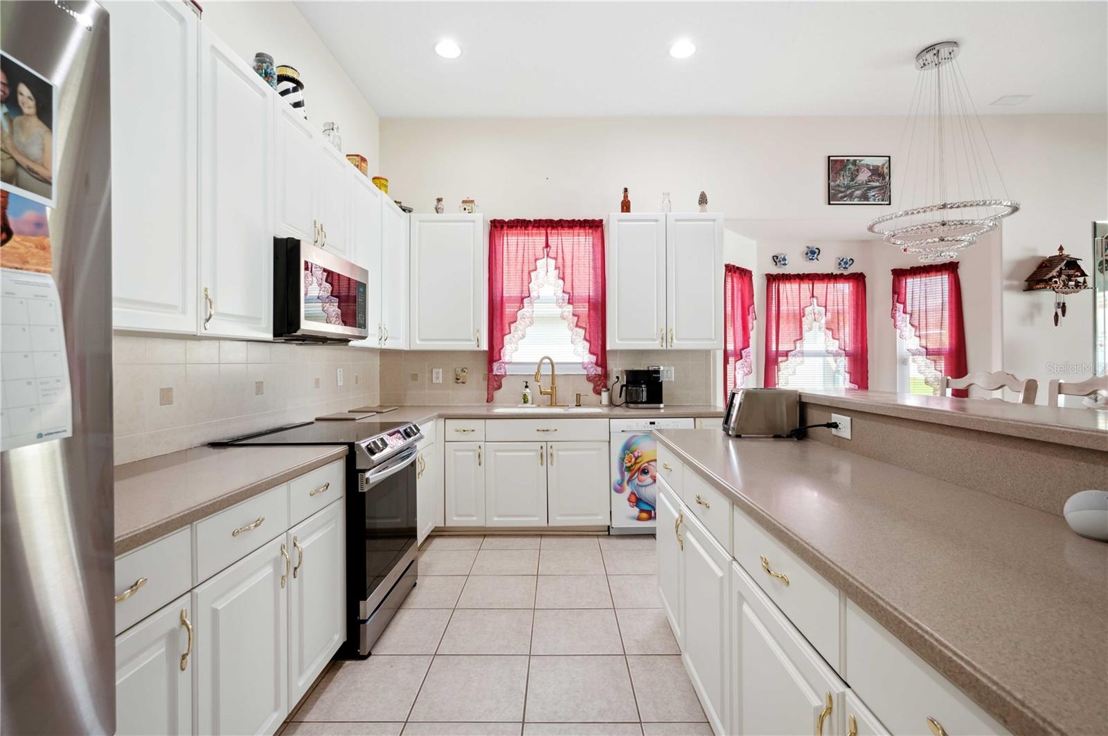 Ajuste do preço! Quando você se tornar um residente da comunidade Lake Bernadette, você estará cercado pelo campo de golfe de 18 buracos e terá acesso à piscina comunitária e tênis e quadras de pickles, playgrounds e quadras de basquete. Esta casa com 4BR/2BA mantida com 2304 pés quadrados de espaço de vida aquecido e resfriado e garagem para 3 carros não decepcionará. Você entra na casa através do grande hall de entrada aberta na sala de estar/área da sala de jantar com tetos altos, tapete macio e ventilador de teto. A cozinha bem equipada foi atualizada com eletrodomésticos SS, nova descarte em 2024, tem muitos armários e espaço com a adição de uma ilha central com bar de café da manhã e área de comer. Aberto para a sala da família com tetos de bandeja, ventilador de teto e controles deslizantes para os exibidos em Lanai, esse espaço se presta bem a facilitar a entretenimento familiar e amigos. Seu oásis de quintal privado é possível por uma cerca de vinil de baixa manutenção. Que grande espaço para deixar Fido ou fofo correr livremente ou observar seus filhos brincarem com segurança enquanto você relaxa em seu lanai fechado. Se você tiver membros da família em outra área da casa, poderá convocá-los para jantar com a conveniência do sistema de intercomunicações para casa. Você pode se aposentar para a noite na suíte do seu grande proprietário, com grande closet, tapete macio e banheiro privativo com vaidade dupla, chuveiro de azulejos e banheira separada para absorver o estresse do dia. Os quartos de dois a quatro são de tamanho bom para camas queen size, ventiladores de teto e grandes armários embutidos. O banheiro de hóspedes está convenientemente localizado adjacente a esses quartos com piso de cerâmica atualizado com altas quadros e combinação de banheira/chuveiro. A lavanderia também está localizada no corredor dos quartos e vem com lavadora/secadora e pia de utilidade. O acesso à garagem de 3 carros é obtido através da área de lavanderia. Ambas as portas de garagem têm abridores automáticos com um novo abridor recentemente na porta maior. Não há necessidade de se preocupar com o telhado. Novo telhado instalado este ano. AC instalado em 2023 e aquecedor de água também este ano também. Janelas duplas e uma nova porta da frente adicionadas em 2022. Esta casa é a chave e a mudança pronta. Então, o que você está esperando? Agende sua consulta hoje e você estará no caminho para o luxo que vive nesta bela comunidade!