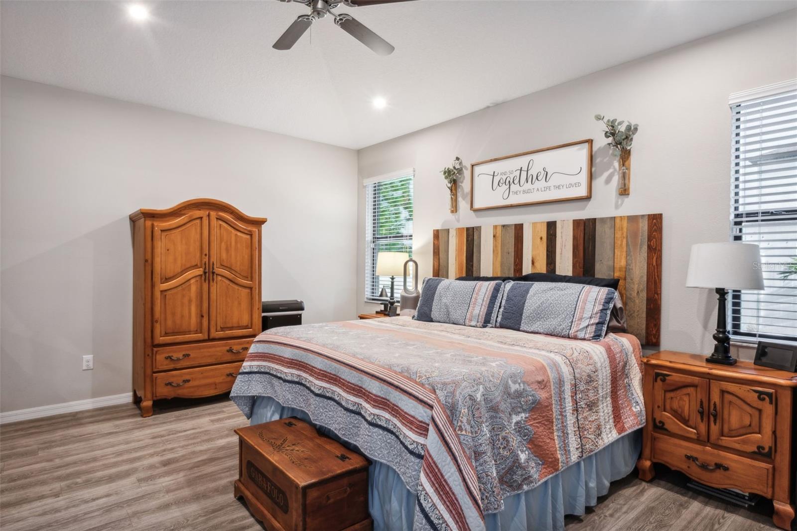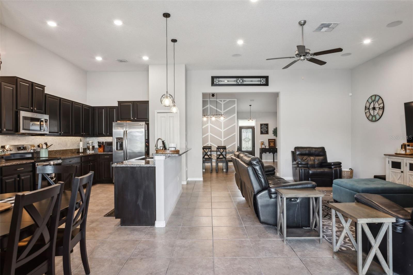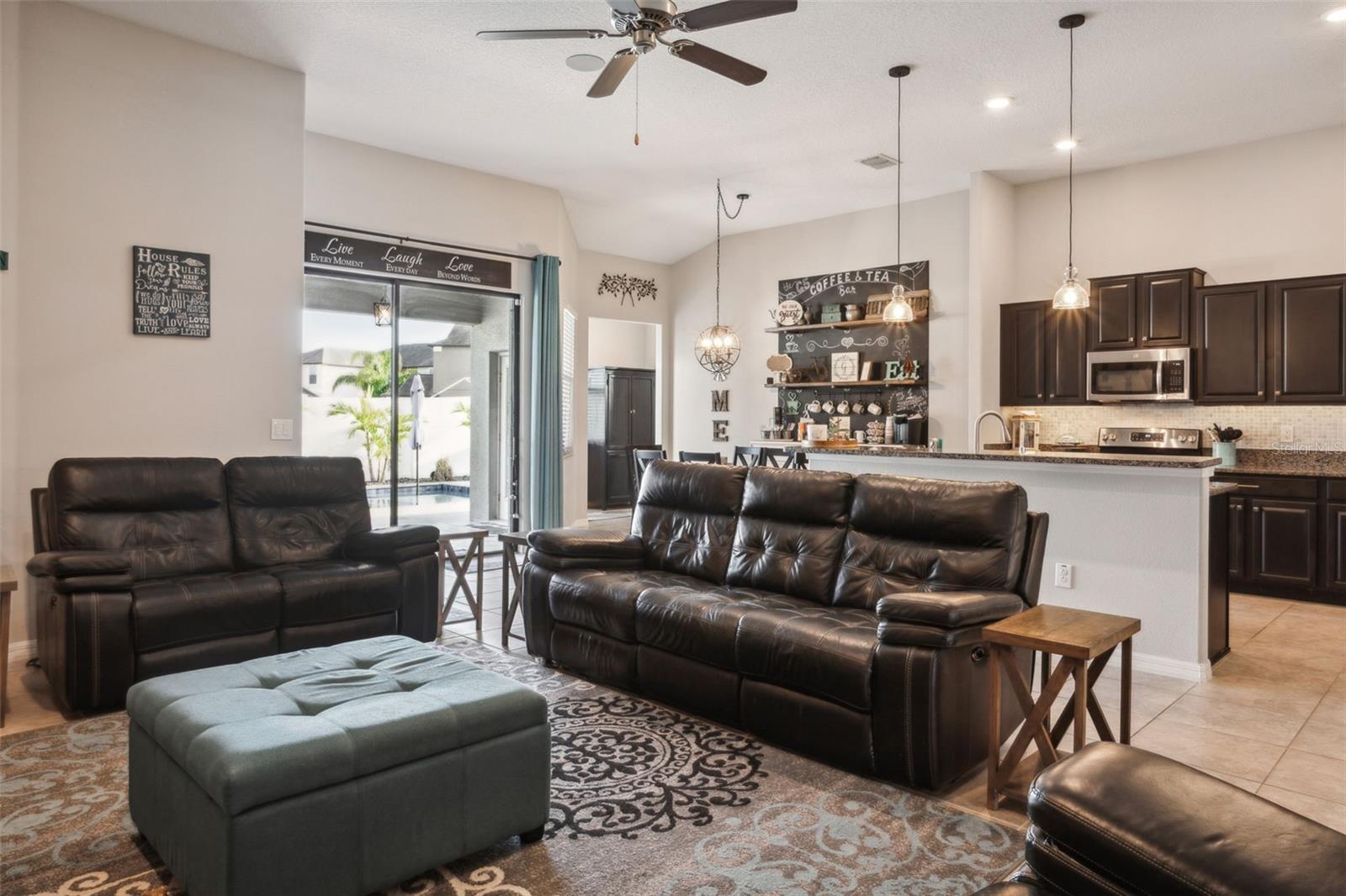 Preço reduzido para este lote de canto atraente !! Uma casa lindamente atualizada, criando uma experiência de vida de luxo! Esta casa de canto notavelmente decorada é espaçosa e brilhante, com 4 quartos, 3 banheiros, uma garagem para 3 carros, um escritório em casa, uma sala de jantar formal e uma cozinha elegante com vista para uma sala familiar grande. Teto de volume, ladrilhos de cerâmica e fluxo de piso laminado de qualidade por toda essa casa bem equipada. Uma vez lá dentro, você é recebido por uma atraente sala de jantar com uma parede de sotaque artesanal e armários embutidos, todos destacados por uma porta de celeiro deslizante personalizada que leva a um escritório em casa particular. O grande quarto da família tem um apelo caloroso e convidativo e inclui alto -falantes de teto de som surround, ótimos para assistir filmes, esportes ou divertidos. Com vista para a sala da família, há uma cozinha atraente, oferecendo muitos armários acentuados por bancadas da moda, uma barra de café da manhã conveniente e assentos úteis de lanchonete. Além disso, há uma área elegante de café e bar de chá, iluminação pendente e embutida, uma despensa de armário e todos os aparelhos de aço inoxidável ficarão! O espaçoso quarto principal inclui piso de madeira laminado e um enorme closet. O banheiro principal tem uma vaidade de bancada de quartzo dupla, chuveiro e banho de jardim separados. Esta planta baixa incluída inclui 3 quartos espaçosos adicionais, cada um com amplo espaço no armário. Não se esqueça da conveniência de um escritório em casa também como um bônus! Vá ao ar livre para relaxar e relaxar pela calma da piscina de água salgada cercada por belos ladrilhos de travertino, paisagismo exuberante, iluminação de acentuação e alto-falantes estéreo, todos aninhados na privacidade do seu quintal com cercado de vinil. Destaques e recursos adicionais incluem um exterior recém-pintado, calhas de chuva, quintal cercado de vinil, uma lavanderia interna e um quintal de baixa manutenção com grama artificial para animais de estimação. Esta casa inteligente permite que o proprietário controla os termostatos, luzes e outros dispositivos sem fio remotamente por meio de uma conexão com a Internet usando um smartphone ou tablet. Os recursos do Smart Home incluem o Google Home, a iluminação controlada durante a maior parte da casa, a câmera da porta da frente do anel, as câmeras de segurança externa e as opções de música sem fio. Os moradores do Silverado Ranch desfrutam de várias comodidades comunitárias, incluindo acesso à piscina, um playground e um parque para cães. Esta casa está em uma excelente localização perto de campos de golfe da área, um hospital e muitas opções de compras. Venha ver esta casa pessoalmente hoje!