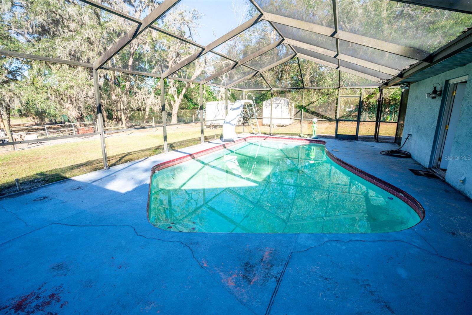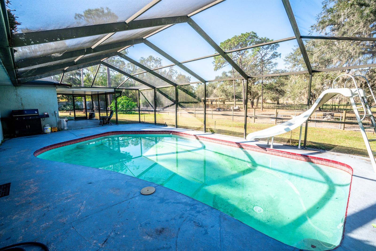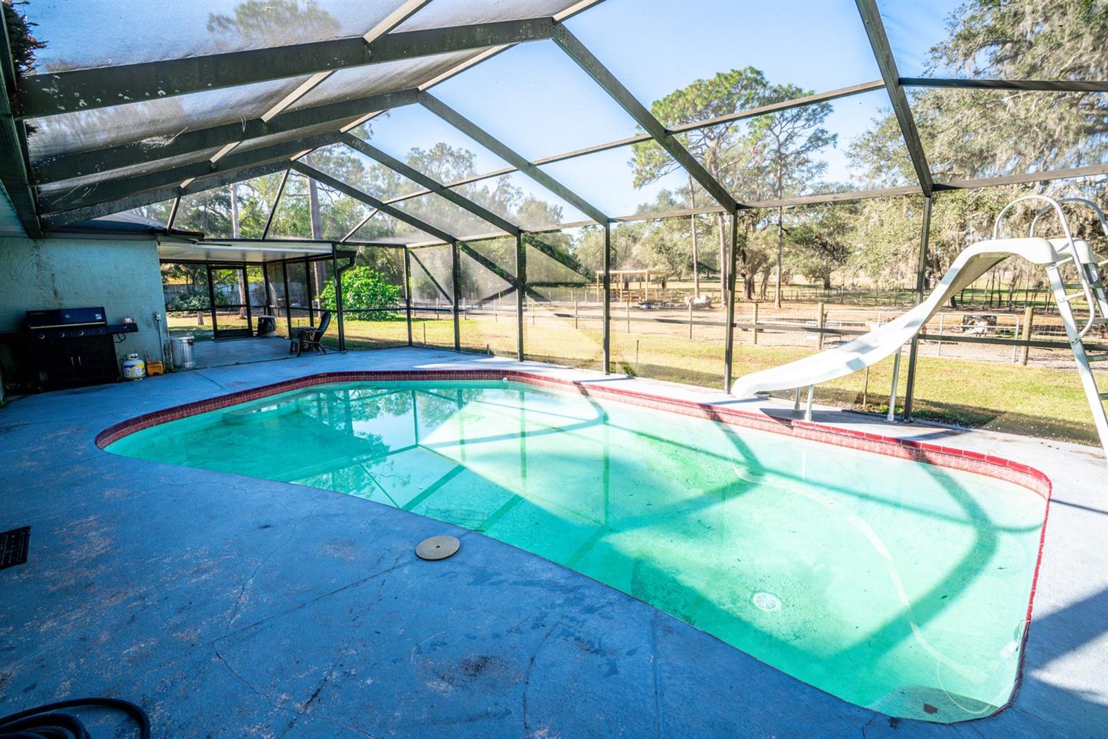Vendedor motivado- Escape para o seu retiro pacífico em quase 2 acres de terra serena, livre de restrições de HOA e CDD, piscina privada. Esta casa espaçosa oferece vistas deslumbrantes e muito espaço para explorar e relaxar. Esta propriedade foi projetada para vida confortável e possui três quartos de tamanho generoso, 2 banheiros, uma piscina enjaulada e uma garagem de 2 carros. Lá dentro, você encontrará uma grande sala familiar com uma lareira aconchegante, uma sala de jantar formal e uma cozinha de comer-perfeita para entretenimento e vida cotidiana. Esta casa está convenientemente localizada perto de escolas, compras, restaurantes e muito mais, e oferece a mistura ideal de privacidade e acessibilidade. Não perca a chance de fazer este próprio refúgio tranquilo - faça sua exibição hoje antes que se acabe