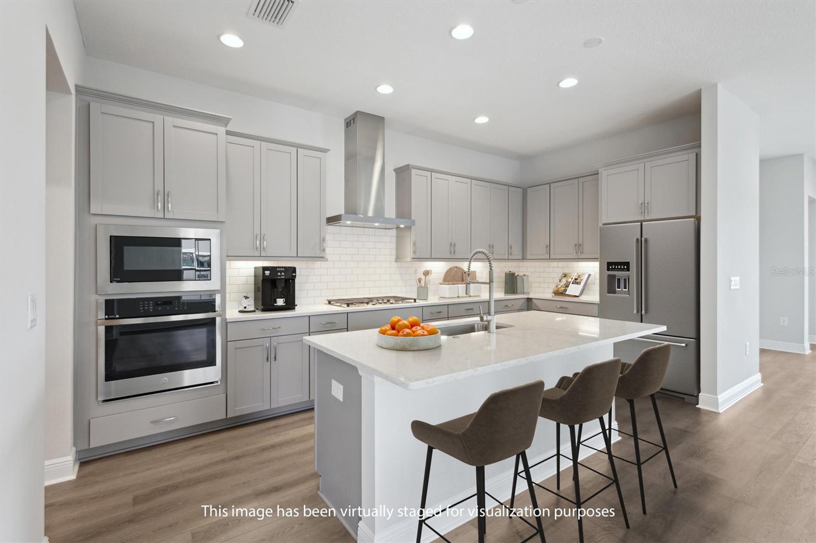 Uma ou mais fotos foram virtualmente encenadas. Esta villa Vinoy Quick Move-In está pronta agora! Vida de luxo com espaço extra ao ar livre - Villa Vinoy no cobiçado Two Rivers West. Ao entrar em uma vila elevada, viva com esta excepcional planta Vinoy, localizada na muito procurada comunidade de Two Rivers West. Projetada para quem valoriza o luxo e a facilidade de baixa manutenção, esta residência combina acabamentos de luxo com um design inteligente. Situada em um lote premium com vista para o lago e servidão adjacente, esta casa de 2 quartos e 2,5 banheiros com uma sala flexível oferece mais espaço no quintal e privacidade, perfeita para quem gosta de viver ao ar livre. Com 2.160 pés quadrados de design de conceito aberto e tetos altos de 10 pés, a casa recebe luz natural e fluxo interno-externo contínuo através de portas de vidro deslizantes de 12 pés que levam ao seu retiro na varanda privada. No centro da casa há uma cozinha gourmet deslumbrante, completa com uma ilha enorme e eletrodomésticos GE de aço inoxidável. Os luxuosos gabinetes Sonoma Duraform Stone definem um tom moderno, complementados por lindas bancadas de quartzo Minuet LX 3CM. O elegante piso de pranchas de vinil com aparência de madeira se estende pelas principais áreas de estar, com carpete nos quartos para maior conforto. Os detalhes sofisticados incluem tetos de bandeja no hall de entrada, sala e suíte do proprietário, juntamente com o pacote de acabamento exclusivo da Homes by WestBay. Soluções de armazenamento inteligentes são encontradas em toda a casa, incluindo uma despensa e armários espaçosos no retiro do proprietário, na suíte de hóspedes e no escritório. A garagem, com tetos de 10 pés, inclui espaço de armazenamento extra, um aquecedor de água com classificação GE Energy Star e é pré-instalada para um sistema de filtragem de água em toda a casa. Aproveite a facilidade de uma vida livre de manutenção, onde o cuidado do gramado, paisagismo, irrigação, fertilização, controle de pragas, pintura externa e manutenção do telhado são feitos para você. Internet Ultra-Fi de alta velocidade também está incluída, permitindo que você realmente relaxe e aproveite sua casa. Two Rivers West é uma comunidade vibrante inspirada na natureza que oferece trilhas para caminhada, recreação ao ar livre e o próximo Landing at Two Rivers, um futuro centro de comodidades com inauguração prevista para o outono de 2026. Convenientemente localizado perto dos principais destinos gastronômicos e de compras de Wesley Chapel, com fácil acesso às melhores atrações de Tampa. O preço inclui lote premium com vista para o lago com servidão, opções estruturais e atualizações indicadas pelo designer.