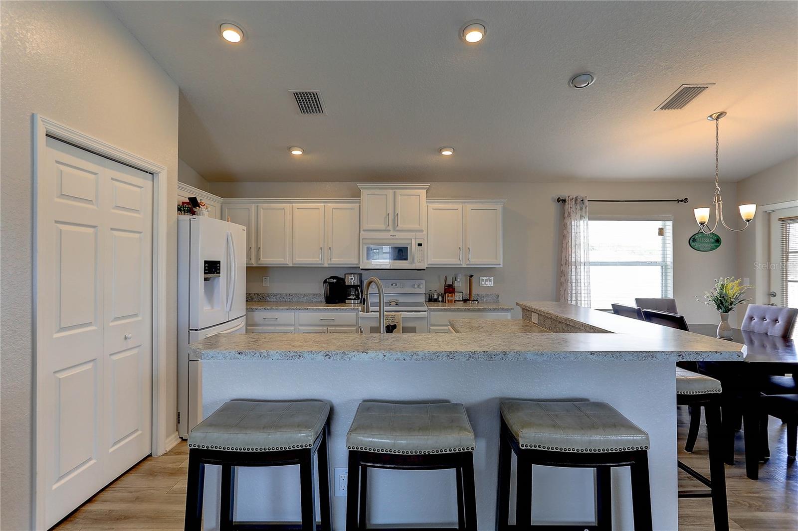 Corte de preço de $ 25.000! ESTE SERÁ VENDIDO! ALÉM DISSO, SE O COMPRADOR QUISER O MÓVEL MUITO BONITO E POUCO USADO, O VENDEDOR O INCLUIRÁ SEM CUSTO ADICIONAL, DEIXADO COMO COMODIDADE AOS VENDEDORES (SEM VALOR MONITÁRIO DADO NA TRANSAÇÃO). Bem-vindo a esta casa em estilo rancho construída em 2017, com 3 quartos e 2 banheiros, 1.493 pés quadrados e garagem anexa para 2 carros. Localizado em um terreno sem saída totalmente cercado e voltado para um lago e reserva. Não há vizinhos traseiros neste. O lote em formato de torta deixa muito espaço para atividades ao ar livre. A cerca de vinil desce de uma cerca de privacidade de 6' para uma cerca de ripas de 4' para aproveitar o lago e preservar a vista enquanto mantém nossos amigos peludos confinados. A varanda frontal coberta e a varanda traseira coberta oferecem espaço para vida ao ar livre. Esta casa apresenta uma excelente planta baixa com um cômodo grande e abobadado contendo a sala de estar, cozinha com assentos de bar e área de jantar. Grande e bonito com piso de pranchas de vinil maciço e toneladas de janelas para luz natural. A cozinha é feita em armários brancos com eletrodomésticos brancos incluindo fogão, exaustor de micro-ondas, geladeira e lava-louças. Há uma despensa no armário. Há lugares sentados no bar da ilha, além de espaço para mesa de jantar e cadeiras. A suíte principal fica em um lado da casa e possui closet e banheiro privativo com pia dupla, box amplo e banheiro separado. Os quartos de hóspedes do outro lado da casa são amplos e compartilham um banheiro no corredor. A despensa interna com lavadora e secadora está localizada fora da ala de hóspedes que leva à garagem para 2 carros. com um abridor de porta de garagem recentemente substituído. Existe todo um sistema de filtragem de água doméstico na garagem. O vendedor adicionou calhas e calhas em toda a casa. Esta casa teve muito pouco uso nos últimos anos e apresenta-se muito bem. As comunidades de Chapel Creek oferecem comodidades em estilo resort, incluindo piscina com entrada zero, cabana, parque para cães, playground e trilhas panorâmicas para caminhada com estações de fitness. Uma excelente localização convenientemente localizada com acesso rápido aos EUA HWY 301, I-75, SR 54 e SR 56, à singularidade da pequena cidade de Zephyrhills e Dade City, além dos negócios e compras de Tampa Premium Outlets e Wiregrass Mall. Tudo dentro de uma viagem razoável. Esta casa está aceitando novos financiamentos FHA, VA ou convencionais, além dos empréstimos ZERO do USDA. Fale com seu credor para obter detalhes específicos para sua situação. Reserve um momento e veja todas as fotos profissionais e depois ligue para o seu corretor de imóveis para marcar uma visita para ver esta casa.