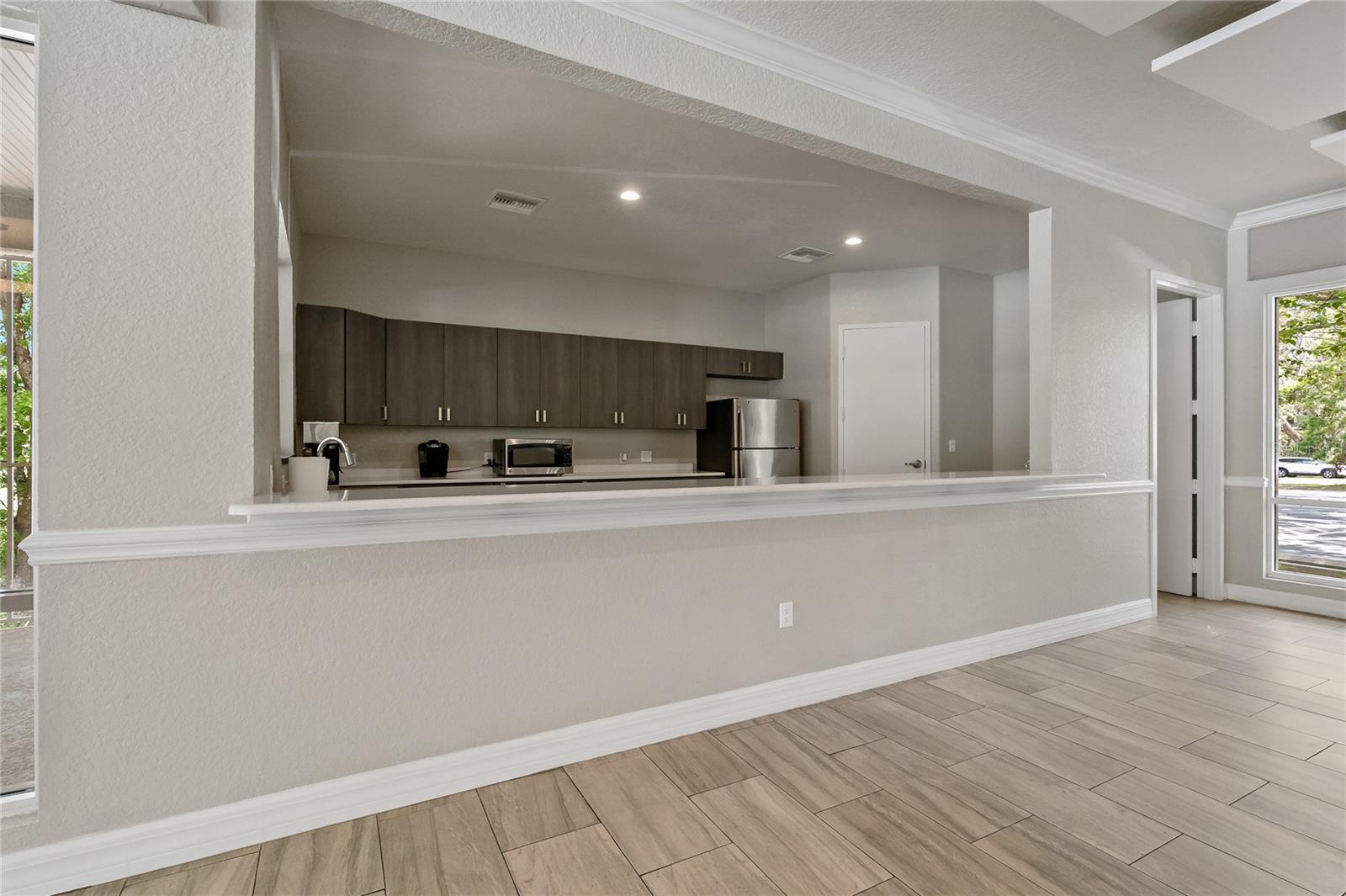 Downsizing ou procurando a primeira casa que não quebrará seu orçamento? Esta adorável vila sem manutenção de garagem de 2 quartos, 2 banheiros, está esperando por você na comunidade de campo de golfe do lago Bernadette em Zephyrhills. Quando você entra na casa, sua visão é levada à vista do lado de fora do Lanai. O espaço ao ar livre tem sido lindamente paisagístico e é um oásis natural para desfrutar enquanto está sentado no lanai exibido, aproveitando qualquer que seja sua bebida favorita. Agora vamos voltar para o interior da casa. A cozinha com um espaço para comer tem vista para a combinação Great Room/Dining Roe, que, como todos os quartos nesta casa, é muito espaçosa. Todas as áreas de estar têm pisos laminados com telha cerâmica na cozinha e nos banheiros. Não há carpete nesta casa. O quarto principal tem vista para o belo quintal e tem um closet e banheira de suíte com pias duplas e chuveiro, sem banheira. O segundo quarto e banheiro têm privacidade na frente da casa. Novo teto em 2025. O teto atual tem apenas 9 anos, mas o HOA está substituindo os telhados em Augusta Link neste verão. O aquecedor de água quente tem um ano de idade. A chave para esta casa é sua localização no beco sem saída. No lado sul da casa, há um grande espaço aberto, sem vizinhos e flui para o belo quintal. A comunidade fornece muitas comodidades para desfrutar. O clube com fitness center foi reformado há cerca de dois anos. Existem duas piscinas (uma é aquecida): parque, playground, pickleball, basquete e quadras de tênis. A taxa de HOA para as villas inclui substituição do telhado, pintura externa, linha do gramado, lixo e sistema de irrigação de água recuperada. Perto de todo o novo crescimento comercial em Zephyrhills e a uma curta distância de carro da Wesley Chapel, onde há muito crescimento de compras e restaurantes.