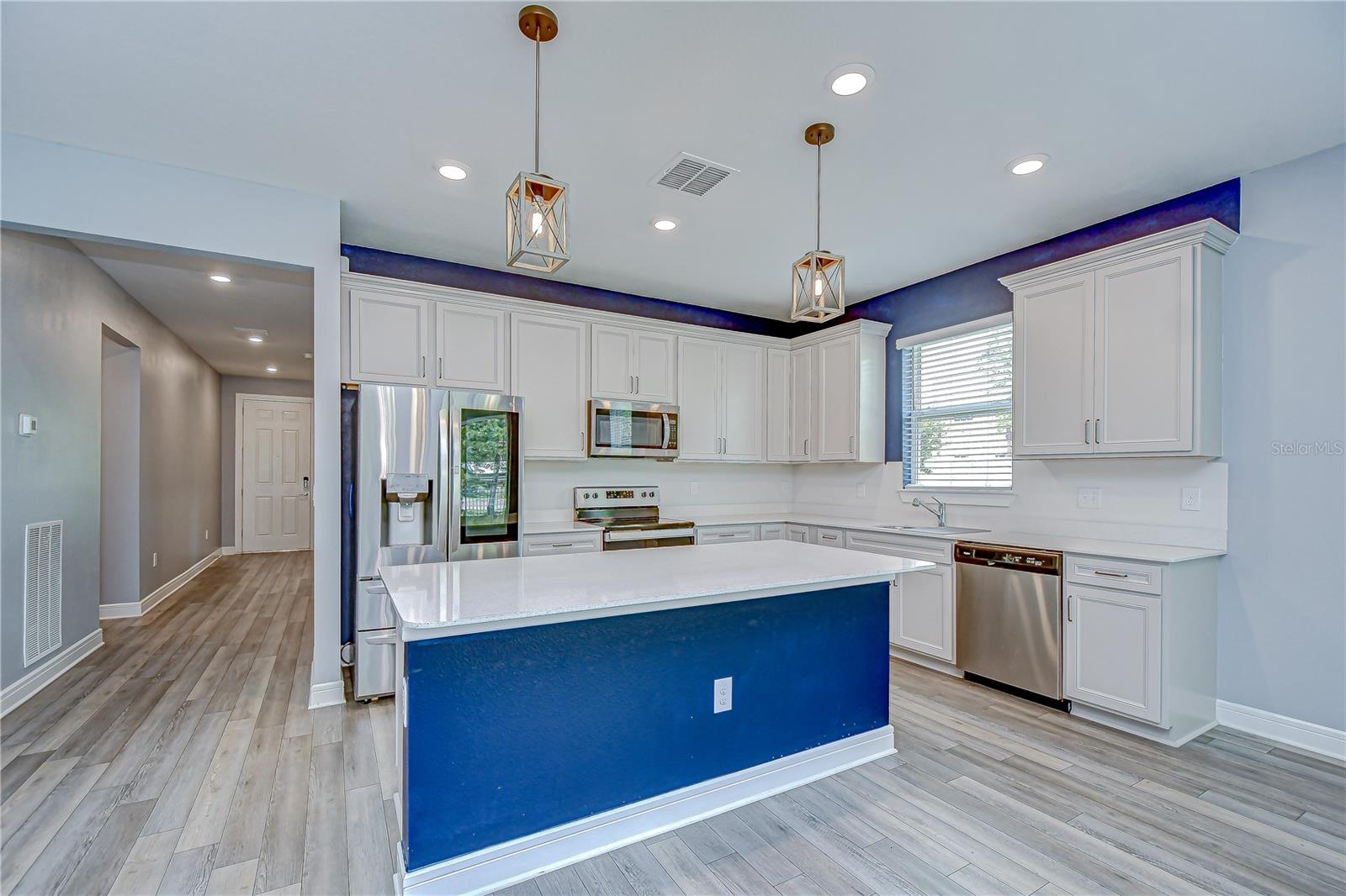 Venda a descoberto. Descubra a combinação perfeita de estilo, conforto e paz de espírito nesta casa lindamente projetada de 4 quartos e 2 banheiros, situada em um terreno premium, sem vizinhos laterais. A partir do momento em que você chegar, você será recebido por portas altas de 2,5 metros que se abrem para um layout espaçoso e de conceito aberto - ideal para noites familiares animadas e divertidas. O coração da casa é uma cozinha gourmet deslumbrante, completa com elegantes bancadas de quartzo, armários elegantes e muito espaço de preparação para inspirar o chef que há dentro de você. O luxuoso piso de pranchas de vinil adiciona um toque moderno ao mesmo tempo que oferece durabilidade para vidas ocupadas, e o carpete macio nos quartos cria retiros aconchegantes e tranquilos. A planta dividida cuidadosamente projetada oferece o máximo de privacidade, com a serena suíte principal escondida na parte de trás da casa - seu refúgio pessoal, com amplo espaço e uma atmosfera de spa. A luz natural abundante entra pelas grandes janelas, aprimorada pela iluminação embutida que traz um brilho quente por toda parte. Saia para o seu amplo pátio coberto, o local perfeito para tomar café da manhã, jantar ao ar livre ou relaxar à noite. Desfrute de um quintal espaçoso com espaço para relaxar, jardinar ou brincar - tudo emoldurado pela tranquilidade do seu terreno de esquina. Não perca a chance de possuir esta casa extraordinária que realmente preenche todos os requisitos. Um pouco além do bairro, você encontrará o renomado Silverado Golf & Country Club – um campo de 18 buracos, par 71, estilo campeonato, celebrado como um dos melhores da Flórida. Para os amantes do tênis e do pickleball, o novíssimo Sarah Vande Berg Tennis Center oferece instalações e programação de classe mundial. Além disso, com fácil acesso à rodovia interestadual, você estará a apenas uma curta distância de carro de torcer por seus times esportivos favoritos de Tampa Bay ou de desfrutar de um fim de semana nas praias cintilantes da Costa do Golfo. Agende hoje mesmo seu tour privado e experimente o estilo de vida que você sempre sonhou!