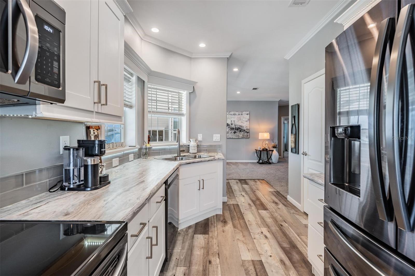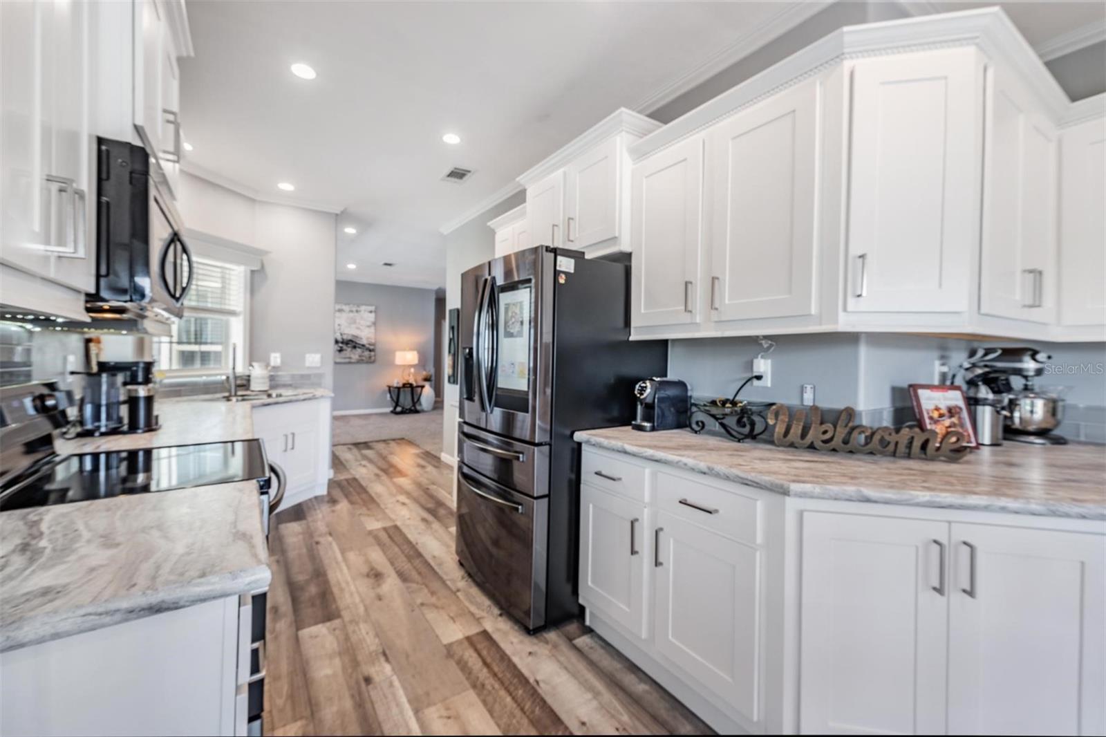 Boa atualização de preço!!!! nesta linda casa construída sob medida, em seu condomínio fechado de Grand Horizons !!!!! Quase nova, com mais de US$ 70 mil em upgrades, a casa de 3 quartos e 2 banheiros oferece uma vida espaçosa e elegante em uma das comunidades mais desejáveis de Zephyrhills com mais de 55 anos. Construído em 2022, este modelo Silver Springs Premier LE 5079 possui uma planta aberta e iluminada com sancas por toda parte, adicionando um toque de elegância a todos os quartos, sala espaçosa com teto falso e grandes janelas de painel duplo, permitindo ampla luz natural. Cozinha Gourmet, armários soft-close com sancas, bancada em mármore, pia dupla, geladeira Samsung Hub e eletrodomésticos LG em aço inox. Espaçosa área de refeições na cozinha, portas de correr que levam à varanda frontal ampliada para desfrutar de sua xícara de café da manhã ou de vinho à noite. Armário de despensa de bom tamanho para todos os seus itens essenciais de alimentação. Armário de lavanderia com lavadora e secadora LG 2023 com prateleiras personalizadas. A suíte principal possui closets para ele e para ela, banheiro privativo com pias divididas. O segundo e terceiro quartos têm um bom tamanho para visitar amigos, familiares e/ou escritórios. O segundo banheiro possui banheira, armário de roupa de cama e iluminação aprimorada. Os tetos altos e o luxuoso piso vinílico na área da cozinha aumentam a sensação de espaço e conforto por toda parte. Uma verdadeira característica de destaque é a impressionante garagem para 2 carros e a garagem alargada, proporcionando espaço de estacionamento extra para hóspedes e veículos adicionais - perfeito para famílias com vários carros ou entretenimento. Galpão de armazenamento grande e anexo para todas as suas ferramentas. Grama de Santo Agostinho com belo paisagismo e manutenção, iluminação externa, rodapé de tijolos circunda a casa para grande apelo curvo e calhas de chuva para drenagem adequada da água. aproveite as comodidades da comunidade - desfrute de um condomínio fechado com comodidades excelentes, incluindo piscina aquecida, banheira de hidromassagem, clube com cozinha comercial, sala de bilhar, sala de artesanato/costura e uma biblioteca bem abastecida e experimente uma vida livre de manutenção com um HOA mensal muito baixo e sem CDD neste condomínio fechado lindamente mantido.