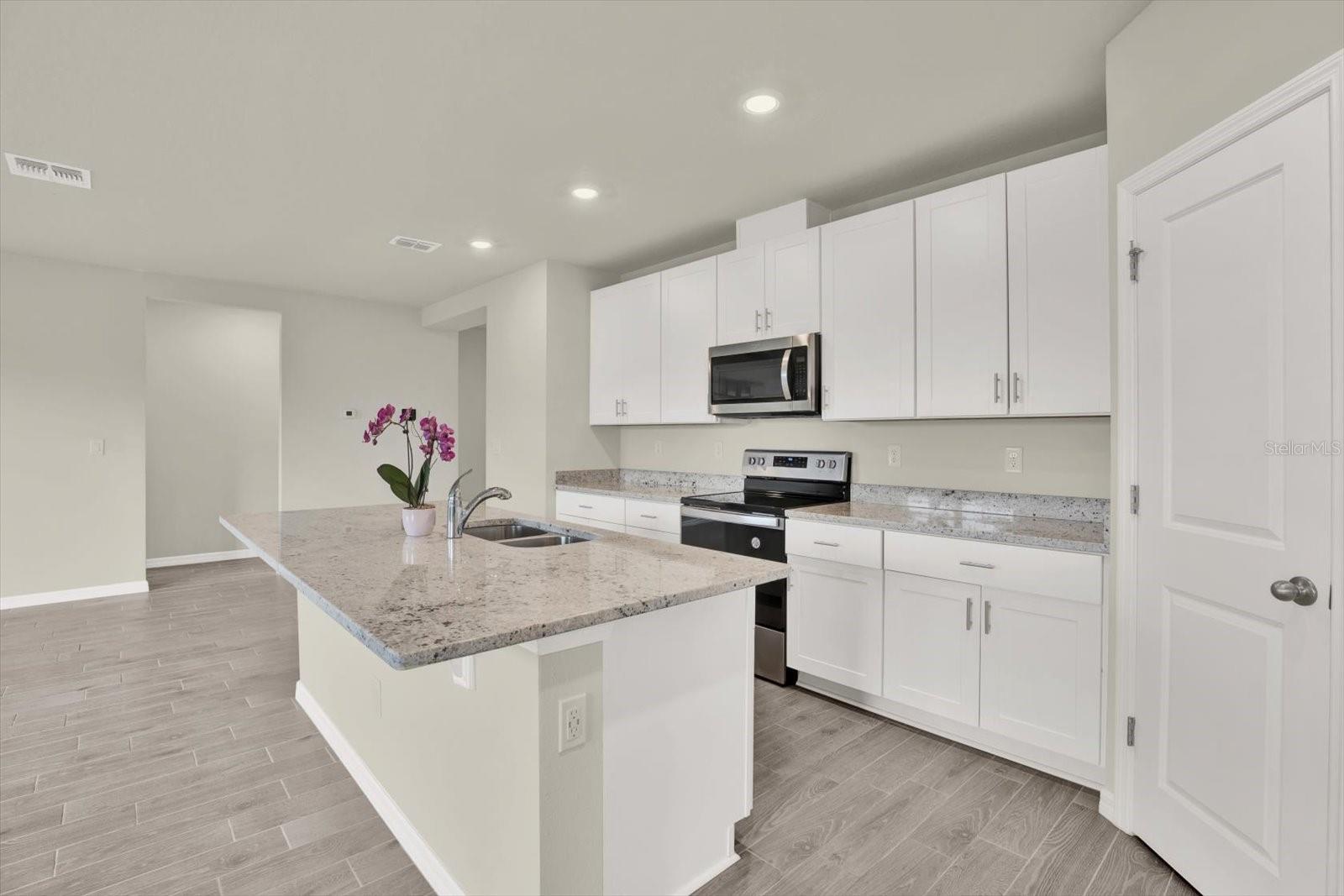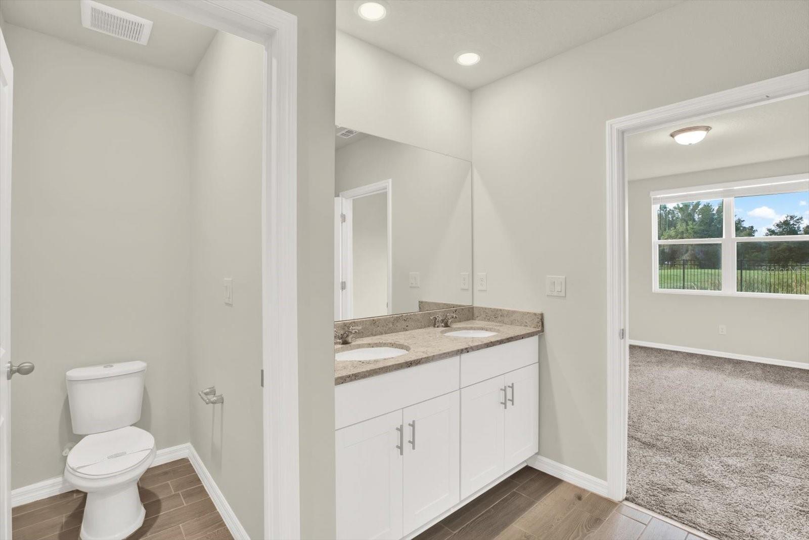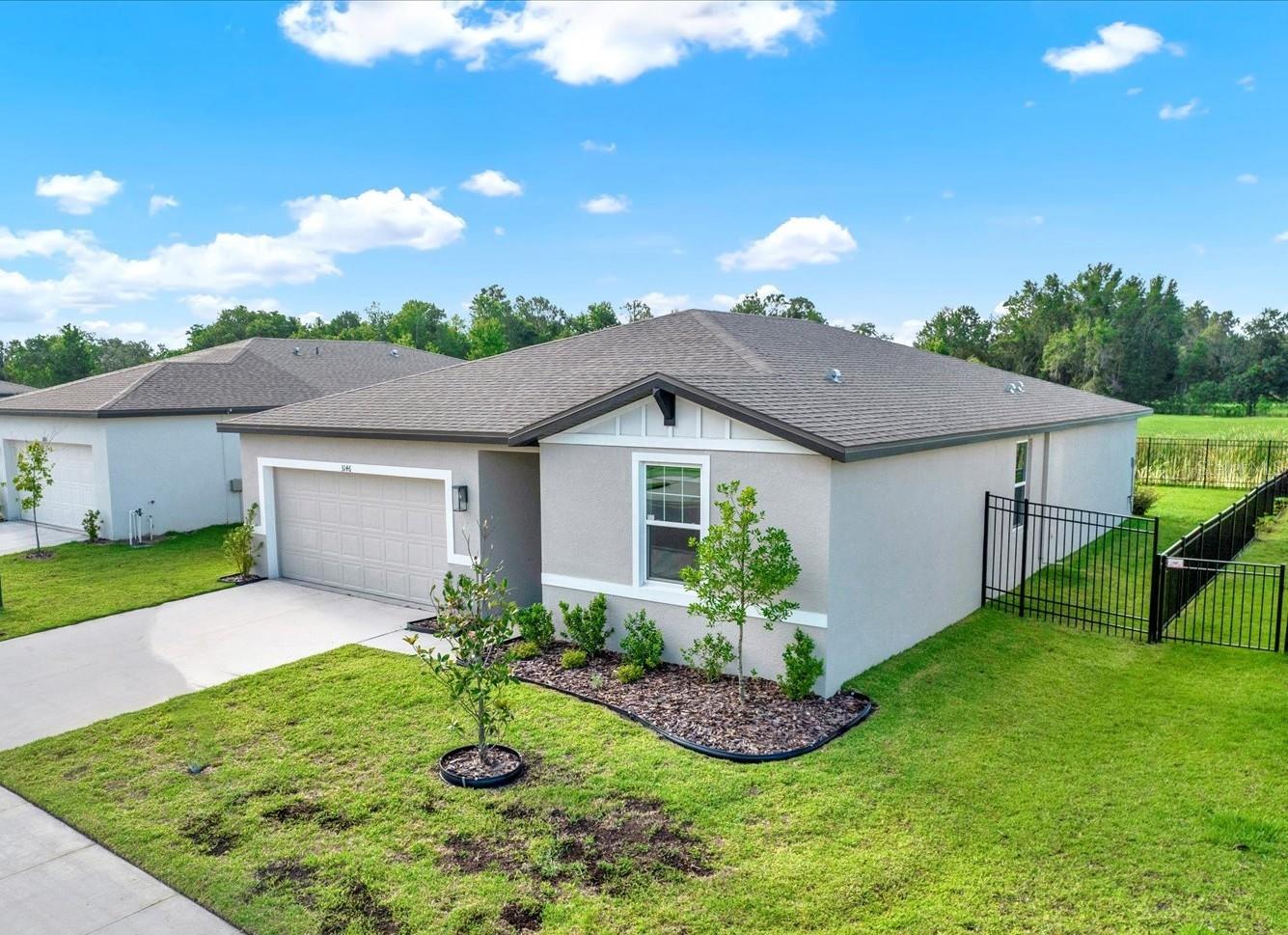 Venda a descoberto. Sem taxas de CDD e com taxas HOA muito baixas, esta é uma oportunidade fantástica de comprar a sua própria casa pelo valor de mercado atual. Esta casa lindamente projetada e recém-construída de 4 quartos e 2 banheiros oferece uma mistura harmoniosa de conforto, estilo e natureza. Situado na parte de trás do bairro e situado em um lote de conservação generoso e totalmente cercado, oferecendo um ambiente sereno para seu café da manhã ou coquetel à noite. Recursos a serem observados; lindo piso de cerâmica com aparência de madeira em todas as áreas de estar principais, planta aberta, quartos divididos e vista para o lago tranquilo e as pastagens além. Desfrute de cozinhar em uma cozinha moderna equipada com eletrodomésticos de aço inoxidável, bancadas de granito, armários abundantes, ilha grande e despensa enorme. Retire-se para o quarto principal com closet, pias duplas e chuveiro grande. Os três quartos adicionais com banheiro próprio ficam todos na frente da casa e oferecem muito espaço para a família, convidados e um home office. Os destaques adicionais incluem uma garagem para dois carros com porta isolada, janelas e eletrodomésticos com eficiência energética, isolamento de espuma em spray e fechaduras inteligentes. Este local em expansão é ideal para viajar para Tampa, Wesley Chapel ou ingressar no Club at The Landings at Twin Rivers. TODAS as condições estão sujeitas à aprovação do banco antes do fechamento.