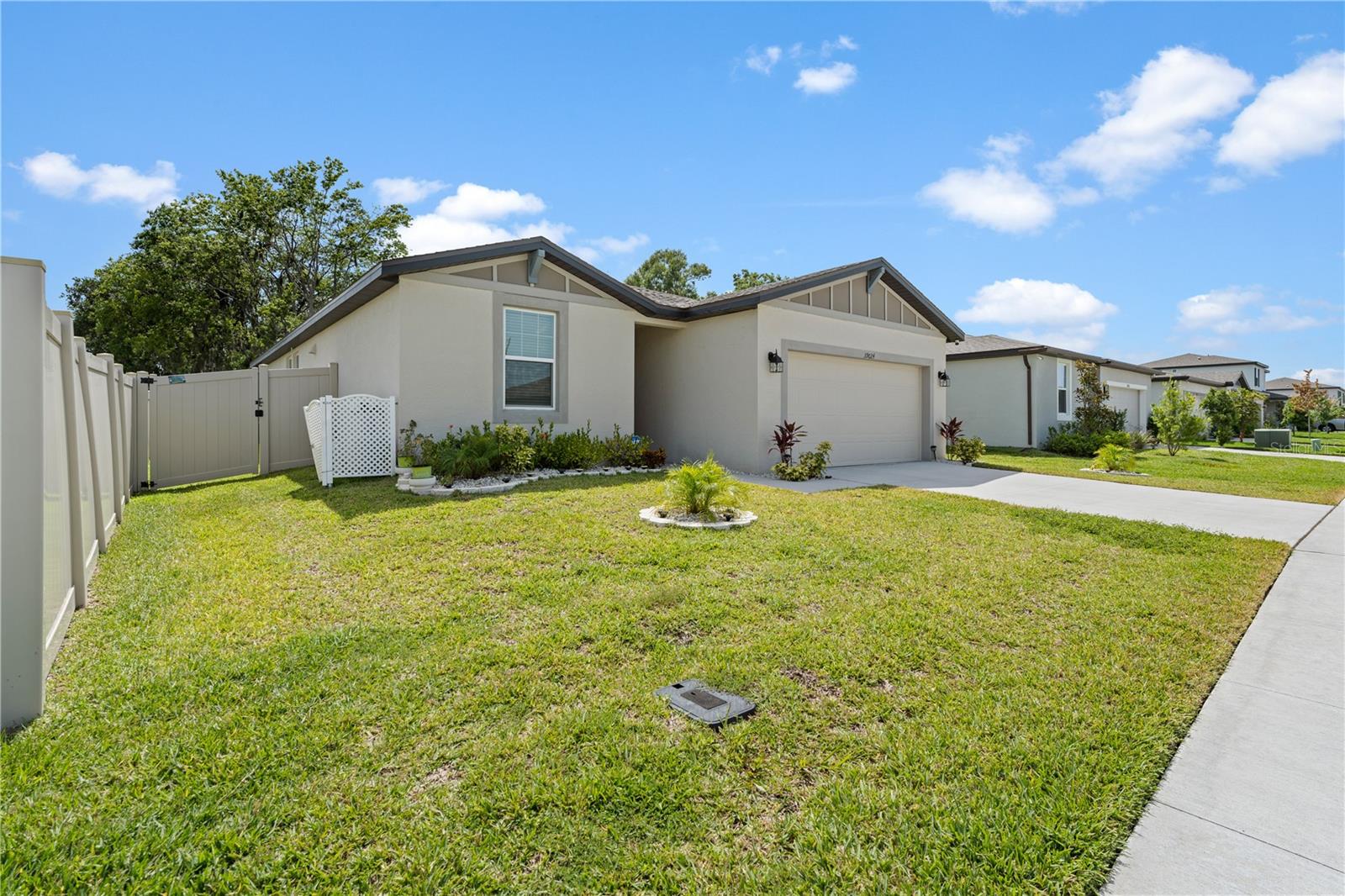 Preço reduzido! Casa de 3 quartos prontos para mover-in com escritório, lote de conservação e quintal particular em Zephyrhills, FL Construído em 2023, esta casa unifamiliar quase nova e lindamente mantida para venda oferece 3 quartos espaçosos, 2 banheiros completos e uma sala flexível versátil, ideal para um escritório em casa, sala de jogos ou hobby. Situado em um lote de conservação pacífico, esta propriedade possui um quintal totalmente cercado e um grande lanai exibido-perfeito para vida ao ar livre, entretenimento ou relaxamento em privacidade. Lá dentro, você vai adorar a planta piso de conceito aberto cheio de luz natural. A cozinha moderna foi projetada para estilo e função, mostrando utensílios de aço inoxidável, bancadas em granito, uma despensa e uma grande ilha central. A cozinha flui perfeitamente para as áreas de jantar e de estar, tornando esta casa ideal para reuniões e conforto diário. A suíte primária é um retiro privado com um espaçoso closet e um banheiro de luxo com banheiro duplo e um chuveiro. Dois quartos adicionais compartilham um banheiro completo, oferecendo conforto e conveniência para a família ou os hóspedes. Destaques adicionais incluem: * Lavanderia dedicada fora da cozinha * Garagem para dois carros com espaço de armazenamento extra * Iluminação atualizada, ventiladores de teto e acessórios de encanamento de banho * Condição pronta de mudança com acabamentos modernos por toda parte Esta casa de Zephyrhills oferece a mistura perfeita de conforto, estilo e localização. Convenientemente perto de fazer compras, restaurantes, escolas de primeira linha e rotas importantes, você terá acesso fácil à área da baía de Tampa. Não perca esta oportunidade de possuir uma casa pronta para casa com um quintal particular e vistas de conservação. Agende sua exibição particular hoje!