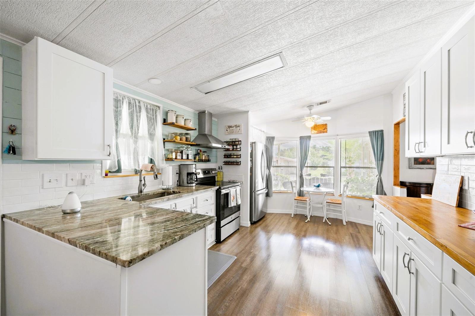 Desde o momento em que você chega, você se apaixonará! Esta casa lindamente paisagística de dois quartos e dois banheiros é a verdadeira definição de mudança de movimento. Cada detalhe foi atencioso por dentro e por fora, apresentando orgulho de propriedade a cada passo. Entre para encontrar pisos de prancha de luxo novíssimos por toda parte, tinta fresca, teto de 2021, janelas de painel duplo e um novo aquecedor de água em tamanho normal. O apelo acolhedor do meio-fio começa com uma relaxante varanda ao ar livre. Através da nova porta da frente, uma sala de bônus brilhante o recebe com tinta fresca e piso novo. A partir daqui, as portas deslizantes se abrem para uma espaçosa sala de estar cheia de luz natural, perfeita para entreter ou relaxar noites em casa. A moldura da coroa acrescenta um toque elegante, enquanto um passe leva à lanchonete, onde uma grande janela de sacada convida ainda mais sol para dentro. A cozinha foi totalmente atualizada com bancadas de granito e açougueiro, novos armários, iluminação atualizada, aparelhos modernos e uma pia de bacia única extra até profundidade. No corredor, você encontrará um segundo quarto confortável com o banheiro de hóspedes do outro lado do caminho, apresentando uma vaidade, pia, vaso sanitário e piso em folha. Na parte traseira da casa, a suíte do proprietário privado é grande o suficiente para uma cama king-size e inclui um suíte atualizado com uma nova vaidade, iluminação e piso, além de um espaçoso chuveiro. Fora da cozinha, uma marquise de envidraçamento de vidro de grande porte adiciona um espaço valioso e leva a uma lavanderia privada. Saia de um retiro no quintal projetado para baixa manutenção, completo com uma tela de privacidade, paisagismo e um pátio privado ideal para relaxar ou divertir os hóspedes. Esta casa foi meticulosamente atualizada e está pronta para você entrar e começar a desfrutar do estilo de vida da Flórida.