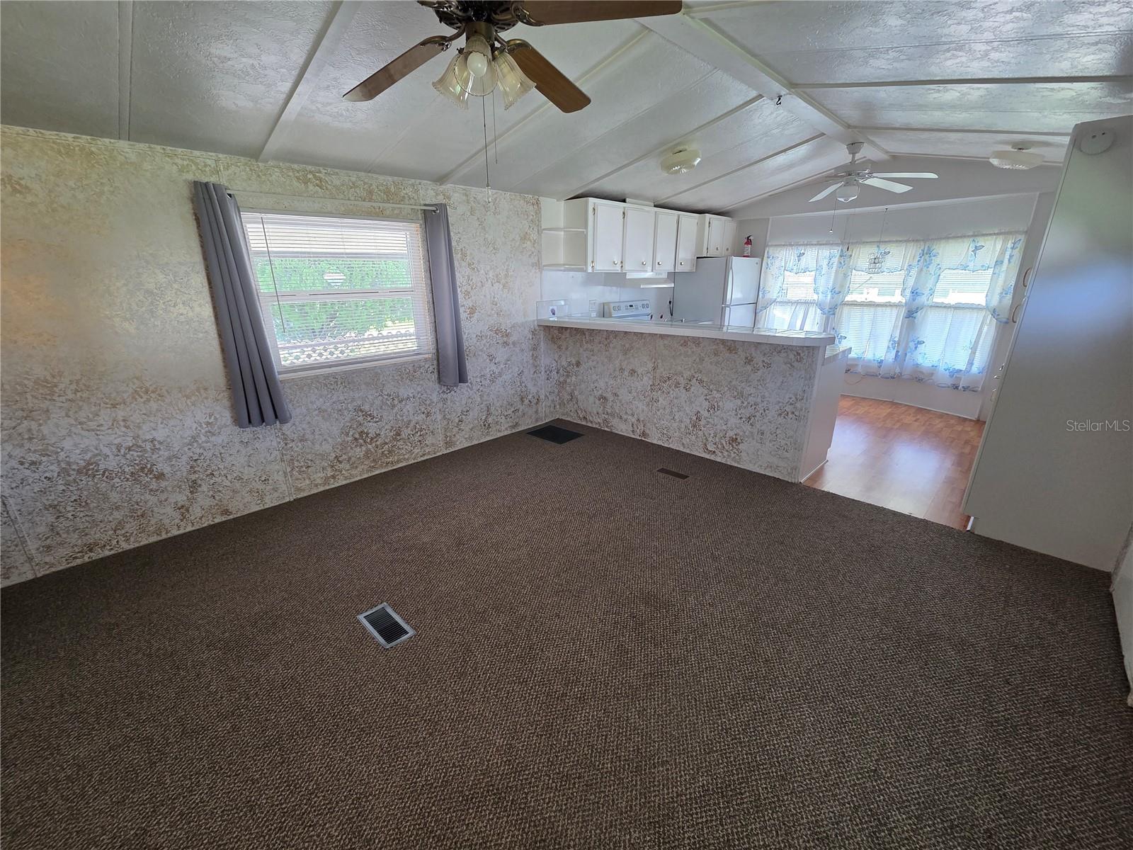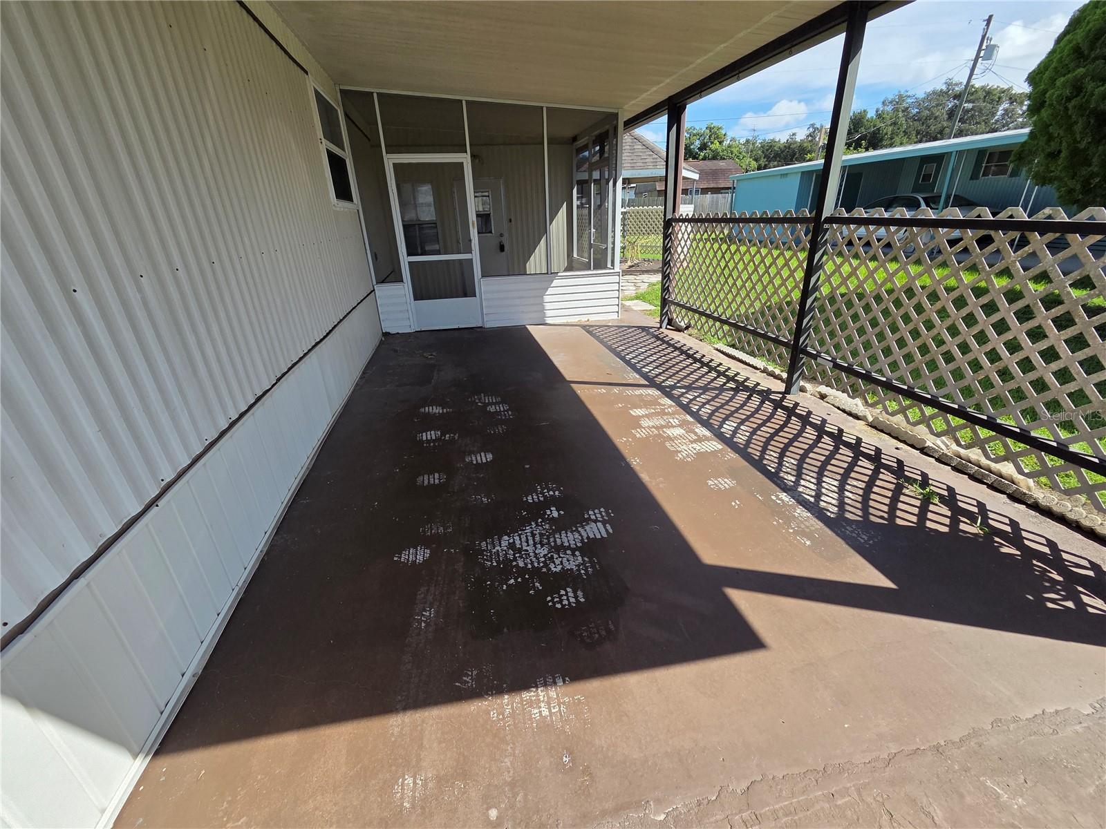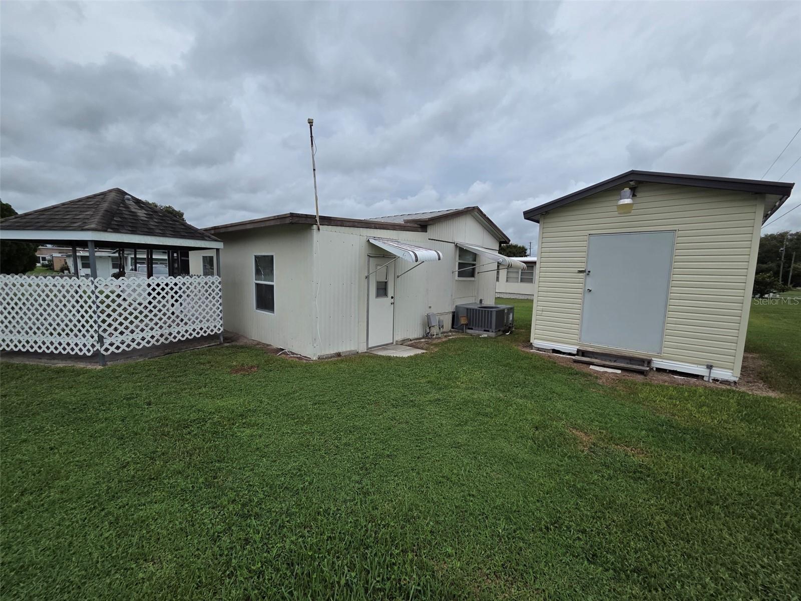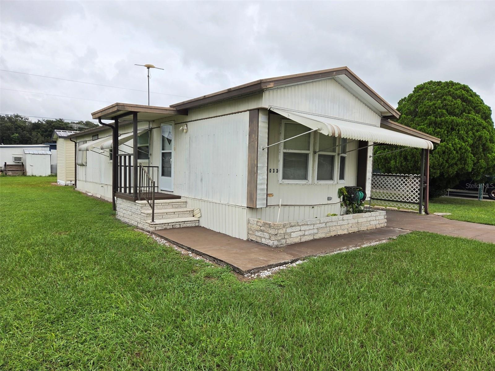 DONO DA TERRA! SEM MUITO ALUGUEL! NO HOA com esta pequena casa pré-fabricada legal. O lote tem 64' x 85', maior que a maioria, e tem um mirante e um galpão de utilidades. A casa tem dois quartos, um banheiro e um quarto com ar-condicionado na Flórida que inclui conexão para lavadora e secadora. A cozinha é muito grande e possui uma barra de café da manhã. Existem toldos exteriores, uma cobertura metálica, um alpendre e uma garagem. Sem animais de estimação ou restrições de idade.