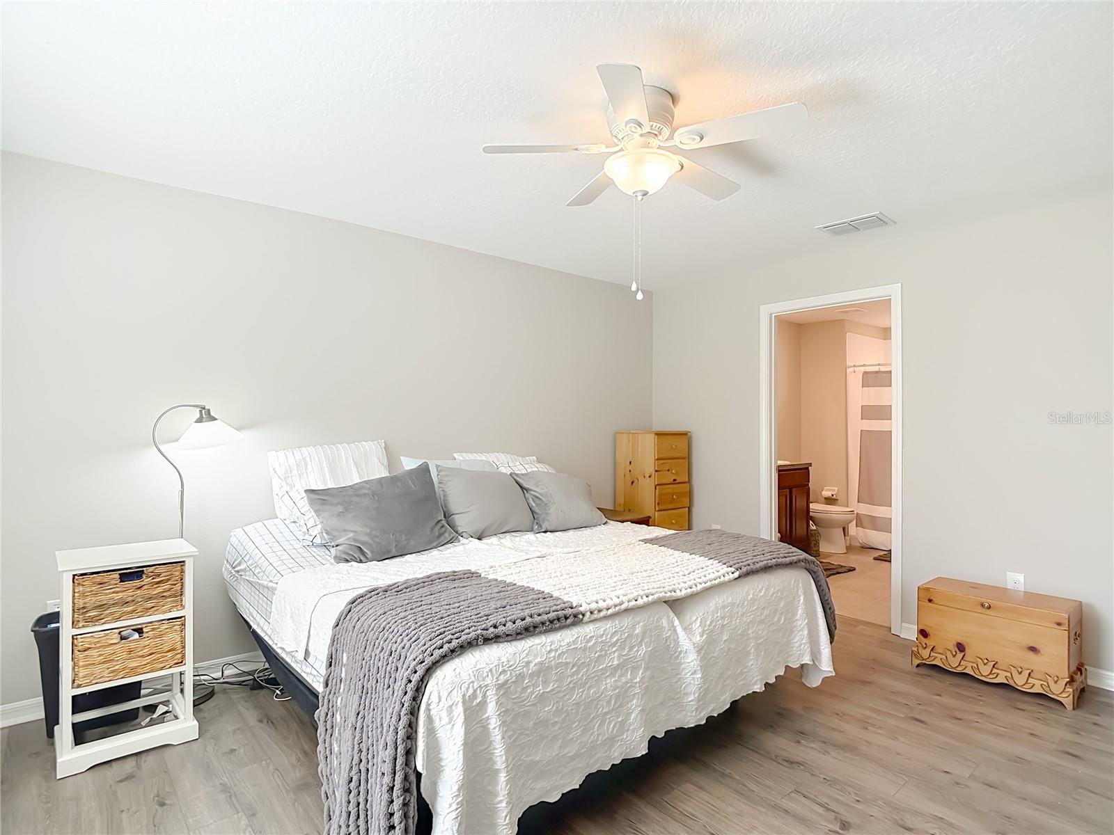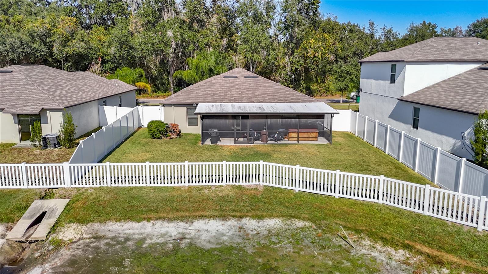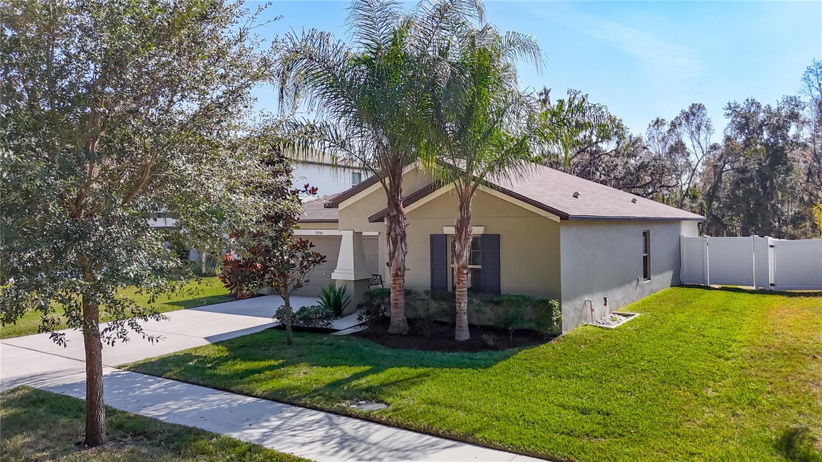 Adorável casa unifamiliar construída em 2020 na comunidade Hidden River, localizada em um beco sem saída. 3 quartos, 2 banheiros e garagem para 2 carros. Aproveite seu café da manhã na banheira de hidromassagem na grande varanda privativa de 12 x 30. Belas vistas do lago logo atrás da casa com folhagem de conservação além do lago. Há também conservação na frente de casa. Portanto, não há vizinhos na frente, nos fundos e apenas algumas casas no lado leste. Quintal totalmente cercado. A cozinha aberta tem uma ilha central e uma ampla despensa com vista para a sala de estar e cafetaria, facilitando a reunião de todos para refeições ou férias. A suíte principal possui um closet grande e um banheiro privativo com 2 pias. Planta dividida. Piso novo em todos os quartos. Recentemente pintado. Lavanderia separada com lavadora e secadora que transmitem. A garagem possui espaço suficiente para 2 carros, bem como armazenamento adicional e um frigorífico adicional. Tem fácil acesso ao sótão através de escada de sótão com espaço equivalente a garagem para 1 carro. HOA inclui internet e cabo básico. Sem CDD.