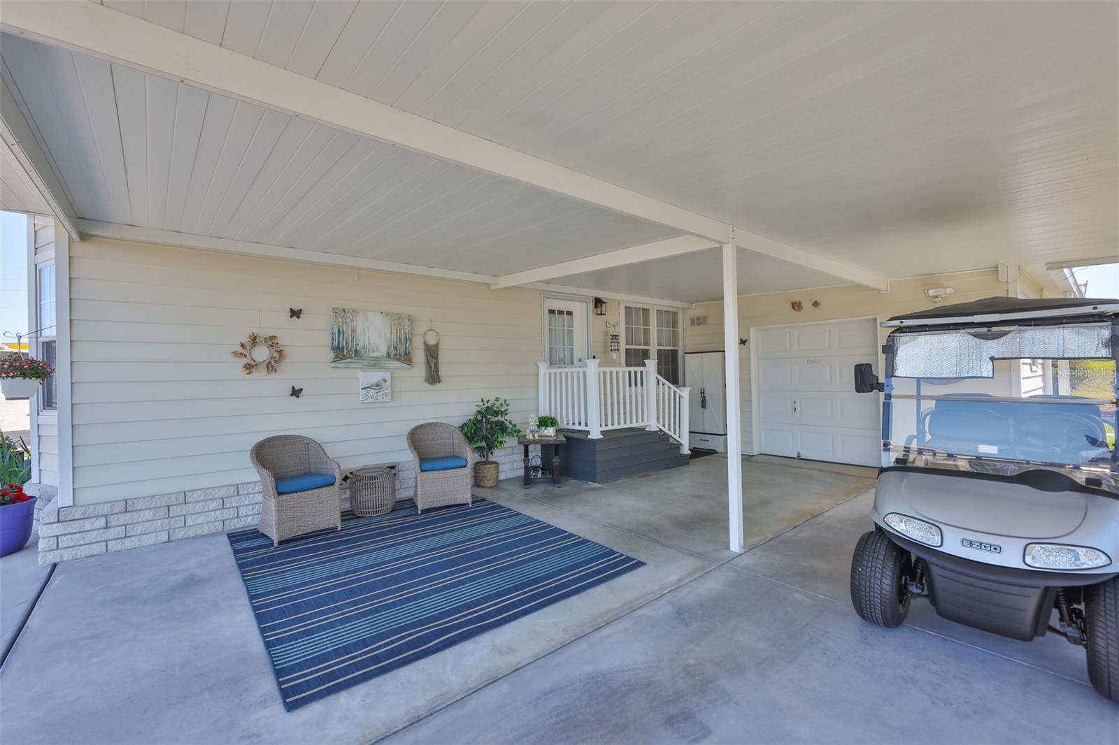 Aproveite esta casa lindamente atualizada em um condomínio desejável com mais de 55 anos, onde você possui o terreno, SEM aluguel de lote! Localizado em um amplo terreno de esquina com novo paisagismo para excelente apelo ao meio-fio, há um 3º quarto ótimo para escritório ou hóspedes. Interior recém-pintado em 2024 com todas as novas luminárias, ventiladores de teto, interruptores, tampas de tomadas, tampas de ventilação e torneiras internas. A marquise possui 192 pés quadrados extras adicionados ao total de pés quadrados da casa, que tem um novo mini-split para aquecimento e resfriamento durante todo o ano, além de um novo telhado em 2024. As principais atualizações de 2024 incluem tomadas externas, cortina, aquecedor de água, lavadora, secadora e geladeira em 2025. Verdadeiramente pronto para morar! O mastro da bandeira não transmite com a casa. Móveis e carrinho de golfe estão disponíveis para compra ou com oferta certa.