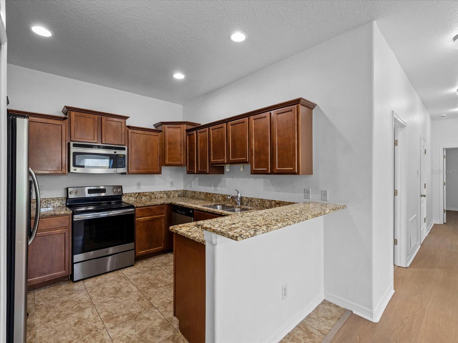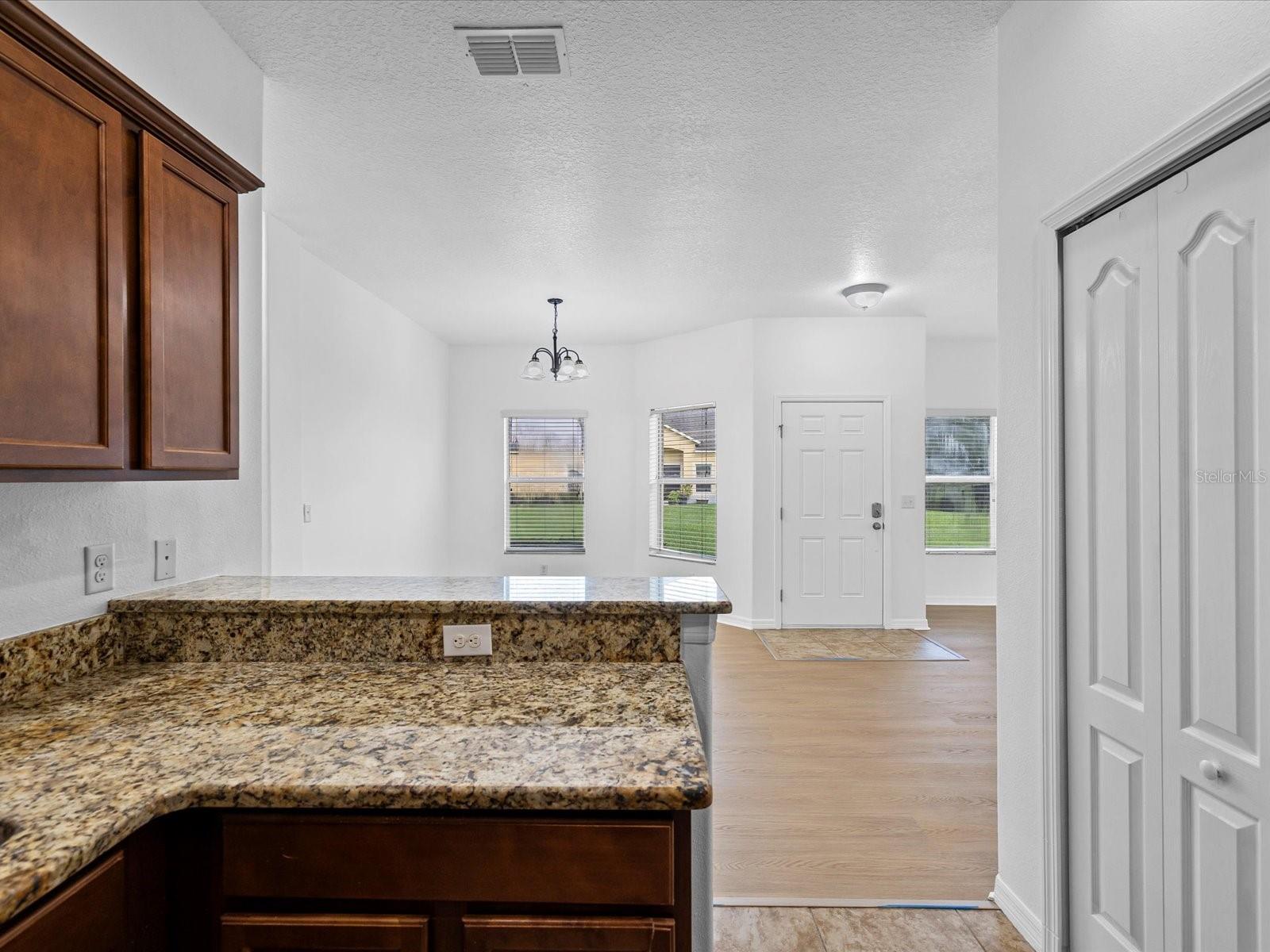 Uma ou mais fotos foram virtualmente encenadas. Pronto para morar em Eiland Park em um condomínio fechado em Zephyrhills MELHORIA DE PREÇO JUNTO COM UM MICROONDAS RECÉM-INSTALADO, NOVO VENTILADOR DE TETO! Desfrute de uma vida fácil nesta unidade final de um nível lindamente atualizada, localizada em um desejável condomínio fechado em Zephyrhills. Esta casa possui um novo sistema Carrier A/C, pintura interior fresca e novo piso de pranchas de vinil de luxo por toda parte. O layout aberto e luminoso inclui bancadas de granito, uma garagem anexa e uma varanda aberta com vista para um espaço verde tranquilo - perfeito para relaxar ao ar livre. Poucas destas moradias têm garagens, por isso esta é a mais desejável! Você vai adorar estar a poucos passos da piscina comunitária e a poucos minutos de Tampa, Busch Gardens e de ótimas lojas e restaurantes. Está tudo pronto – basta entrar e começar a aproveitar a vida na Flórida.