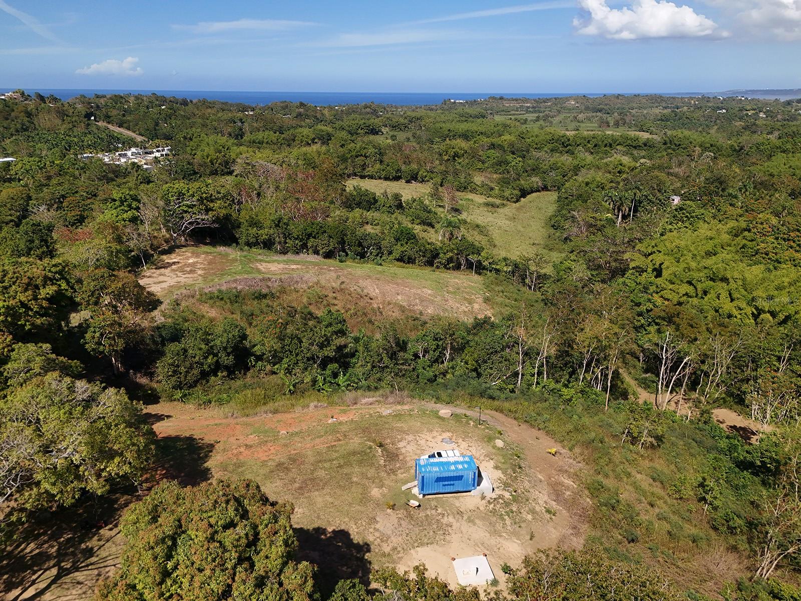 Here is an opportunity to build your dream home in the secluded countryside of Aguada and still have ocean views from this 5.3 cuerdas (5.1463 Acres) farmland. This expansive lot has both rolling hills and plenty of flat areas to build on. The meticulously landscaped property has 3 out of 4 sides fully fenced and the 4th border is a river at the bottom of the property. The highest hill on the farm already has a brand new, never used septic tank plus a container for storage with the beginning of a bathroom just off the back of it. From the top of this exquisite farmland you can gaze onto the Caribbean sea and the beautiful surrounding lush hillsides. Then as you head toward the river at the bottom, you'll hear the bamboo sway in the coastal breeze, carrying the mixed scents of earth and sea—rich soil, wild grass, and a faint tang of salt. Truly a one of kind property that is zoned R-G, which allows for flexible land use; including single-family homes and agricultural ventures. Being sold as is, qualified buyers only please. Coordinates: 18.3604, -67.2116