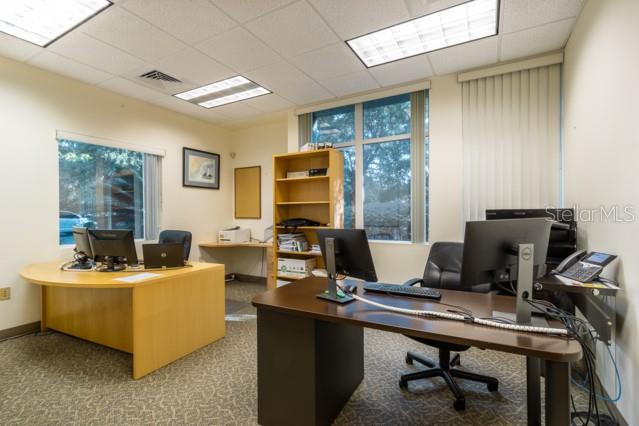 This well maintained 7,260 square foot is available in the highly desirable Progress Park in Alachua, FL. It is located less than 10 miles to Gainesville and 15 miles to the UF Campus. This stand alone, single floor building is situated on a one acre lot with 25 dedicated parking spaces and easy access to I-75 and US 441. Spacious, open building features 12 separate spaces that were previously used as private offices, two executive suites, and multiple conference rooms. This unique layout showcases the ability to divide the space into multiple layouts depending on the intended use. Well suited for standard office, medical office, or research facility, with room for expansion or development. This prime location offers privacy and serene views of the abutting San Felasco Preserve. Additional features include: two fully wired conference rooms for VOIP/video/VGA, etc; dedicated entry reception area; wet bar and conference room connecting executive accommodations, break room; all Cat-6 wired; ADA compliant.
