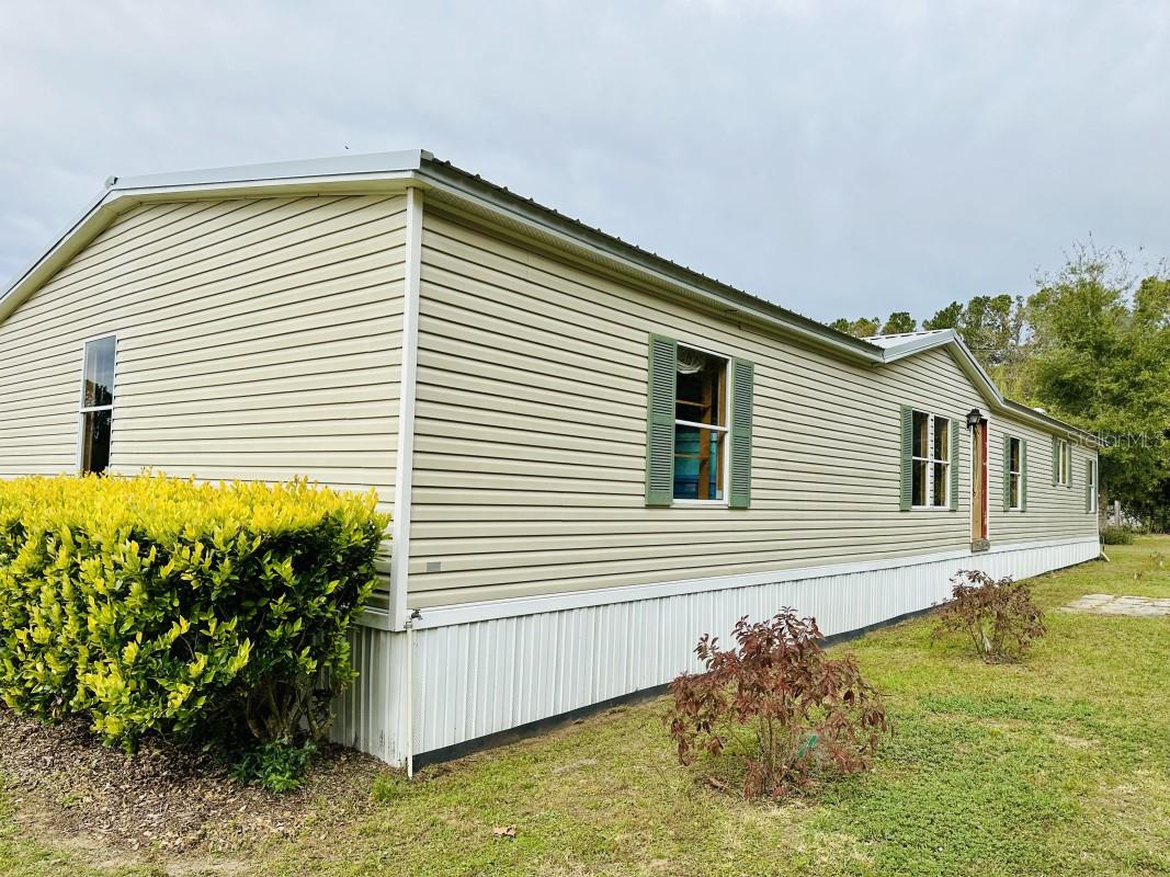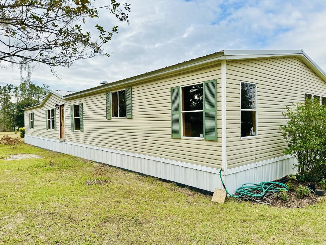 This property offers a gentle breeze most days and is located near clear blue springs, rivers, and state parks, offering swimming, boating, trails for horseback riding, mountain biking, and hiking. Publix, Lowe's, and schools are just around the corner. Gainesville and the University of Florida are easily accessible by 441 and I-75. At the end of a quiet road, this 4-bedroom, 2-bath Fleetwood doublewide mobile home sits on 6 acres, zoned agricultural- ideal for horses, livestock, or gardening. Granddaddy Oaks grace the front yard, and stunning sunsets provide breathtaking views out back. Inside, the spacious layout includes two living areas, a dining room, an island kitchen with breakfast nook and pantry, a laundry room, and a spacious master suite with walk-in closet and en-suite bath. Three additional bedrooms also feature walk-in closets. Recent upgrades include re-plumbing (2018), Trane HVAC (2018), metal roof (2020), skirting (2021), and remodeled bathrooms (2024). The home is ready for your personal touch, with interior paint, flooring (currently painted plywood, linoleum and vinyl plank), and front entrance details awaiting your imagination. This is an "As-Is" sale.