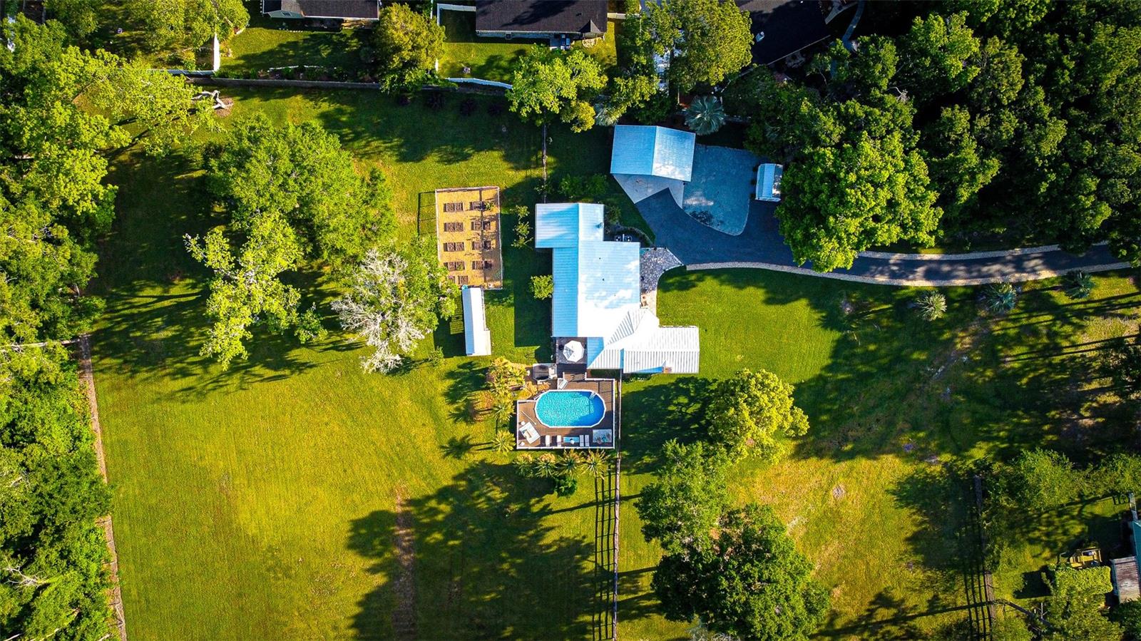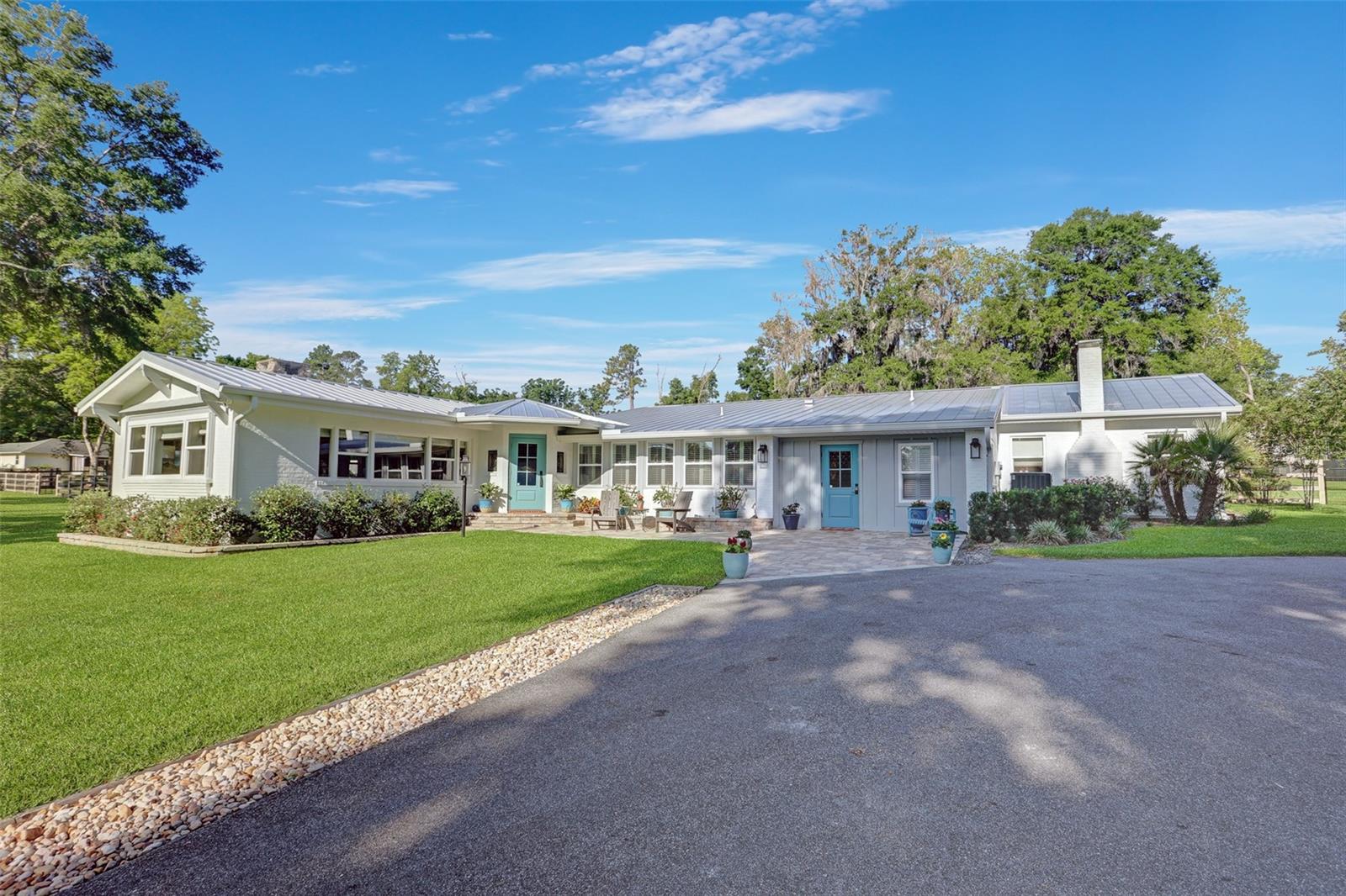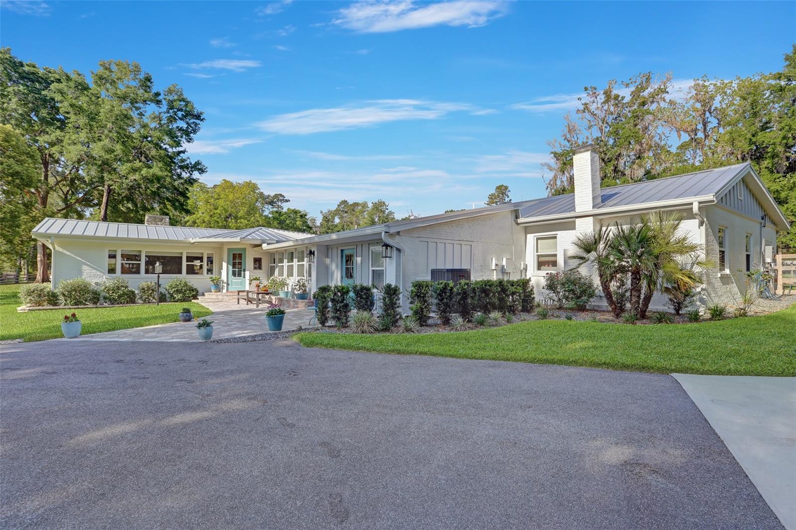 Welcome to your dream home! A beautiful country estate on almost 4 park-like acres with all the conveniences of downtown Alachua! Don't let the age fool you. This gorgeous pool home has all the charm of a 1946 home but has been completely remodeled from top to bottom, including the roof, HVAC, plumbing and electrical. As you drive through the gated entry up the recently paved driveway you'll see that the fully fenced grounds are meticulously maintained. There's plenty of covered parking under the brand new carport and storage for all of your toys in the new shed. Enjoy peace of mind for years to come knowing that a brand new standing seam metal roof was completed in 2024. The kitchen has been completely remodeled with all new cabinets, granite counter tops, JennAir double ovens, gas range with hood and Thermador dishwasher. All new paint, trim, baseboards and solid core doors throughout in 2022. New Hickory wood floors in all living areas installed 2022. Tongue and groove wood ceilings in main living areas and kitchen. Two new Train HVAC units in 2021. Tankless gas water heater 2021. All new exterior doors, plantation blinds and wooden roman shades on all windows and all new designer light fixtures and fans. There are three bedrooms and two full baths plus an office that could be used as a fourth bedroom. The master suite is a true retreat with a luxury bath and huge closet with solid wood shelving and a fireplace. The list goes on and on. Out back you'll enjoy entertaining by the new 18x40 pool with Trex brand decking, hot tub, paver patio and built-in natural gas grill in the summer kitchen. There's even a garden and chicken coop. This home has it all!