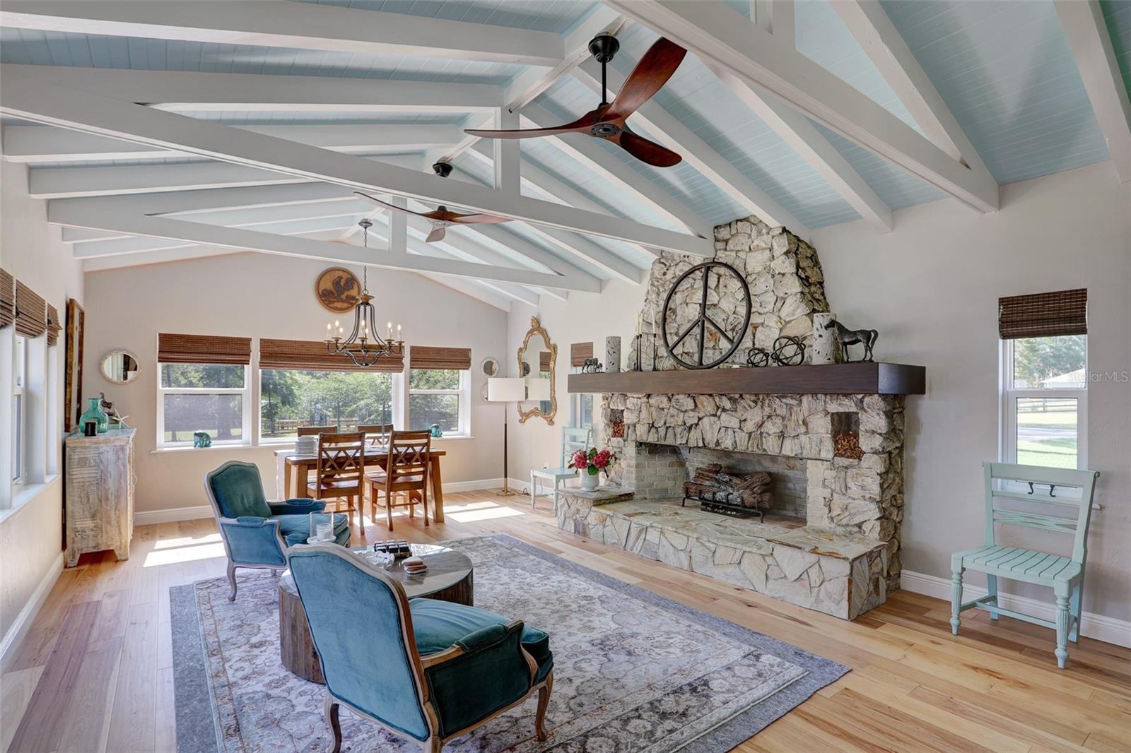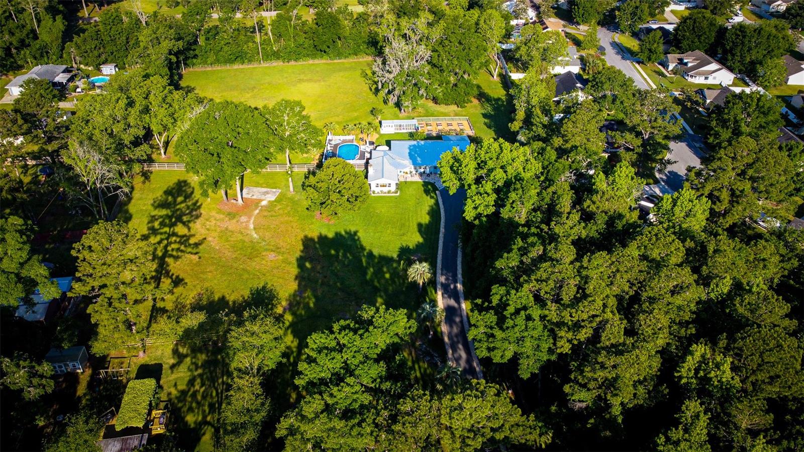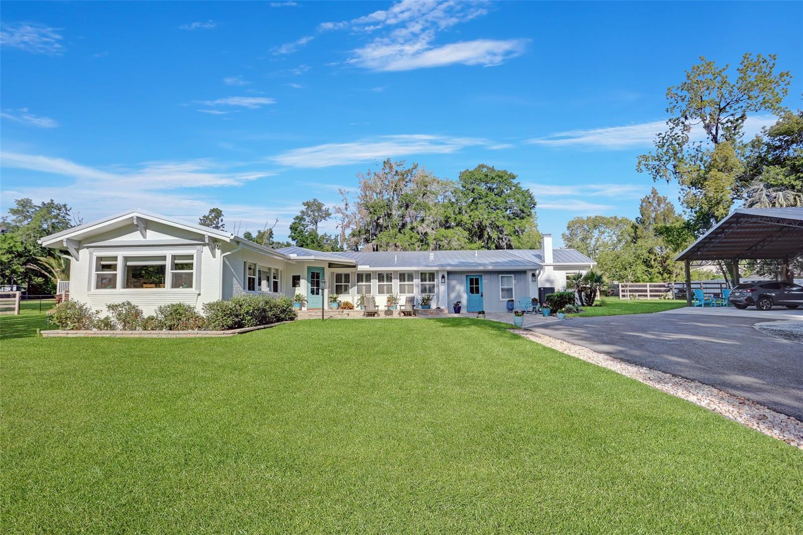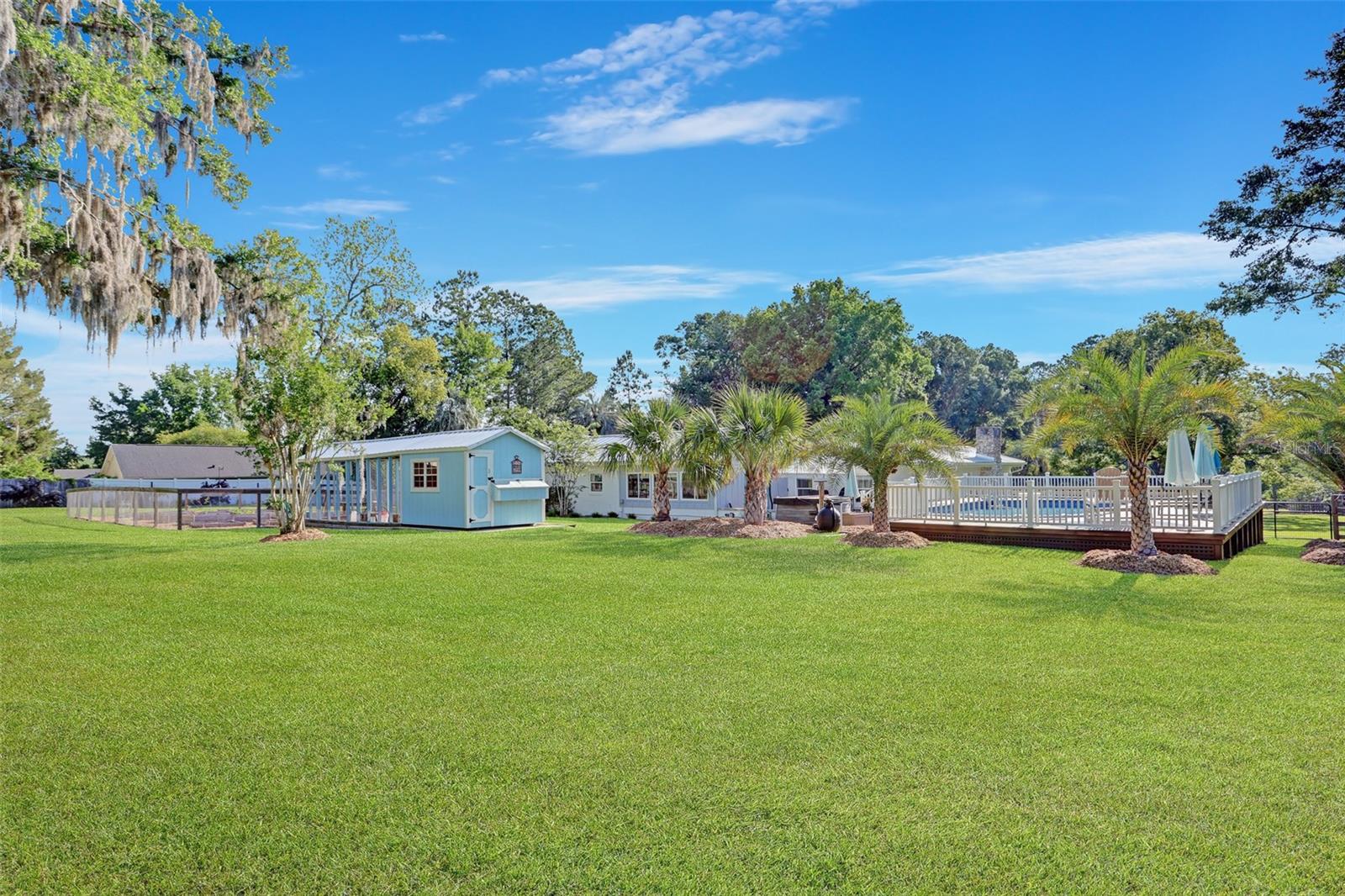 Welcome to your dream home! A beautiful country estate on almost 4 park-like acres with all the conveniences of downtown Alachua! Don't let the age fool you. This gorgeous pool home has all the charm of a 1946 home but has been completely remodeled from top to bottom, including the roof, HVAC, plumbing and electrical. As you drive through the gated entry up the recently paved driveway you'll see that the fully fenced grounds are meticulously maintained. There's plenty of covered parking under the brand new carport and storage for all of your toys in the new shed. Enjoy peace of mind for years to come knowing that a brand new standing seam metal roof was completed in 2024. The kitchen has been completely remodeled with all new cabinets, granite counter tops, JennAir double ovens, gas range with hood and Thermador dishwasher. All new paint, trim, baseboards and solid core doors throughout in 2022. New Hickory wood floors in all living areas installed 2022. Tongue and groove wood ceilings in main living areas and kitchen. Two new Train HVAC units in 2021. Tankless gas water heater 2021. All new exterior doors, plantation blinds and wooden roman shades on all windows and all new designer light fixtures and fans. There are three bedrooms and two full baths plus an office that could be used as a fourth bedroom. The master suite is a true retreat with a luxury bath and huge closet with solid wood shelving and a fireplace. The list goes on and on. Out back you'll enjoy entertaining by the new 18x40 pool with Trex brand decking, hot tub, paver patio and built-in natural gas grill in the summer kitchen. There's even a garden and chicken coop. This home has it all!