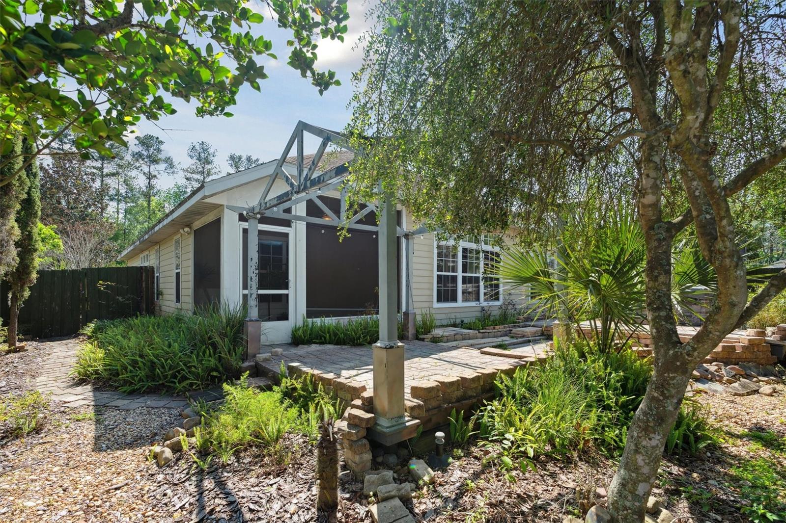 Short Sale. WILL NOT LAST! Welcome to this stunning corner lot in the highly sought after gated community of Turkey Creek. This three bedroom, two bath home is nestled within Creekside Villas and spans just under 1,700 square feet. The home is perfectly situated on a coveted corner lot, offering privacy and tranquility. Step inside to be greeted by the grandeur of high ceilings and open concept living. The beautiful chef's kitchen with cherry wood cabinets, a pantry and breakfast bar that over looks the spacious family room. The primary suite boasts a jetted tub, walk-in shower and massive walk-in closet. Step outside on the screened back porch looking over the gorgeous lanai, landscaped yard, and relaxing hot tub. Fully fenced in yard ensures privacy and security. Just minutes to downtown Alachua and 5 minutes to Gainesville. Don't miss this great opportunity. This home will not last!