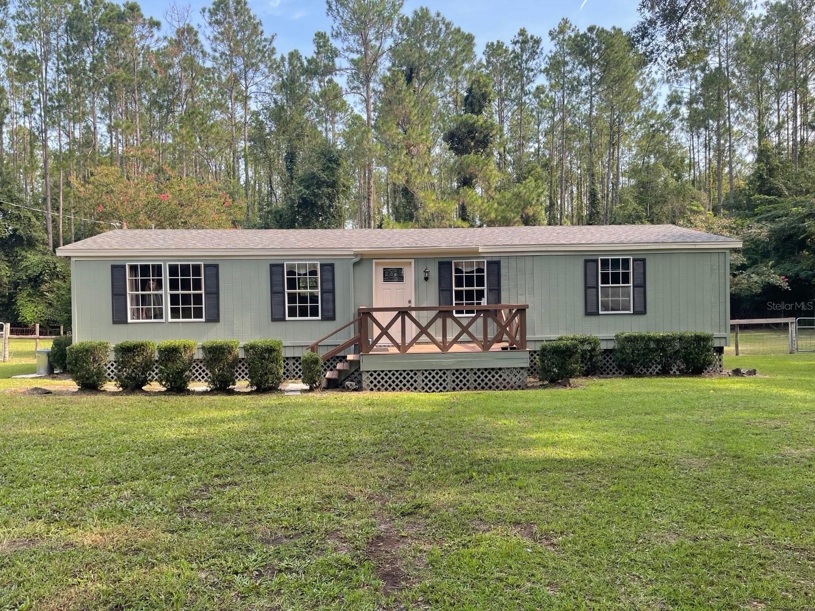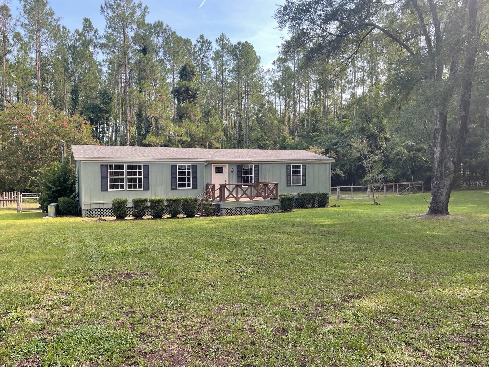 Look no further! Come home to this three-bedroom, two-bath 1,248 sq ft mobile home sitting on 5.51 maintained acres. You will enjoy the sounds of nature and morning coffee on the fully screened back porch. This property is high and dry and in flood zone X. This home has been freshly painted inside and out and has new skirting with a new roof in 2024. The HVAC system and dishwasher were replaced in 2023. New duct work has recently been installed. Washer and Dryer 2 years old convey. This little slice of heaven is located on a paved road outside of the city limits in Alachua County. If you're looking for a peaceful retreat, this property offers endless possibilities. Bring your horses and pets. This property is partially fenced and cross-fenced with a variety of oak trees, crepe myrtles, and wooded for privacy on the back side. The property is very private offering a tranquil setting. The location is ideal with the the convenience of being just minutes to High Springs, Alachua, and Newberry. Close to schools, eateries, shopping, medical and recreational facilities. I-75 and the University of Florida are just a short drive for you. You won’t want to miss out on this lovely property. Buyers' responsibility to verify all information pertaining to the property. Call today for a showing.