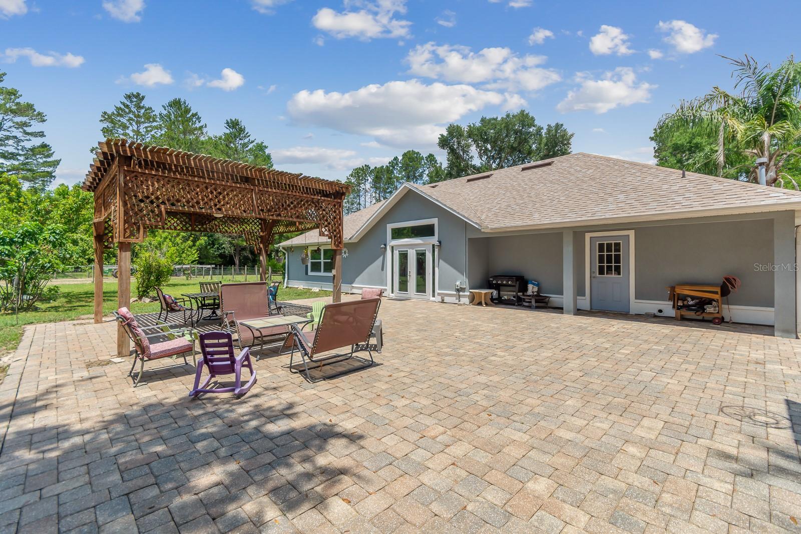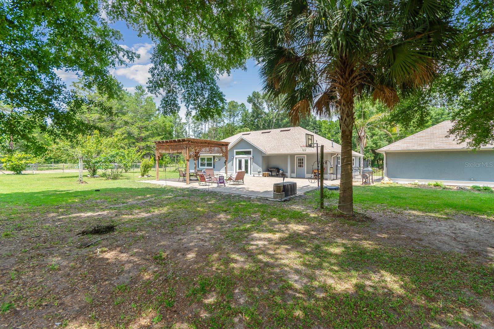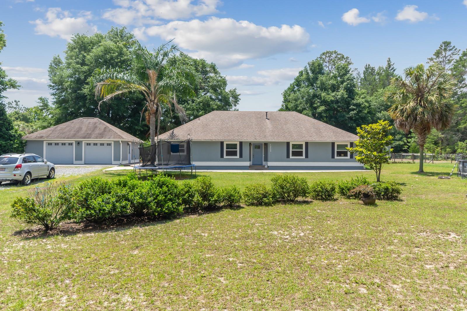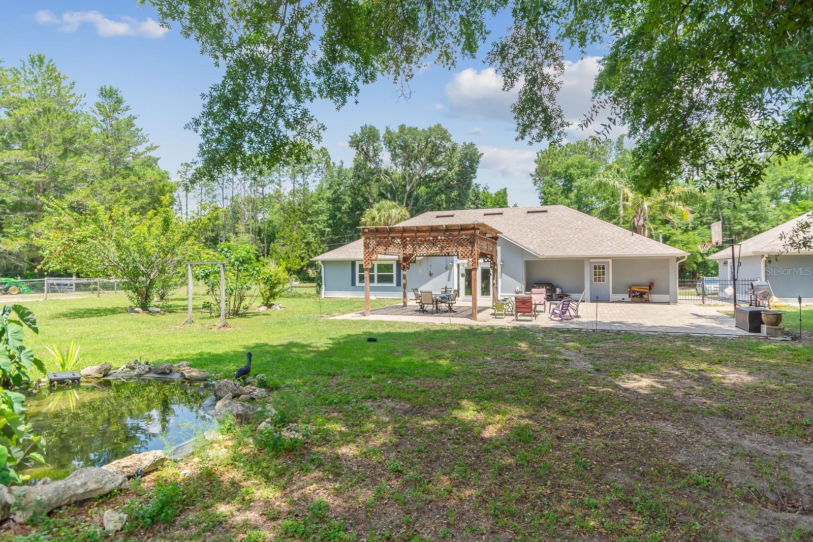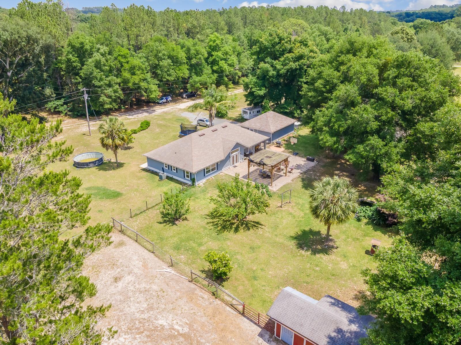 HORSE OWNERS DREAM, bring your horses/farm animals to enjoy a peaceful way of life, while the animals enjoy a spacious 5 acres you can sit out on your paved patio under the gazebo and enjoy the sunset while listening to the wildlife and the waterfall from the pond, the paved area would create a great place for a pool of your dreams. Inside you are welcomed in by a bright and open planned living area of the house with a fully updated interior to the house, including a bar addition to open up the space and create more seating for holding the perfect party with your guests. No Deed restrictions and NO HOA. This location is a convenient drive to Gainesville, Newberry, and Jonesville. Enjoy lower cost bills utilities through Clay Electric. Call today and turn your dream into reality! *SEE BELOW FOR LIST OF AMAZING UPDATES TO THE HOME* New roof early 2021, New dual paned windows throughout the whole house in 2023 along with new exterior doors, New flooring in all bedrooms in 2022, New bathroom in master 2023 along with new flooring, Upgraded counter and sinks in the other full bathroom, Updated kitchen with backsplash 2020, New bar with butcher Block 2023, Half the garage is epoxy flooring perfect for your gym equipment, 3 stall barn with electric and water, Maintained arena Lots of local trail riding.