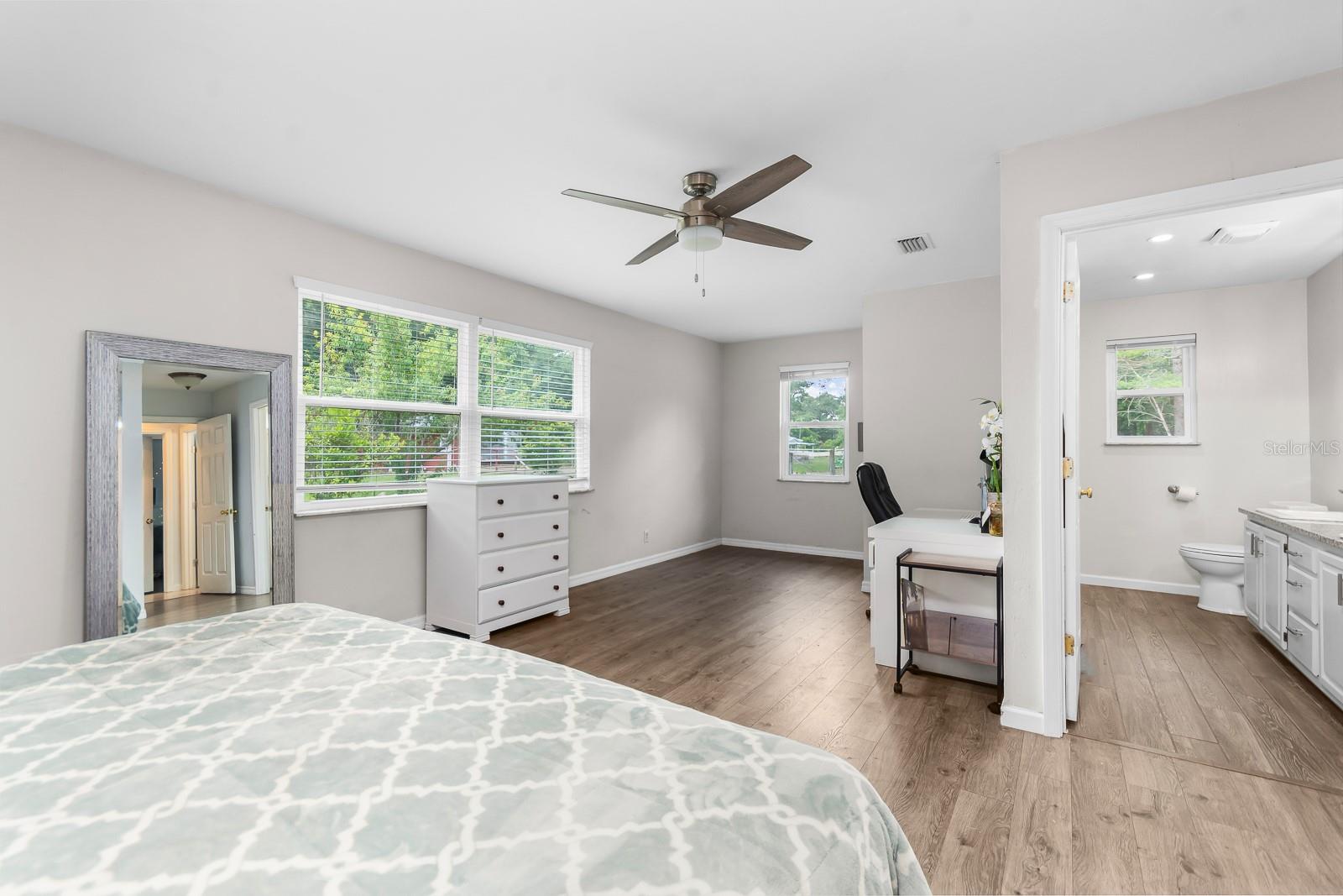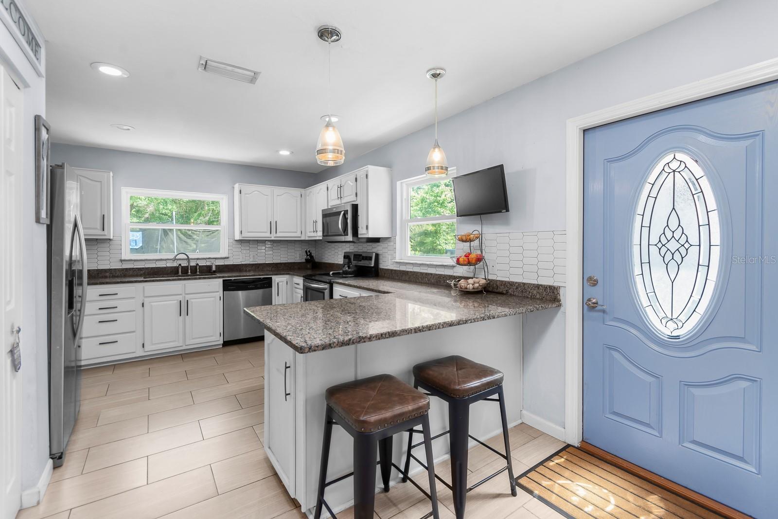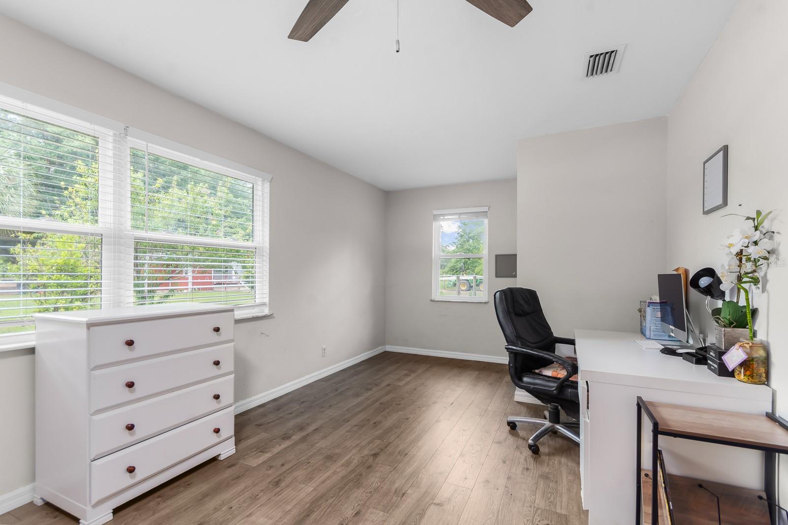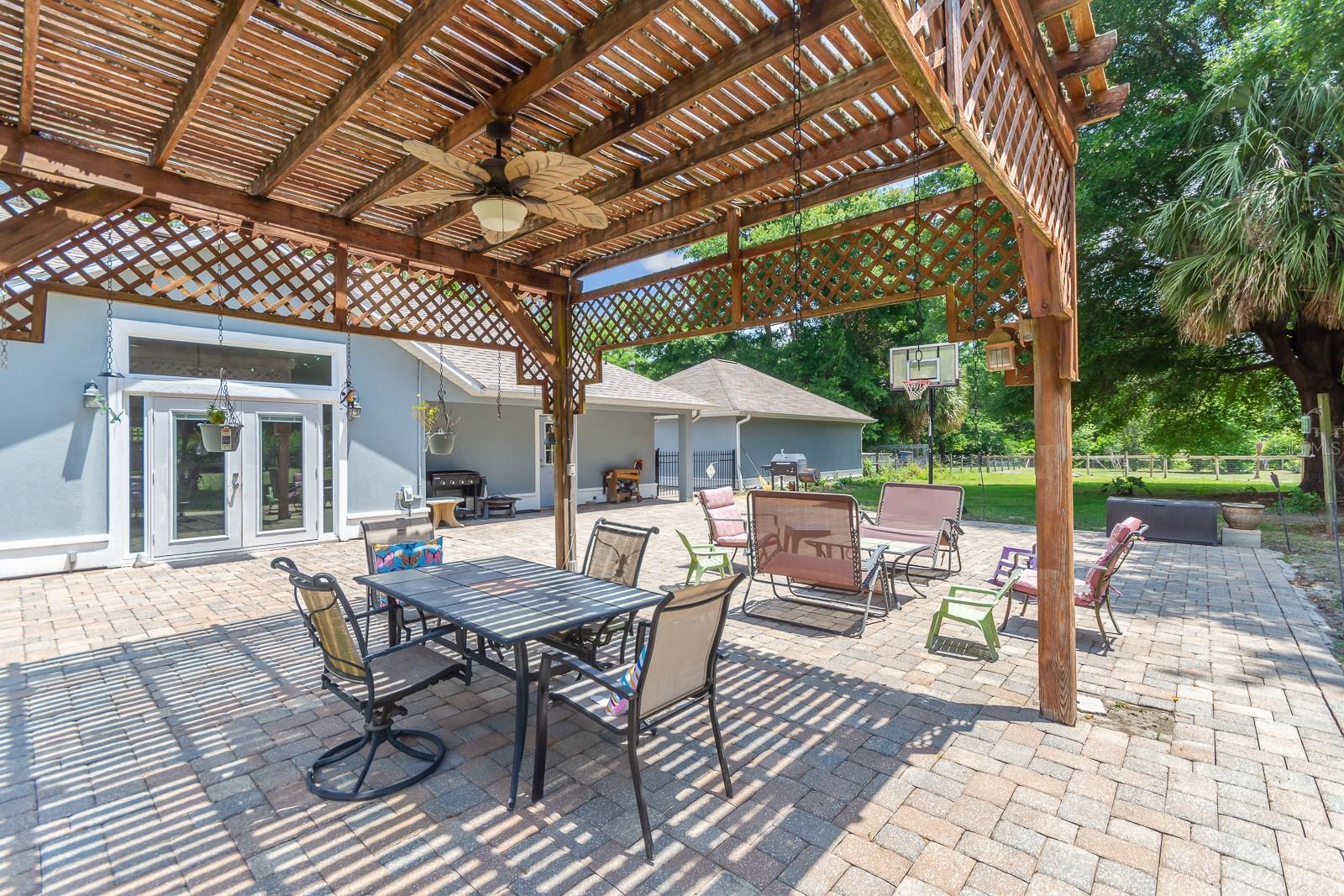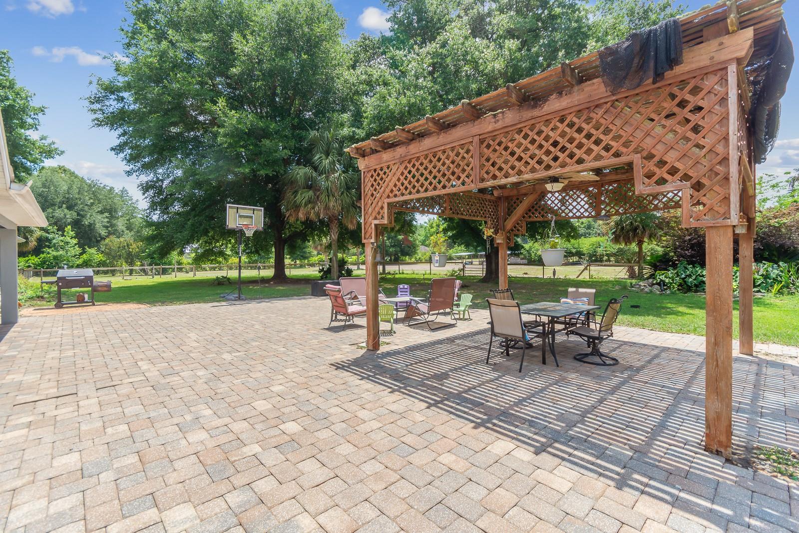 HORSE OWNERS DREAM, bring your horses/farm animals to enjoy a peaceful way of life, while the animals enjoy a spacious 5 acres you can sit out on your paved patio under the gazebo and enjoy the sunset while listening to the wildlife and the waterfall from the pond, the paved area would create a great place for a pool of your dreams. Inside you are welcomed in by a bright and open planned living area of the house with a fully updated interior to the house, including a bar addition to open up the space and create more seating for holding the perfect party with your guests. No Deed restrictions and NO HOA. This location is a convenient drive to Gainesville, Newberry, and Jonesville. Enjoy lower cost bills utilities through Clay Electric. Call today and turn your dream into reality! *SEE BELOW FOR LIST OF AMAZING UPDATES TO THE HOME* New roof early 2021, New dual paned windows throughout the whole house in 2023 along with new exterior doors, New flooring in all bedrooms in 2022, New bathroom in master 2023 along with new flooring, Upgraded counter and sinks in the other full bathroom, Updated kitchen with backsplash 2020, New bar with butcher Block 2023, Half the garage is epoxy flooring perfect for your gym equipment, 3 stall barn with electric and water, Maintained arena Lots of local trail riding.