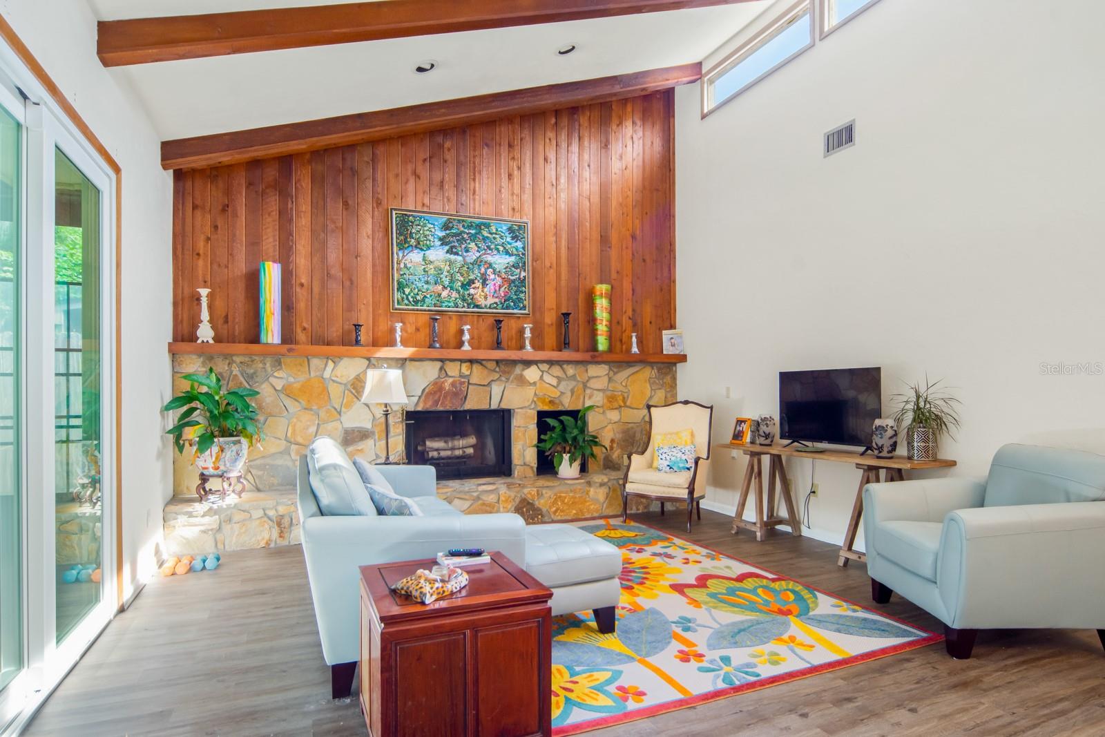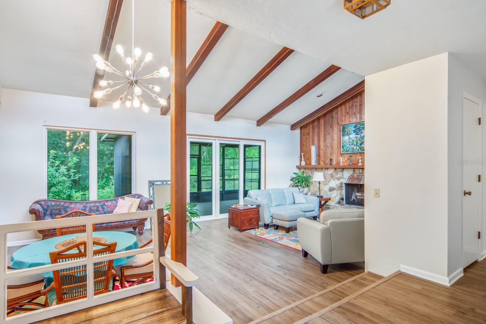 Unique home in the golf community of Turkey Creek. Vaulted wood beamed ceiling in the living room with an inviting foyer that leads your eye to the stone wall with a wood burning fireplace really adds to the charm. Light and bright with vinyl plank flooring throughout. New windows and doors. Plantation blinds in both bedrooms. All exterior replaced with hardie-board siding and recently painted. Lots of closet space. Screened in back porch backs up to the creek. Comes with newer washer and dryer. Community offers a pool, tennis/pickle ball courts, basketball and a playground. Lots of wildlife watching.