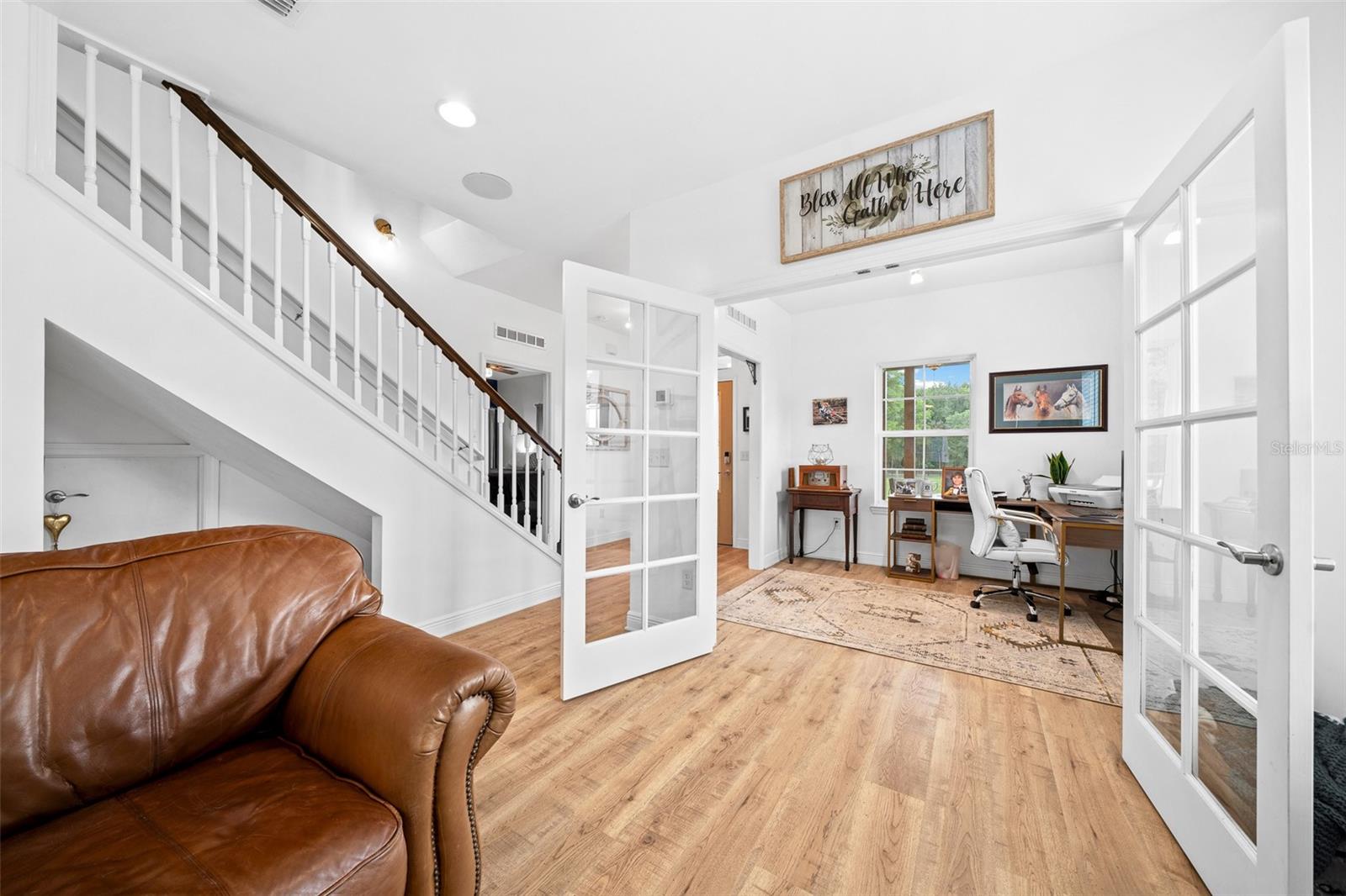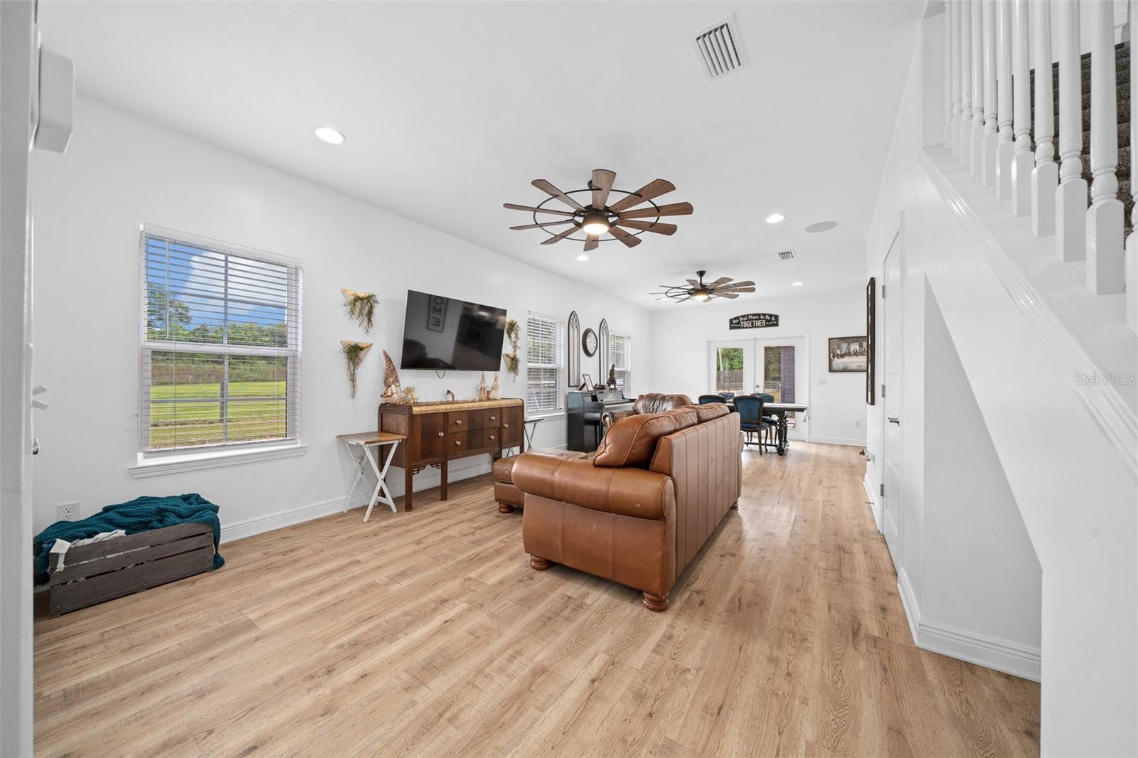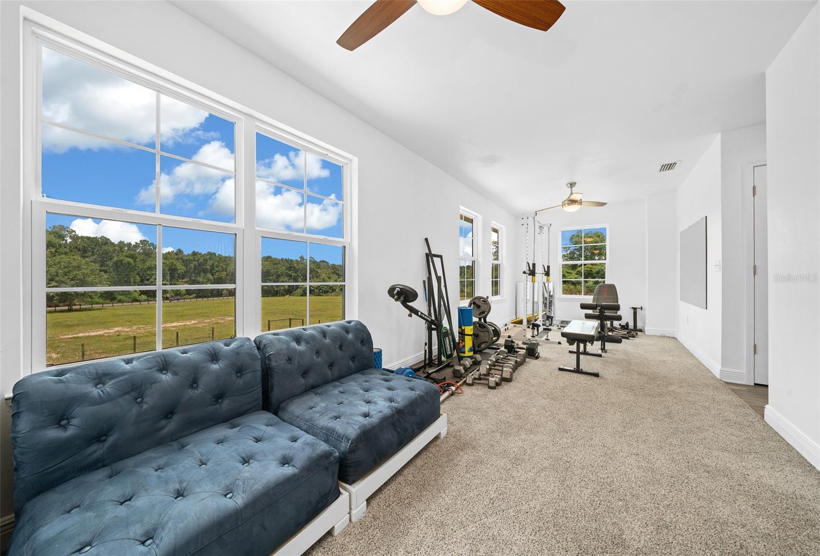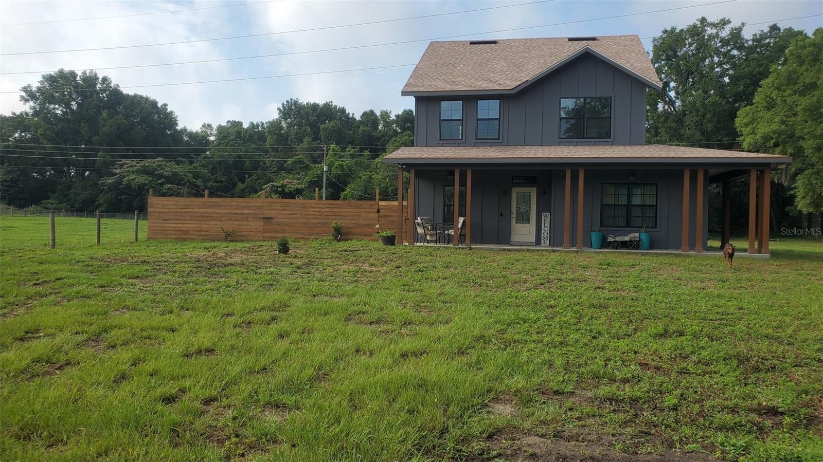 Bring your horses!!This beautiful 2 story farmhouse is less than 3 years old!! Sitting on a private 10 acres, in a great location close to I-75, 20 mins to Gainesville. This home boast 9ft high ceilings and beautiful light oak laminate floors throughout main floor. Kitchen includes walk-in pantry and modern two tone cabinets with beautiful quartz countertops, open to dining area. A large primary suit on first floor with en-suite bathroom that has large soaking tub, separate walk-in shower and walk in closet. Also, on main level is a half bath and office area. Upstairs, you have 2 nice size bedrooms each room hosting it's very own en-suite bathroom. A huge bonus room upstairs could be used as a 4th bedroom or a game room. Outside you can enjoy a relaxing sitting area under the breezeway or even the spacious porch areas overlooking 7 acres of fenced pasture. Hidden in the privacy and shade of the treeline is a 24x48 pole barn perfect for horses or equipment. This home is located in the most convenient location, close to everything!