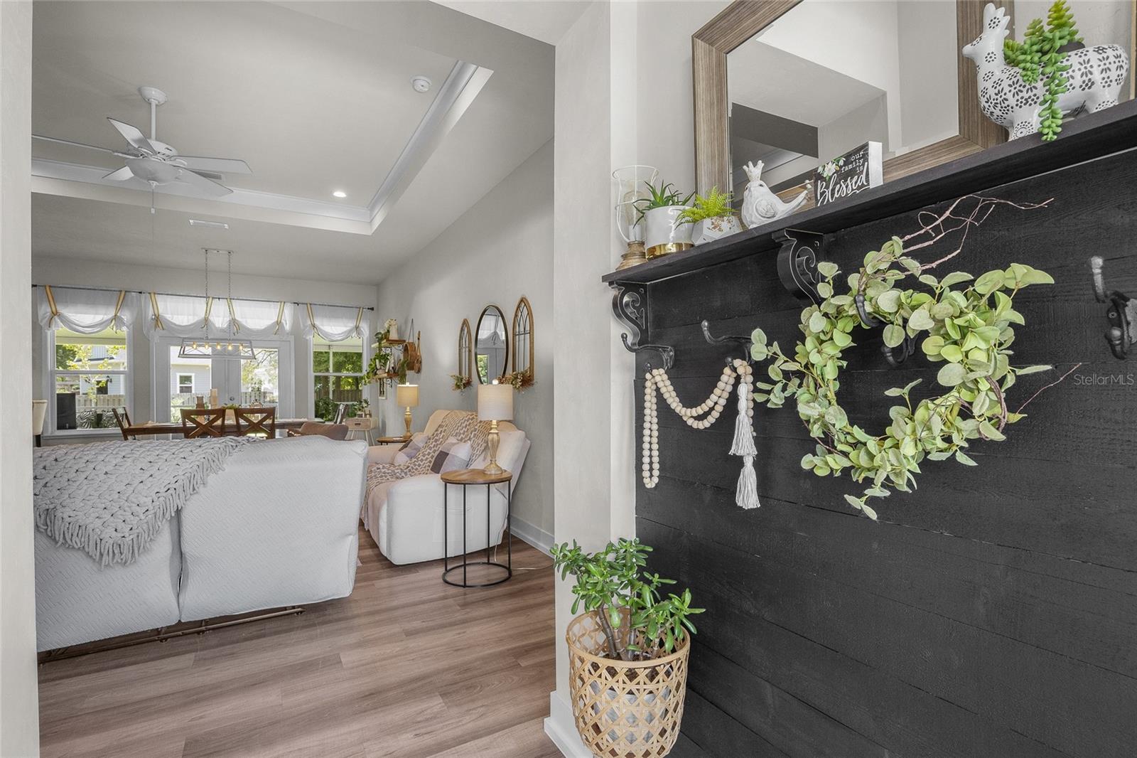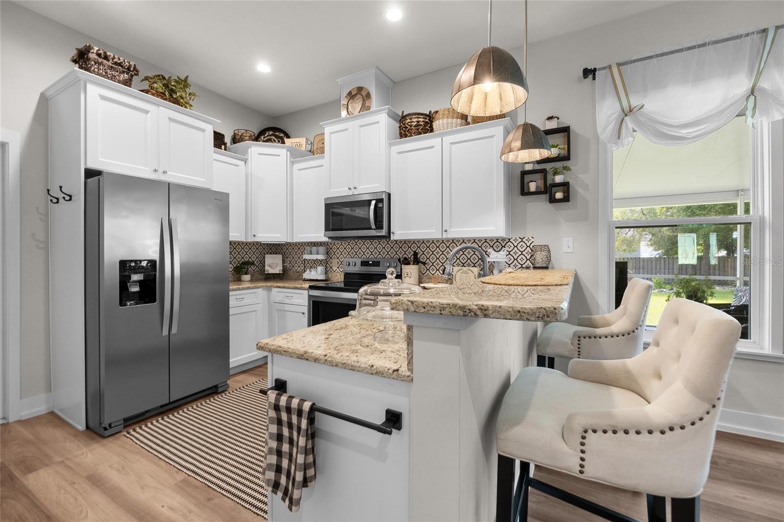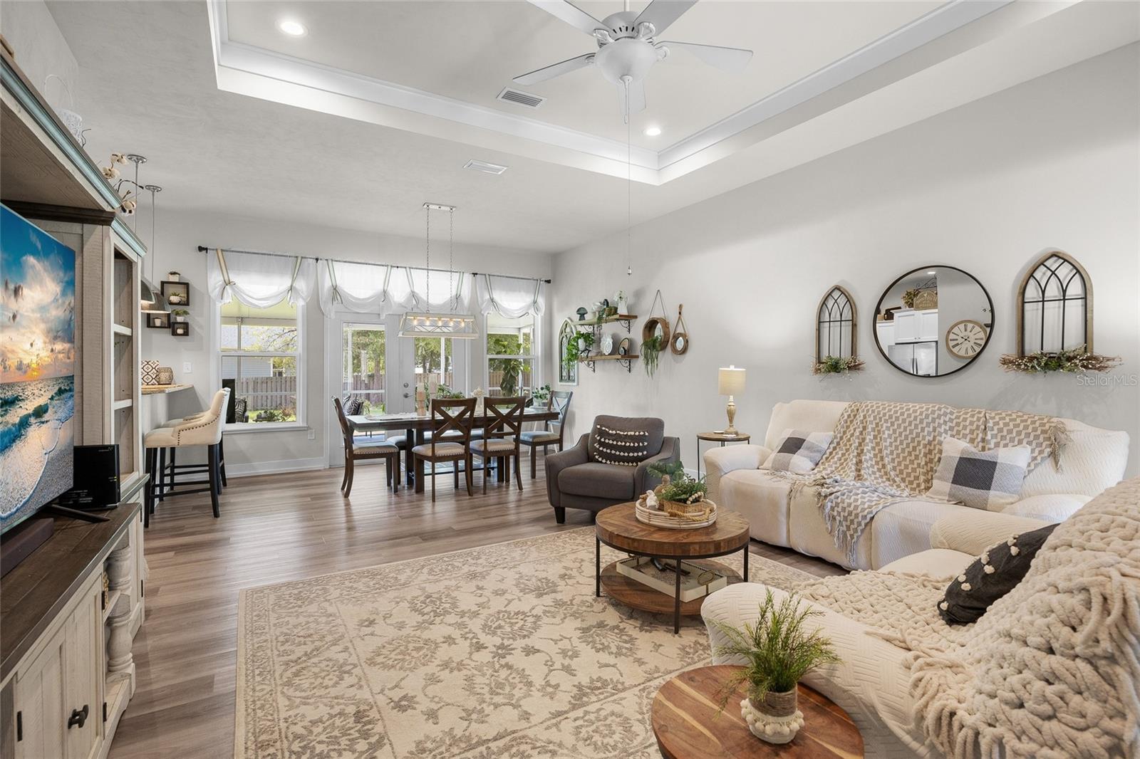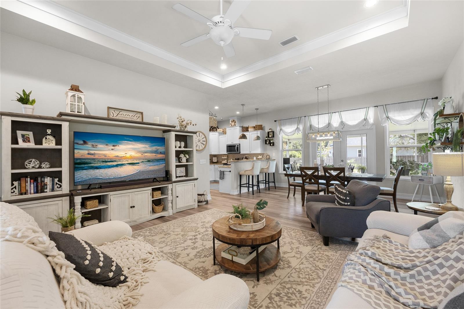 Luxurious 2020 HGTV ready home in the craftsman style front porch community of Peyton’s Preserve! This gorgeous like-new 3-bed/2-bath home on an oversized lot features an above-ground pool, and 1,862 sq. ft. of energy efficient features and elegant finishes of the highest quality. Opening the ornate glass front door and stepping into the foyer, you will find the living room/dining room with luxury vinyl plank flooring and tray ceiling with crown molding. To the left of the dining area is the kitchen which is sure to accommodate the most discerning chef with its granite countertops, tile backsplash, stainless steel appliances, pantry, and breakfast bar. A split floor plan offers privacy for family members and guests. There are two comfortable guest bedrooms with plush carpeting, and a guest bath with granite, 18” tile, and shower/tub combo. The spacious owner’s suite has a tray ceiling with crown molding, cozy sitting area, plush carpeting, walk-in closet, and ensuite bath that features double vanities with granite, 18” tile, and a walk-in shower with glass door. You will also discover an indoor laundry closet, and convenient office nook that includes a long built-in desk with granite. Recent additions include the pool, screened porch, firepit, and privacy fence, which create a backyard oasis. Peyton’s Preserve is a gated community surrounded by woodlands, and located between Alachua and High Springs, charming cities with small-town atmospheres. The property is an 8-minute drive to I-75, 8-minute drive to the Publix in Alachua, and a 25-minute drive to University of Florida in Gainesville. Restaurants, stores, and spectacular natural springs for outdoor adventure are all close by. If you have been searching for a home that blends luxury, comfort, affordability, and a fabulous location, you will want to schedule your private showing right away since homes in this neighborhood are rarely seen on the market!