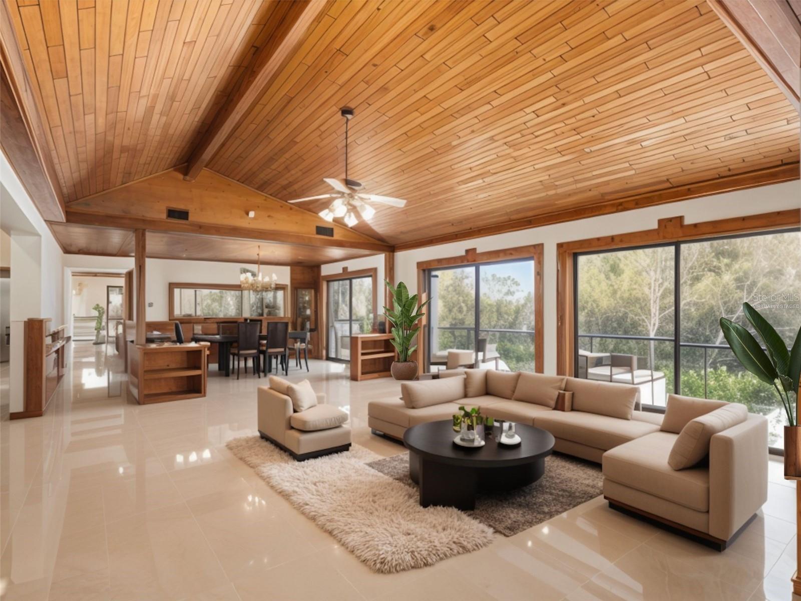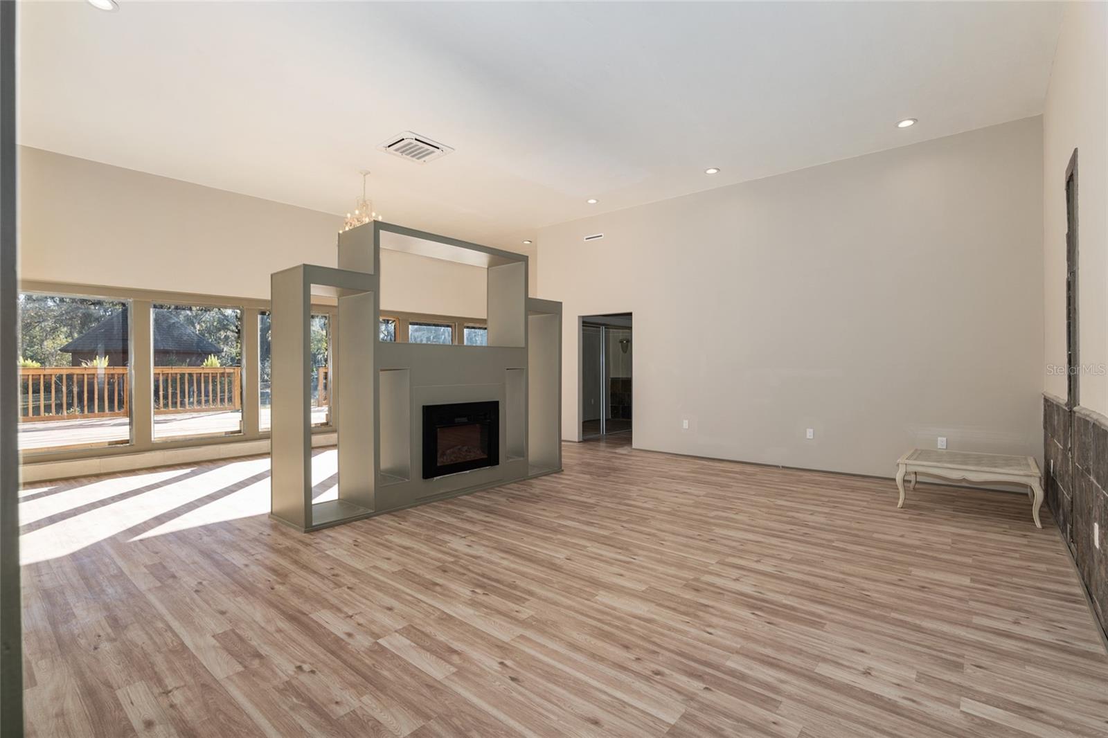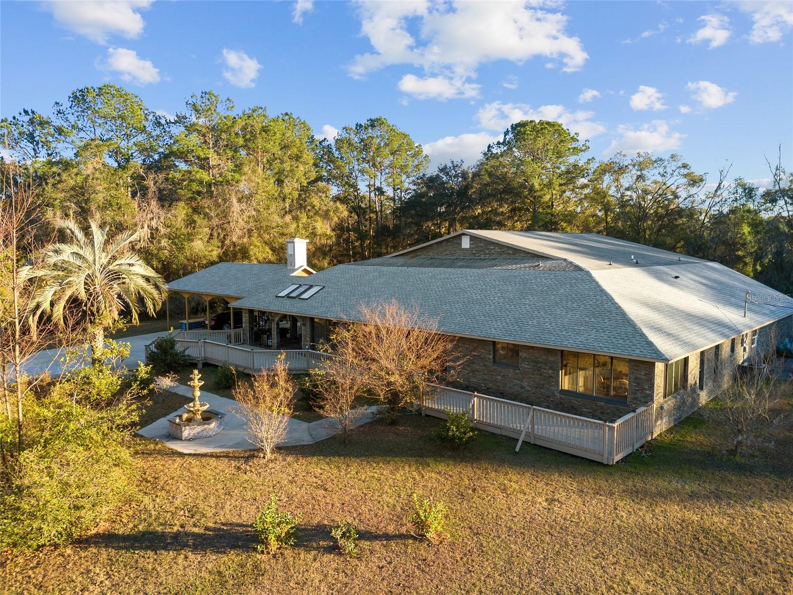 One or more photo(s) has been virtually staged. Sitting atop a stunning 5-acre lot in the exclusive Alachua Highlands—a serene community of privately owned estates just 10 minutes from Gainesville—this renovated custom home offers an unparalleled blend of luxury, craftsmanship, and natural beauty. The property is fully fenced with a gated entry and showcases breathtaking landscaping, including majestic oaks, pines, and palm trees, all backing up to a pristine State Park preserve. As you approach, a grand covered veranda and open balcony frame a magnificent outdoor water fountain with submersible lights, setting the tone for the elegance that awaits inside. The home’s exterior is further enhanced by a brand-new, 4-car carport, providing ample covered parking and convenience for residents and guests alike. Step inside to discover an array of luxurious features, including a newly designed primary suite that redefines modern luxury. With its private entrance, expansive windows showcasing serene nature views, and direct access to a sprawling back deck, this retreat is a haven of tranquility. The suite includes a mini bar, a double-sided electric fireplace, a cozy living area, and a spa-inspired en suite bathroom with floor-to-ceiling porcelain tile, a soaking tub, and a custom walk-in shower. Completing the suite is an oversized, elegantly designed walk-in closet. The home’s additional three bedrooms are all private suites, each featuring granite countertops, jetted tubs, and separate showers, ensuring every resident or guest enjoys the ultimate in comfort and privacy. Two additional half baths are available for guests. The heart of the home is the stunning gourmet kitchen, outfitted with granite countertops, stainless steel appliances, a buffet, and a breakfast area adorned with custom-stained hardwood ceilings and cabinetry. The living spaces are equally impressive, with custom-built entertainment wall units, an imported stone and marble fireplace, hardwood-covered ceilings, and custom wood paneling with built-in bookshelves in the family and living rooms. Every detail of this estate has been thoughtfully designed to combine luxury with functionality. From its exceptional craftsmanship to its serene surroundings, this property is a true masterpiece. ALSO, take advantage of a $25,000 customization credit offered to the buyers of this exquisite estate, allowing you to personalize key features of the home and make it truly your own. Whether you want to update finishes, add custom touches, or enhance your living spaces with paint or furniture, this credit provides you with the flexibility to transform this beautiful property to suit your tastes. Contact the listing agent today to explore the countless features of this unique gem and schedule your private tour.