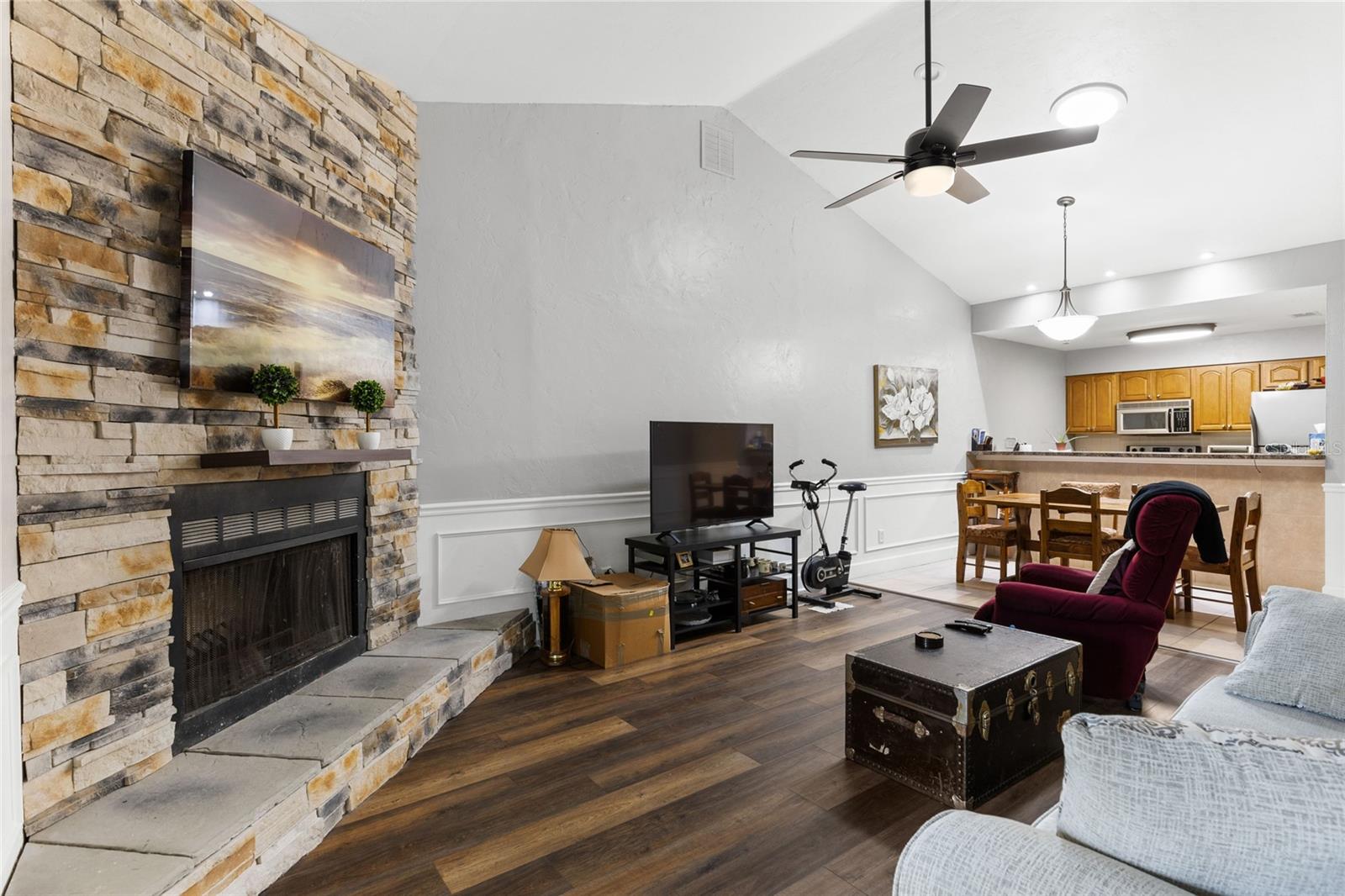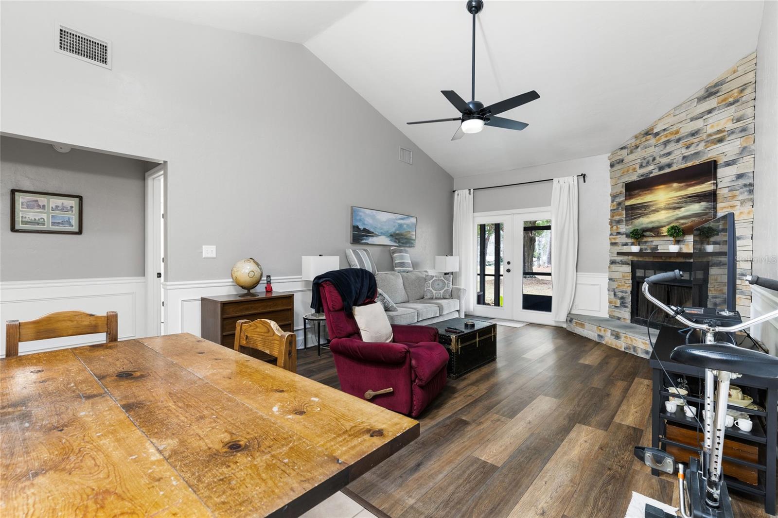 Welcome to the desirable Turkey Creek with the newly re-opened golf course. This Adorable & Immaculate 2 Bedroom,2 bathroom is move in ready and a must see. Upgrades include, Newer Roof 2020 with gutters, Newer HVAC 2020, Newer paint on front outside and inside. New Luxury Vinyl Plank, light fixtures, door handles. No carpet. Open floor plan, Kitchen with stainless appliances, vaulted ceilings in the great room with dining area and bar. The Wood burning fireplace & French doors that open to large screened in back porch overlooking the 11th hole are the icing on the cake.. last but not least there is an attached garage and two additional parking places. Turkey Creek is a gated community with a swimming pool, clubhouse with great restaurant, tennis courts, basketball courts, playground and golf course. Golf cart friendly. Low utilities with City of Alachua. Great Location. Right off of HWY 441 and close to Publix, shopping, Restaurants, UF and Shands. 3-4 Units.
