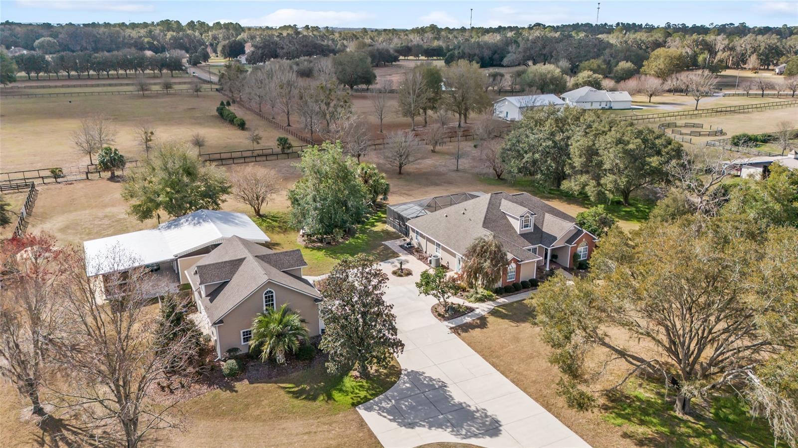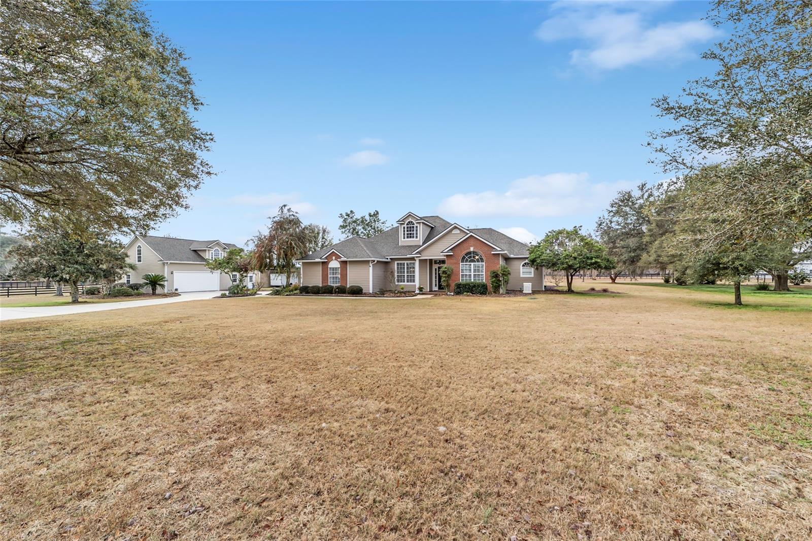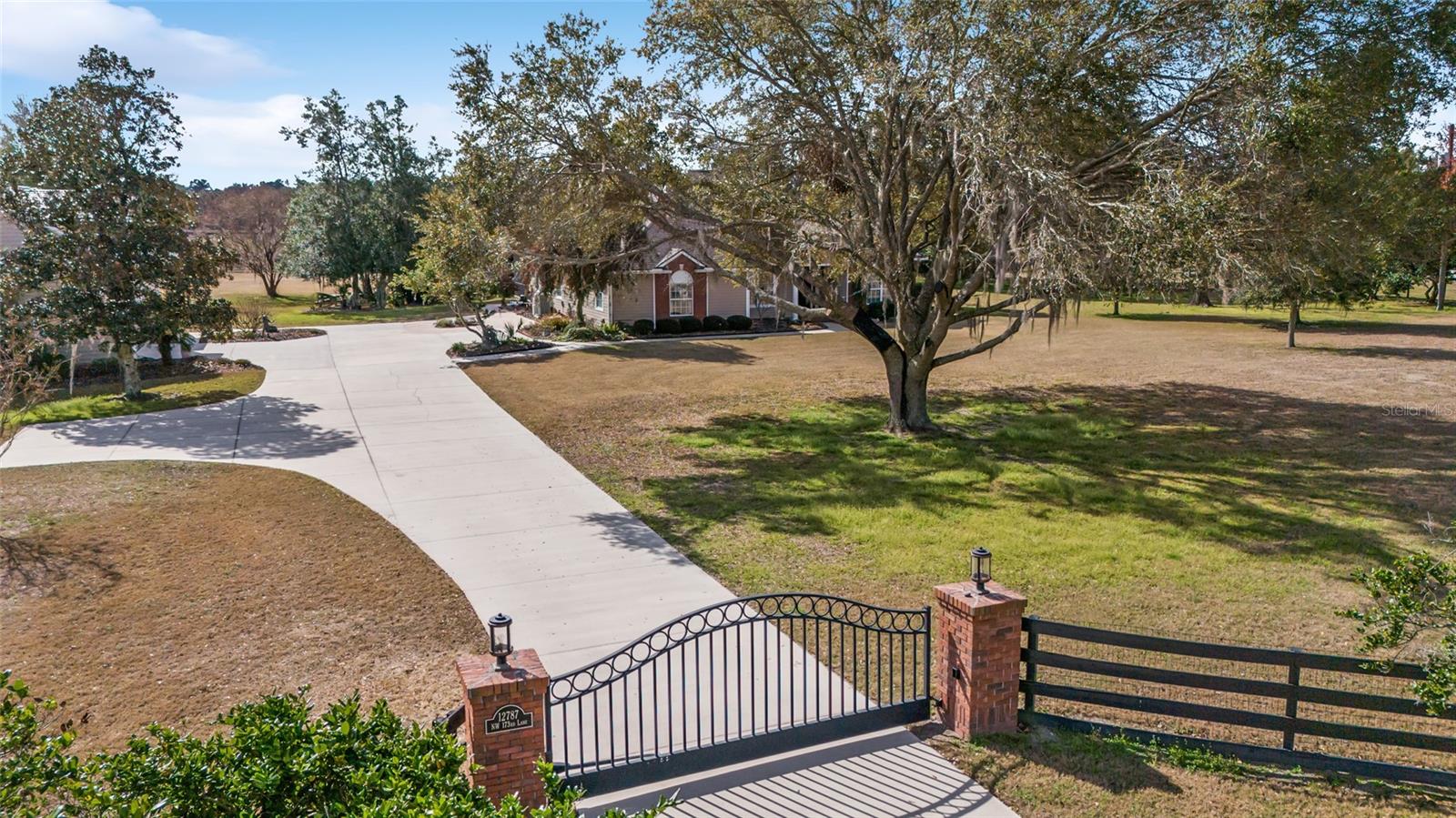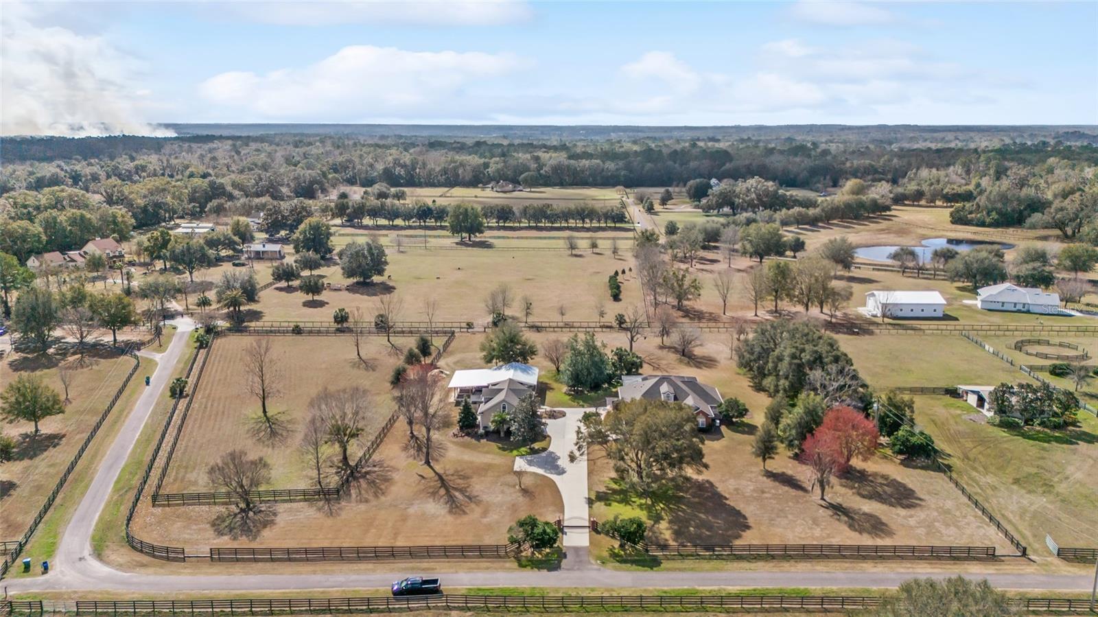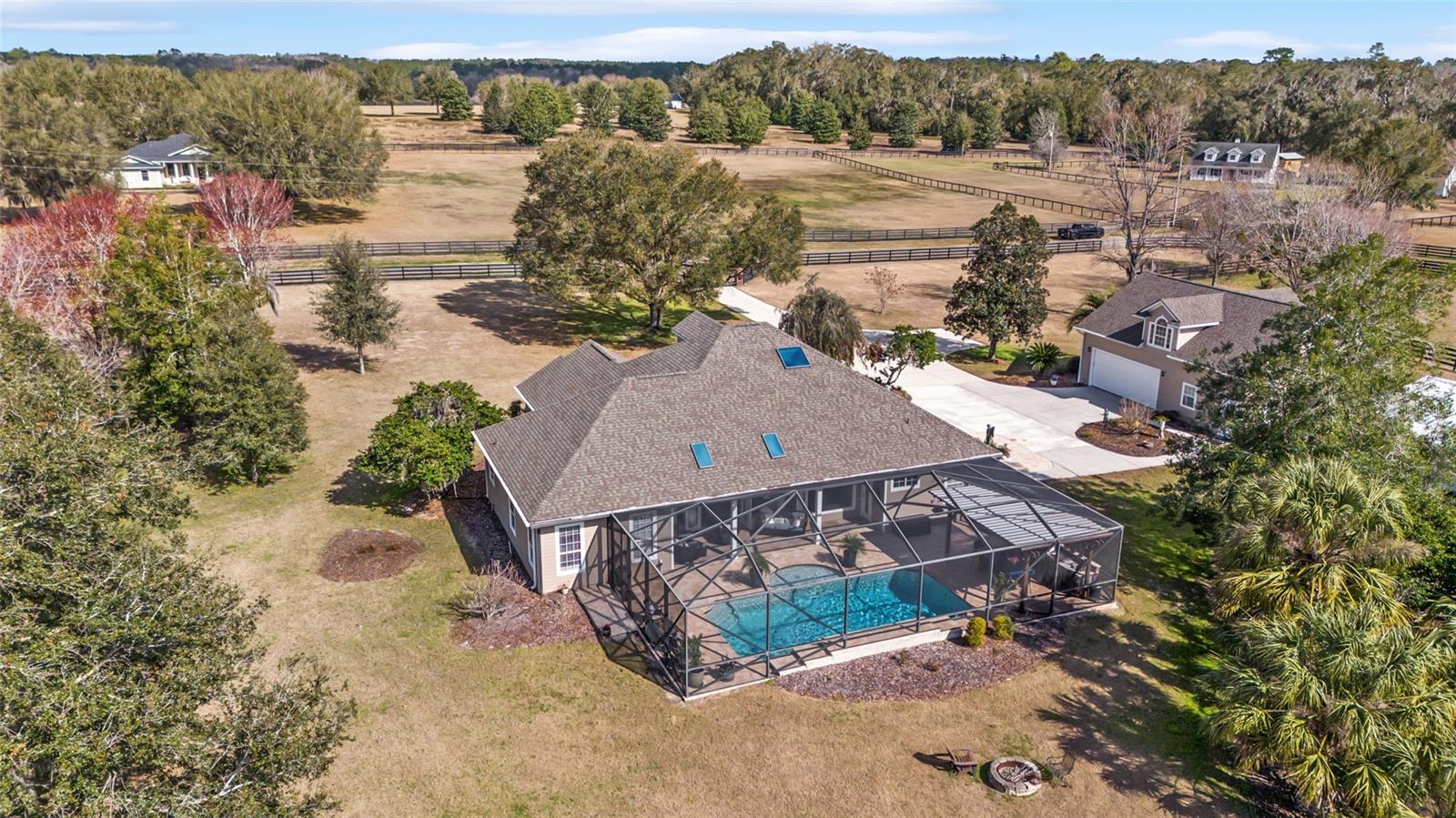 Get away from it all (but not too far) in your own personal Oasis! Custom built 4 BR 3 BA three-way split home with five-acre corner lot convenient to Gainesville and the University of Florida. Located in the desirable Rock Meadow Farm community, which boasts dedicated horseback riding (and walking) trails for the residents and gorgeous views! 1200 sq ft detached garage with 600 sq ft unfinished bonus space above. Also, a 32 x 36 concrete floor pole barn with a tack stall finished with tongue-n-groove pine and a feed room. Space for three stalls to be finished. Enjoy the serenity of the expansive back patio complete with a custom saltwater pool and huge summer kitchen. The home also includes a standby Generac propane powered whole home generator added in 2018. Open floor plan with granite counter tops, walk-in pantry, custom trim and built ins throughout, five-zone sprinkler system, central vac, and more! Roofs replaced 2021. Privacy abounds with a custom gated entry and plenty of room to enjoy the outdoors. Electricity service through Clay Electric. Garbage/refuse pick up by the City of Alachua. Seller uses Windstream for internet and phone services. Conveniently located near state parks, Publix grocery stores and to Gainesville.