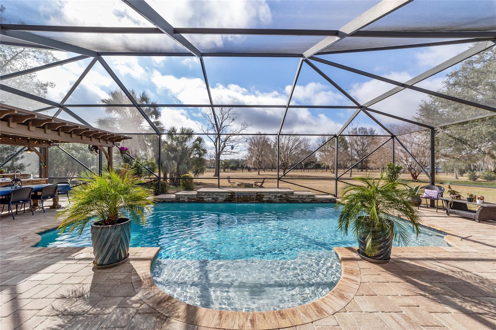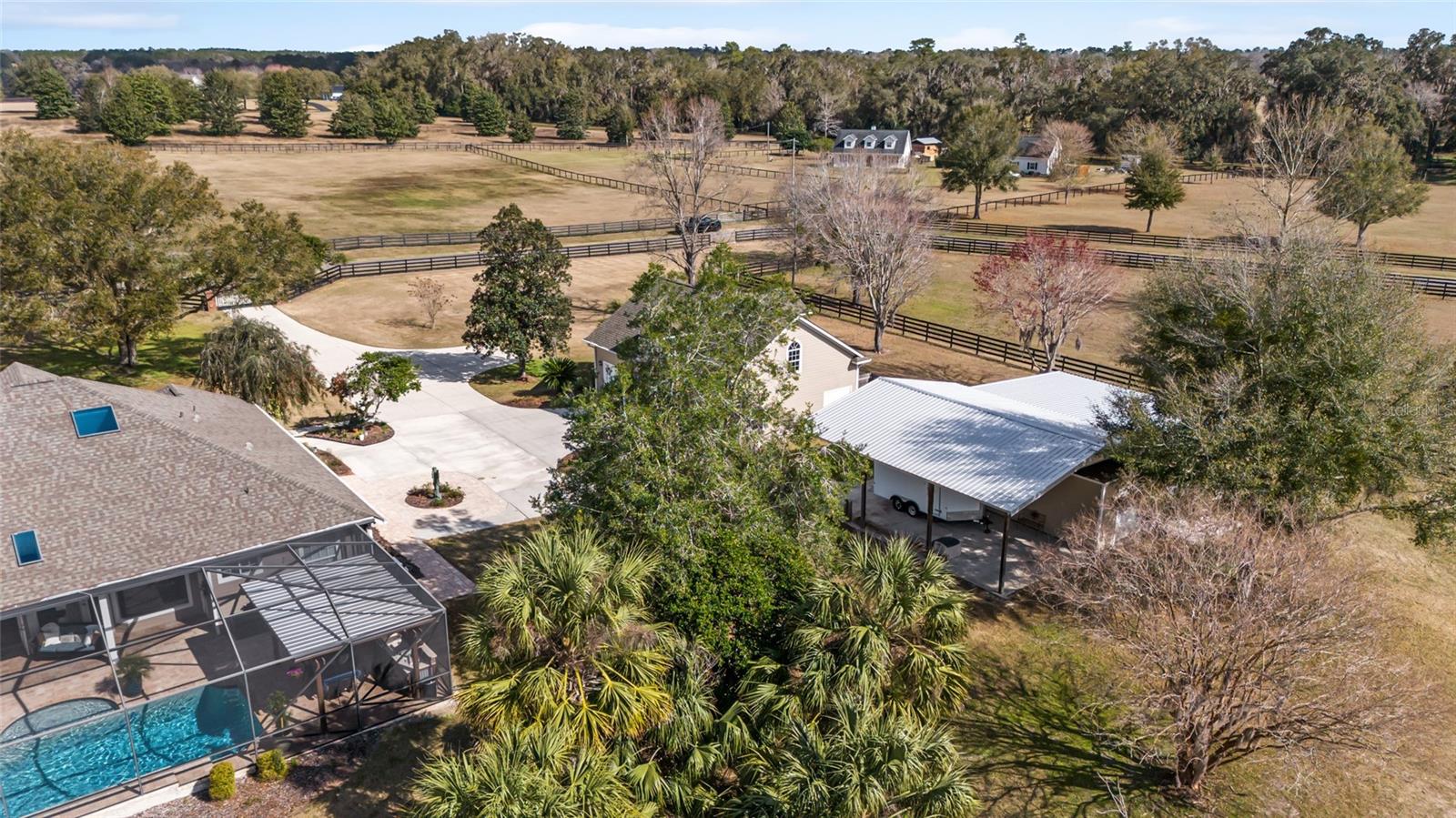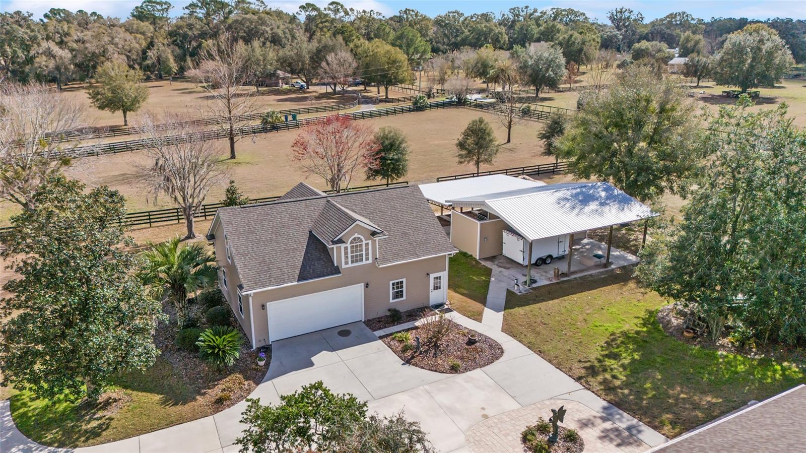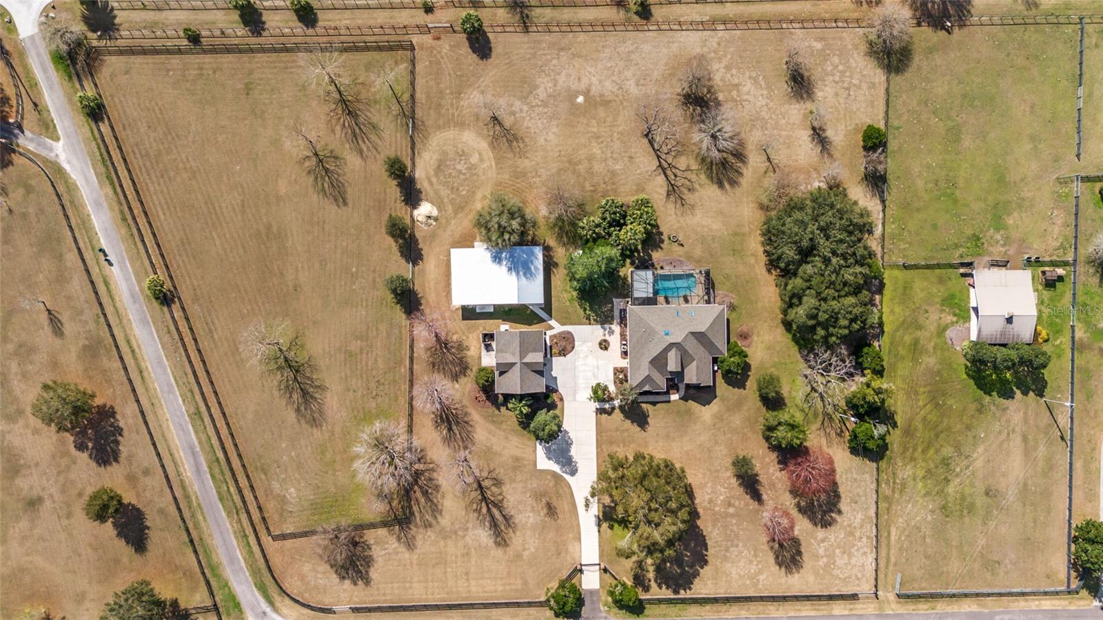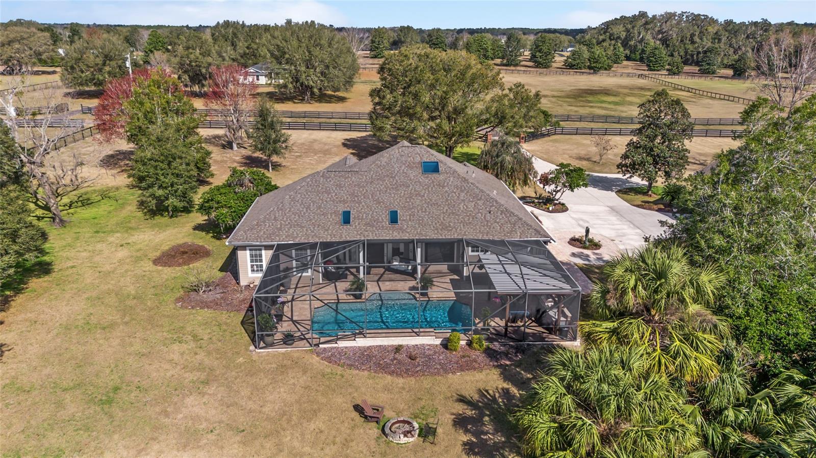 Get away from it all (but not too far) in your own personal Oasis! Custom built 4 BR 3 BA three-way split home with five-acre corner lot convenient to Gainesville and the University of Florida. Located in the desirable Rock Meadow Farm community, which boasts dedicated horseback riding (and walking) trails for the residents and gorgeous views! 1200 sq ft detached garage with 600 sq ft unfinished bonus space above. Also, a 32 x 36 concrete floor pole barn with a tack stall finished with tongue-n-groove pine and a feed room. Space for three stalls to be finished. Enjoy the serenity of the expansive back patio complete with a custom saltwater pool and huge summer kitchen. The home also includes a standby Generac propane powered whole home generator added in 2018. Open floor plan with granite counter tops, walk-in pantry, custom trim and built ins throughout, five-zone sprinkler system, central vac, and more! Roofs replaced 2021. Privacy abounds with a custom gated entry and plenty of room to enjoy the outdoors. Electricity service through Clay Electric. Garbage/refuse pick up by the City of Alachua. Seller uses Windstream for internet and phone services. Conveniently located near state parks, Publix grocery stores and to Gainesville.