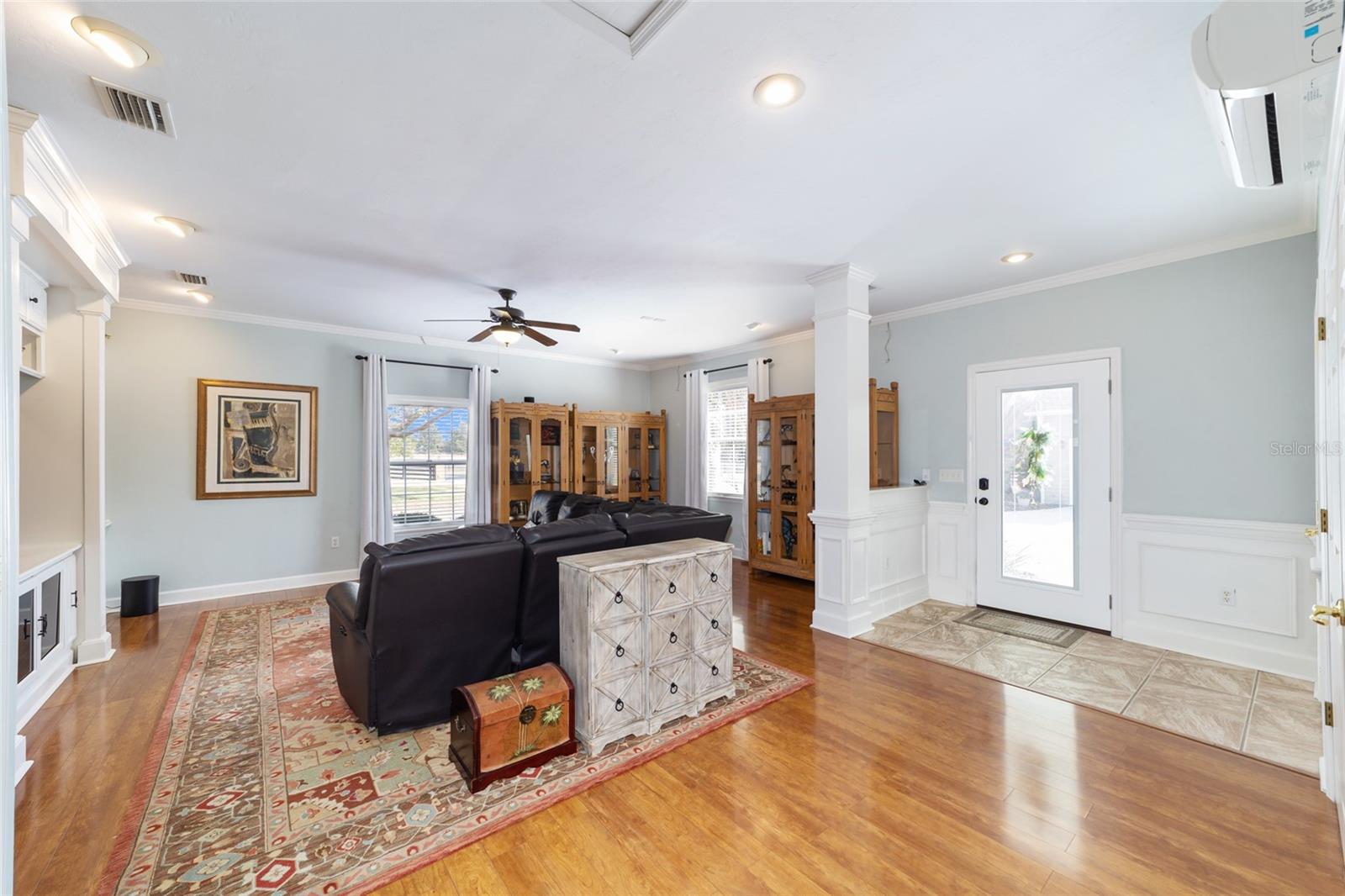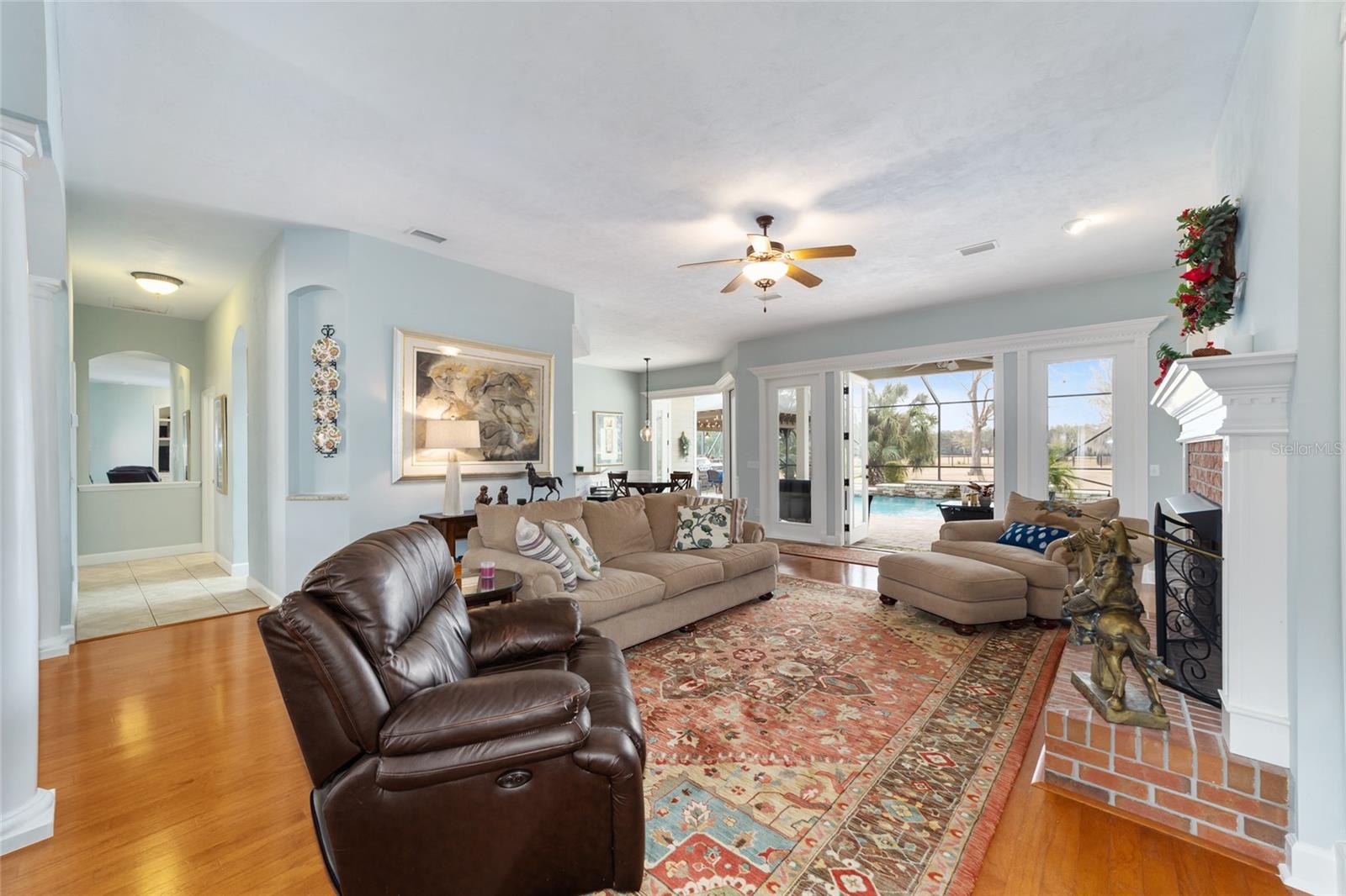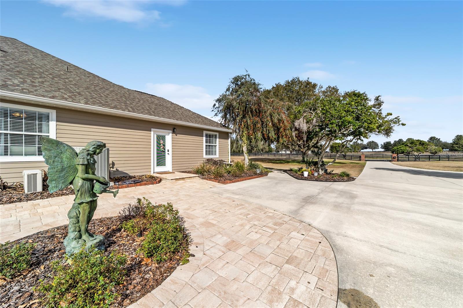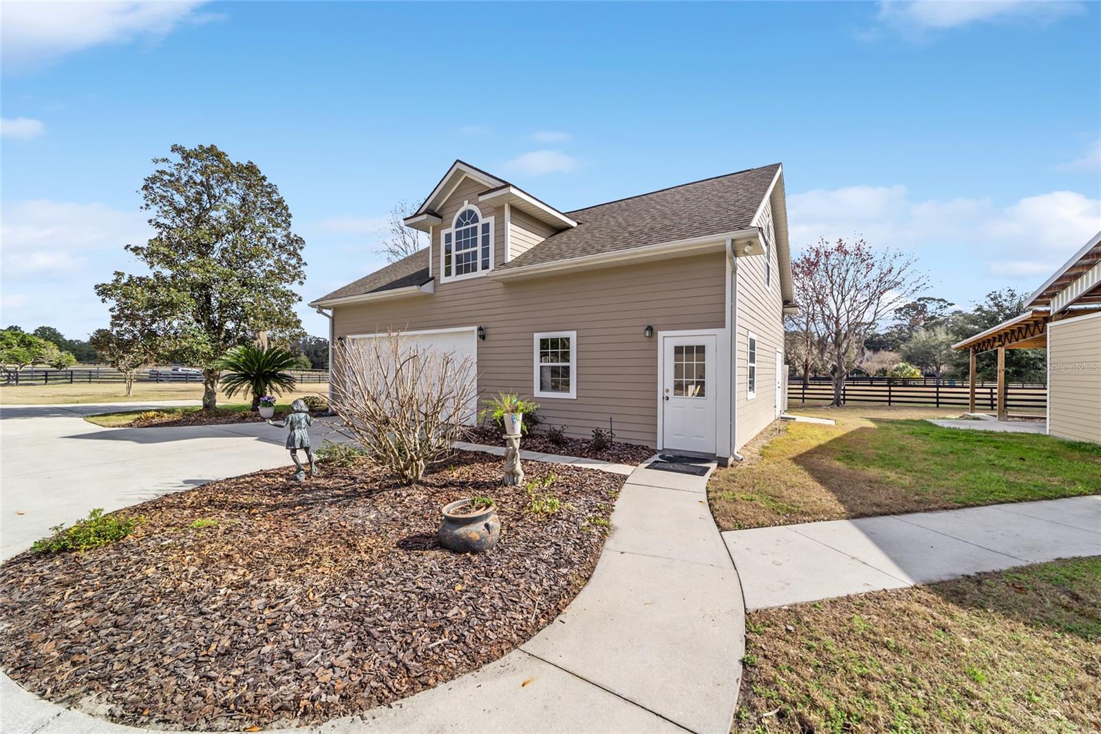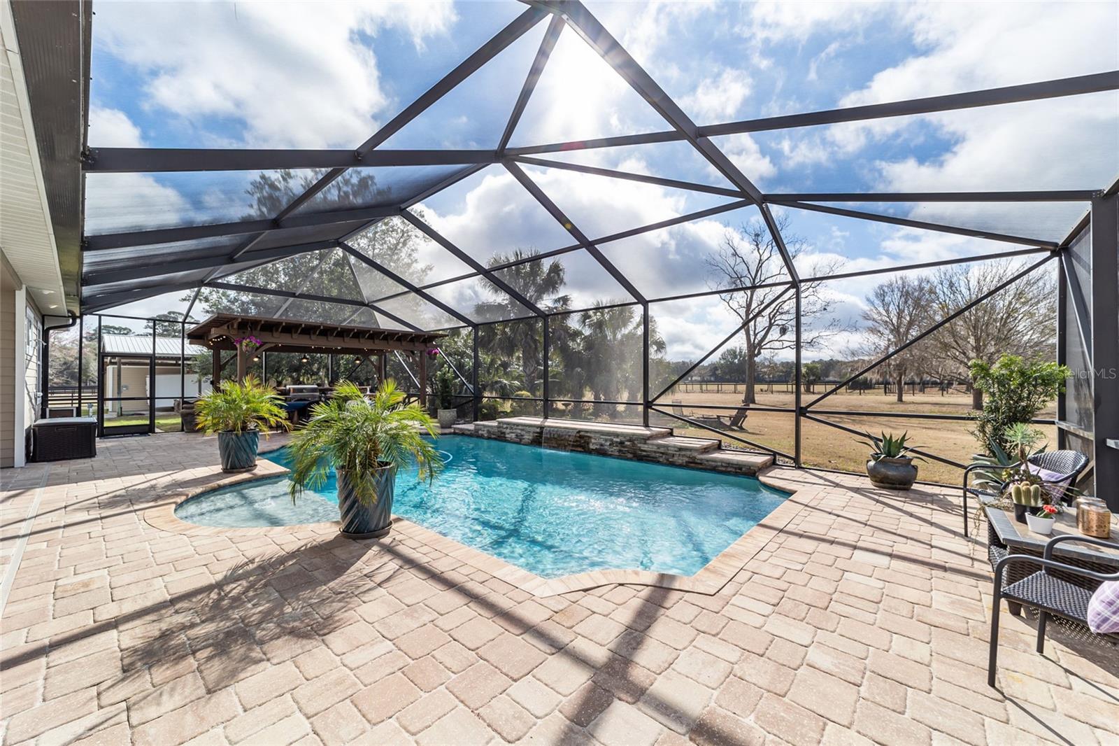 Get away from it all (but not too far) in your own personal Oasis! Custom built 4 BR 3 BA three-way split home with five-acre corner lot convenient to Gainesville and the University of Florida. Located in the desirable Rock Meadow Farm community, which boasts dedicated horseback riding (and walking) trails for the residents and gorgeous views! 1200 sq ft detached garage with 600 sq ft unfinished bonus space above. Also, a 32 x 36 concrete floor pole barn with a tack stall finished with tongue-n-groove pine and a feed room. Space for three stalls to be finished. Enjoy the serenity of the expansive back patio complete with a custom saltwater pool and huge summer kitchen. The home also includes a standby Generac propane powered whole home generator added in 2018. Open floor plan with granite counter tops, walk-in pantry, custom trim and built ins throughout, five-zone sprinkler system, central vac, and more! Roofs replaced 2021. Privacy abounds with a custom gated entry and plenty of room to enjoy the outdoors. Electricity service through Clay Electric. Garbage/refuse pick up by the City of Alachua. Seller uses Windstream for internet and phone services. Conveniently located near state parks, Publix grocery stores and to Gainesville.