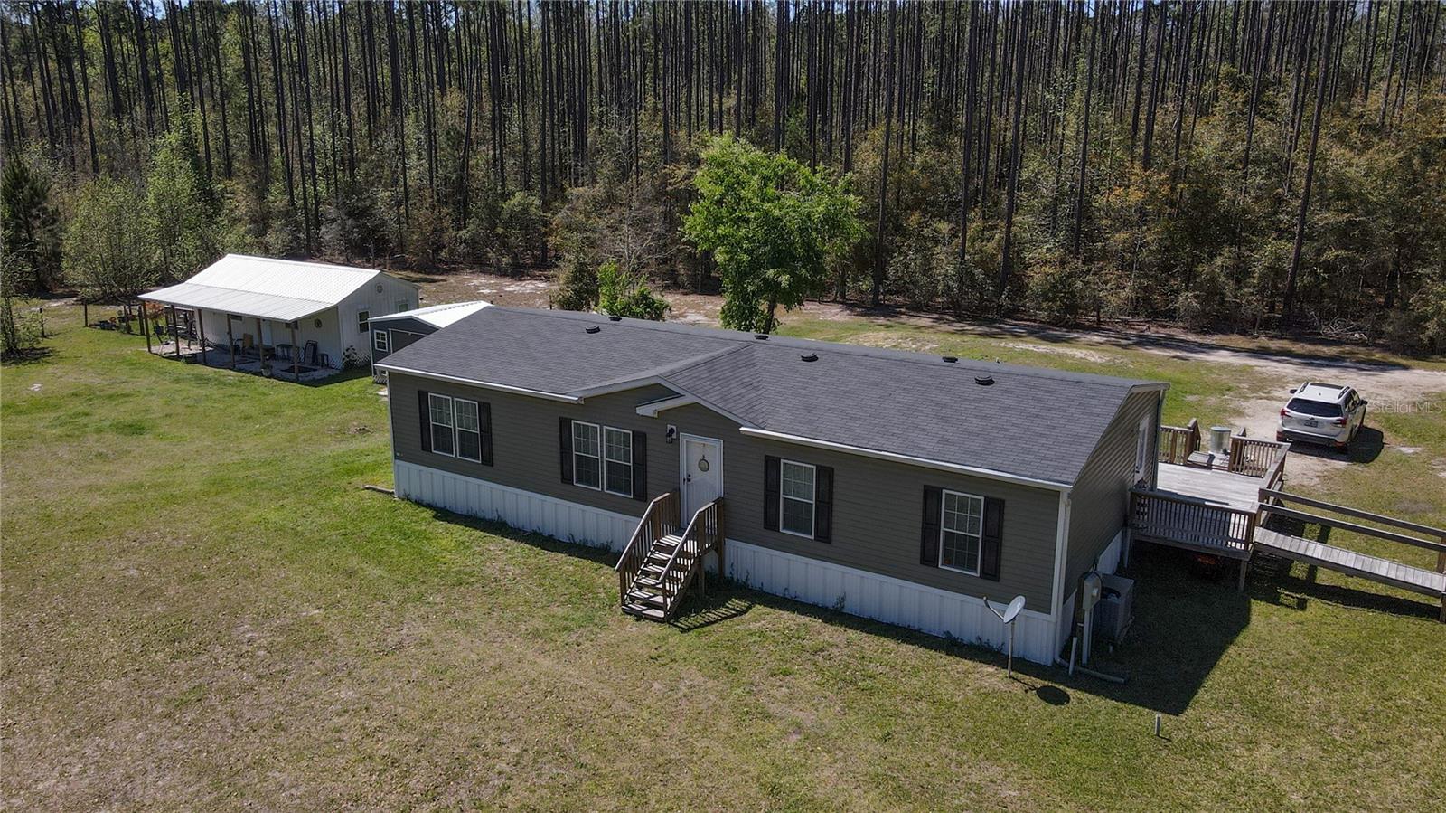One or more photo(s) has been virtually staged. Over 10 Acres! Multi-family compound. One house is a 4 bedroom and 2- bathroom, The manufactured home is a three bedroom and two bathrooms. Additionally, there is she-shed. Country living in your own compound. This property offers two residences, making it ideal for multi-generational living. This is a retreat and a homestead to grow with loved ones. The main house is block with a spacious interior and an oversized living room. Granite counters in the kitchen with modern cabinets and self-closing drawers. Plenty of room outside for a firepit and a pole barn to house all of your outdoor toys. The second house is a 2021 manufactured home with textured walls in the main living area and plenty of space. The lush woods are great for hunting or exploring nature's beauty. The "she-shed" is an added treat. Electric charging station outside as well. Make this your home. One or more rooms are virtually stagged.