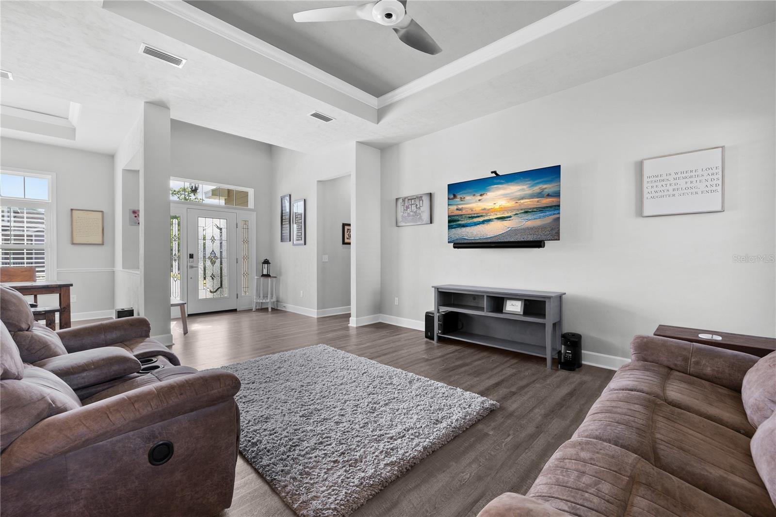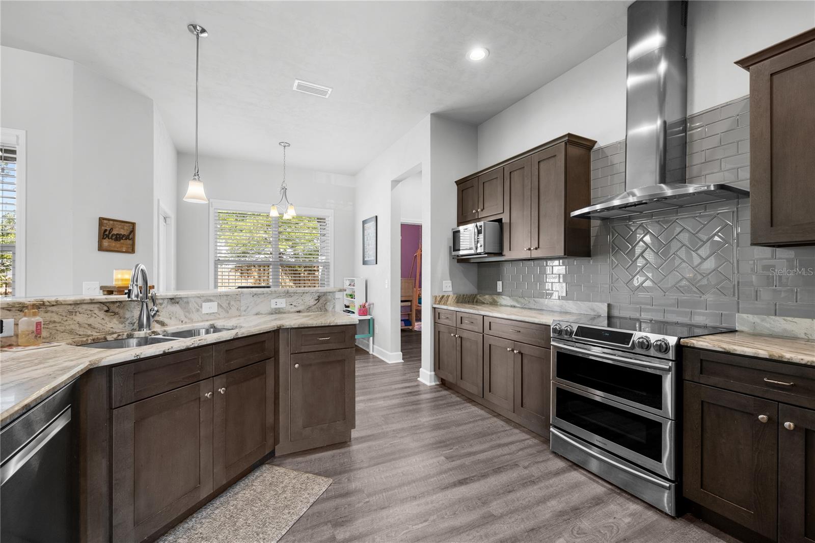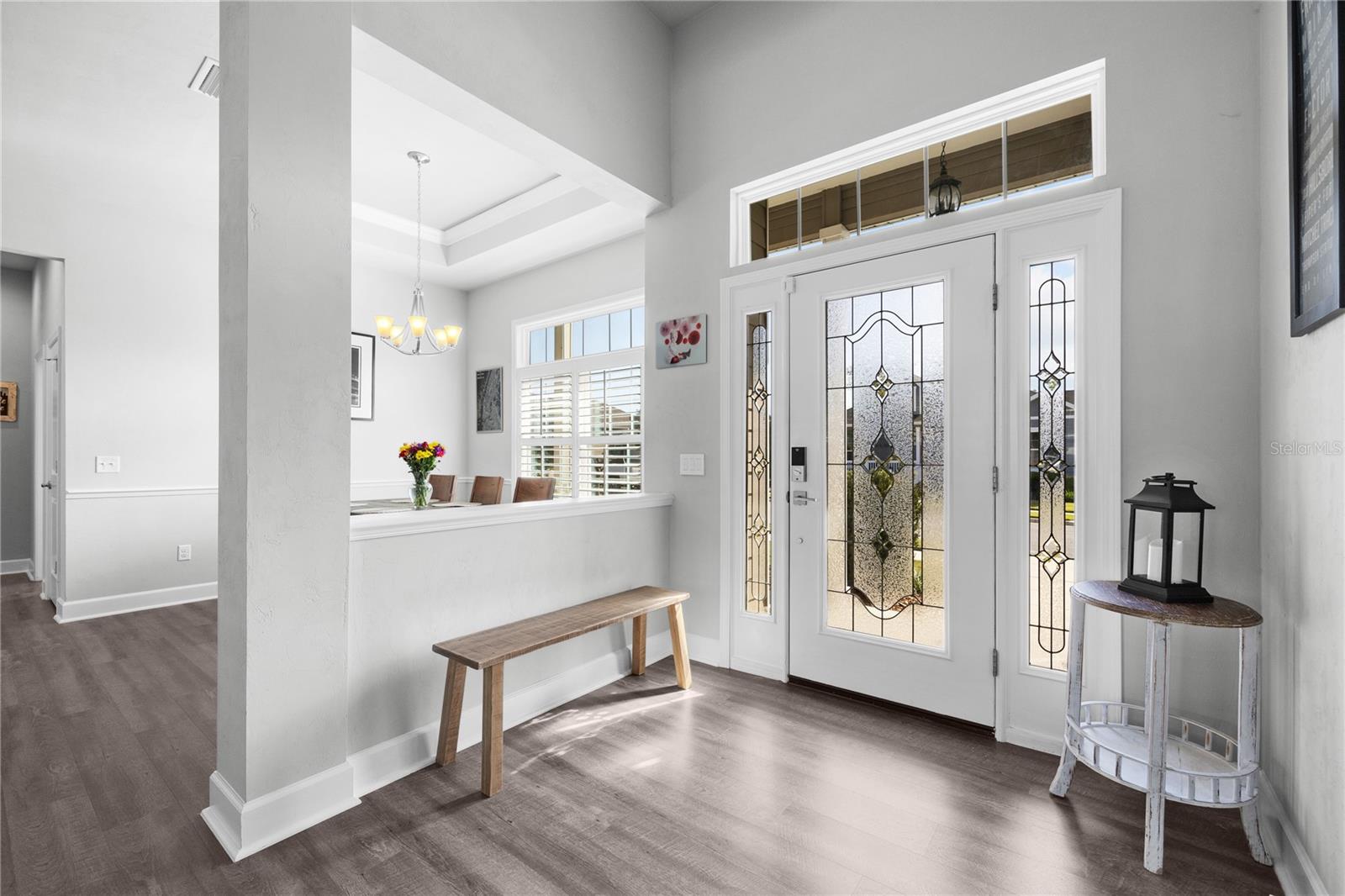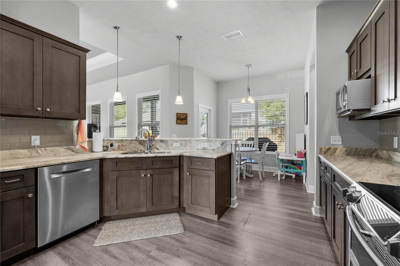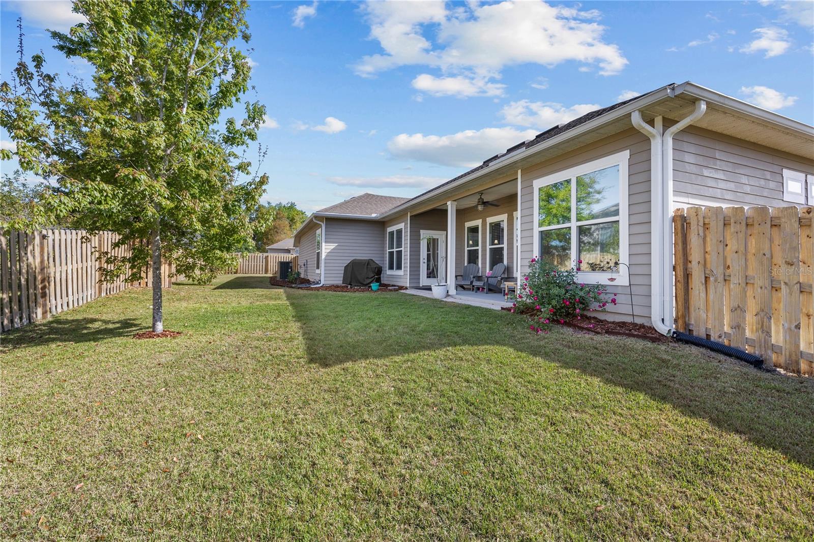 Welcome to your future home in the sought after neighborhood of Heritage Oaks in Alachua! This 4 bedroom, 3 bathroom home shows true craftsmanship and quality, vaulted ceilings, split floorplan, open living space, stainless steel appliances (that all stay), and no carpet in the home. Backyard is fully fenced, with mature citrus trees and a patio overlooking the yard. Kitchen has custom oversized cabinets and stone countertops and built in pantry, perfect for the chefs in your life! Primary suite has his and her closets and vanities, large garden tub and a walk in shower. Guest rooms are on the other side of the home, with bathroom between the rooms. The guest suite is located at the back of the home, with walk in closet. Access to the laundry room from inside the home and garage, large folding counter and cabinets for ample storage. Fully finished 2 car garage and spacious driveway for all your guests! The neighborhood is very walkable with sidewalks and large playground at the center of the community. Easy access to 441 and I-75 for very short commute into Gainesville. Walking distance to Publix and very close to multiple restaurants. Call your very favorite buyers agent for a showing today!