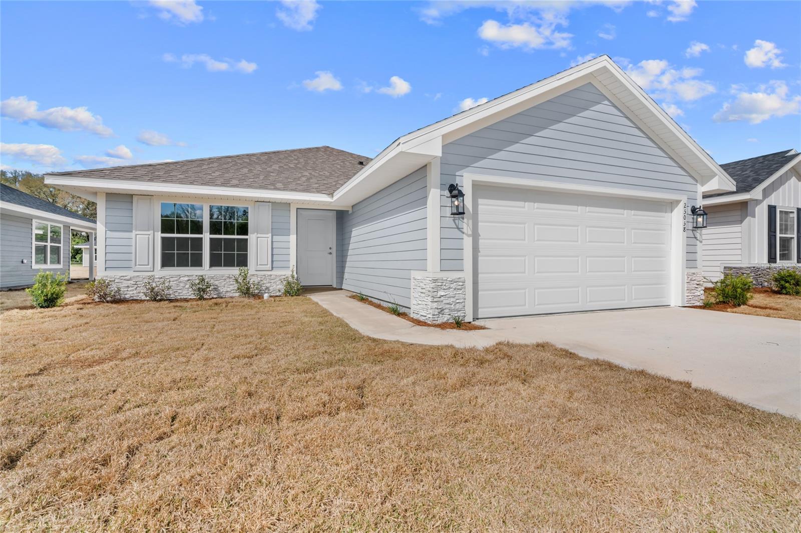 Under Construction. SELLER Concession up to $15,000 towards closing. Savannah Station is in a quiet, country-like area, yet close to all your shopping needs. Three-bedroom, two-bath 1368 SQFT home LOT 257 with Hardy Siding, stacked stone accents on the exterior, and a new wood privacy fence. Great location close to Gainesville, Florida. Located in the desirable area of Alachua, Florida, this property features luxury vinyl plank flooring in all main areas, a large family room attached to the dining room, and a 16x7 covered back patio. The spacious Primary features a large closet and a granite double sink vanity, accompanied by a large walk-in Tiled Shower. The kitchen area features a bar that overlooks the Dining room and family room. This prominent kitchen features upgraded cabinets, Granite Countertops, a Stainless Steel Frigidaire appliance, a Range, a Dishwasher, a microwave, and a disposal. Brushed Nickel Faucets, LED lighting throughout. Built-In Pest Defense System. Energy-efficient HVAC system. Pictures of this home may differ from the actual house. Taxes are based solely on land taxes. Prices are subject to change without notice.