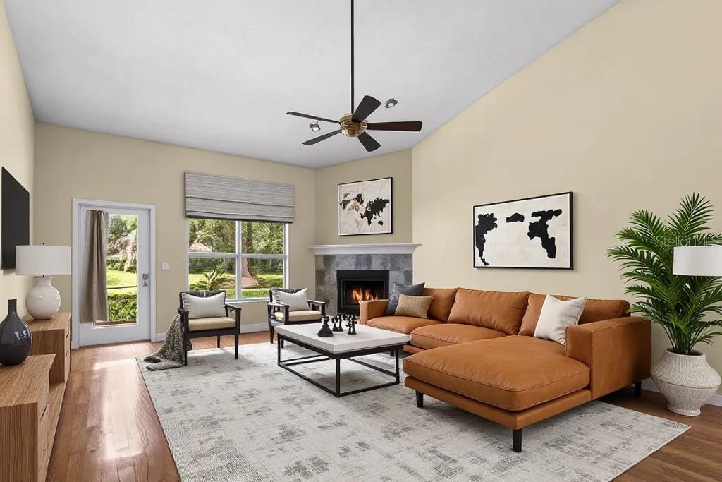 Welcome home to this beautifully maintained 3 bedroom, 2 bath retreat in the gated Turkey Creek golf course community. The open layout features vaulted ceilings, rich wood and tile flooring, and a cozy fireplace, while the kitchen offers newer stainless steel appliances, ample storage, and a seamless flow into the great room. A private patio overlooks peaceful green space, giving you the beauty of a spacious yard without the upkeep. With a brand new roof installed in February 2024, an AC that is only a year old, and thoughtful updates throughout, this home is move in ready and full of Florida charm.