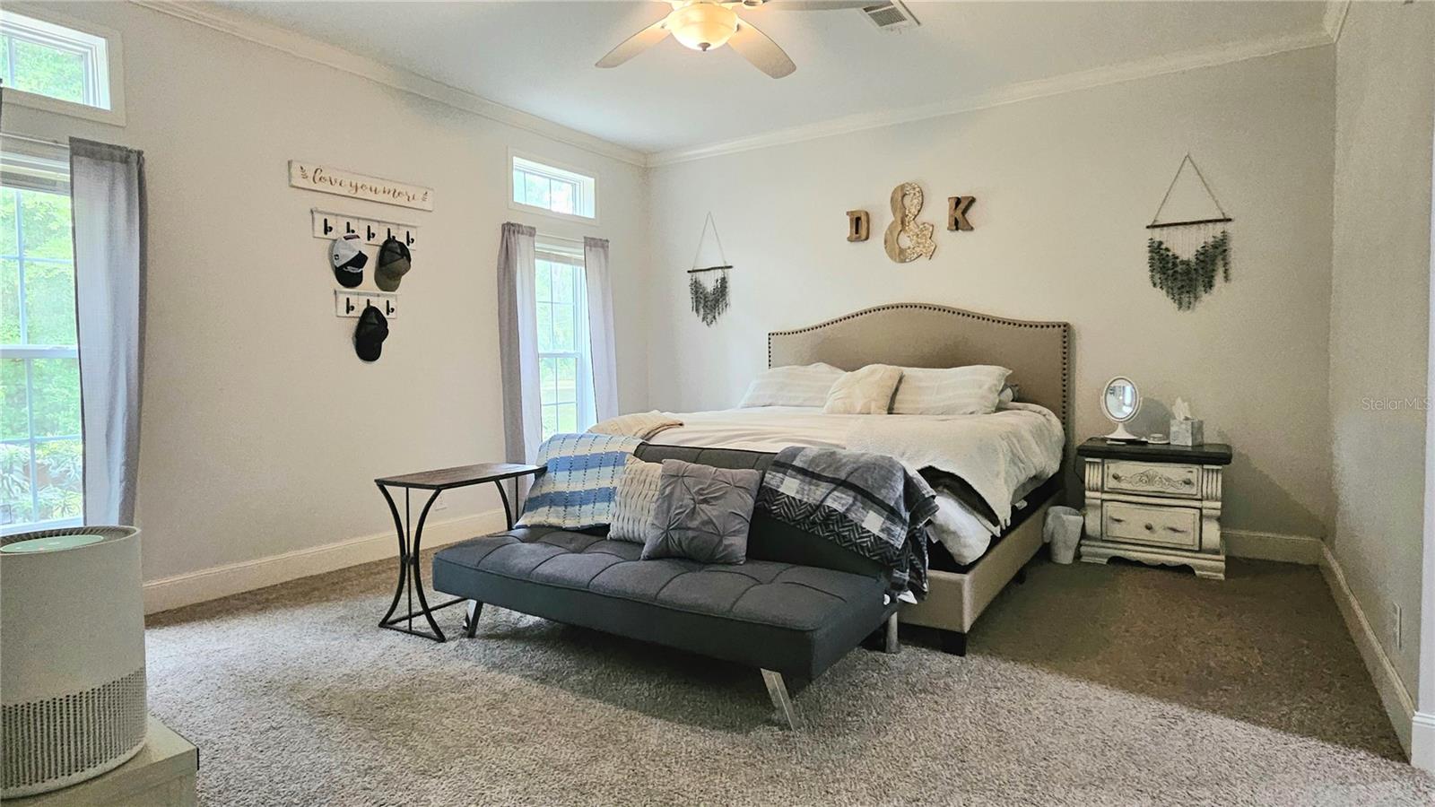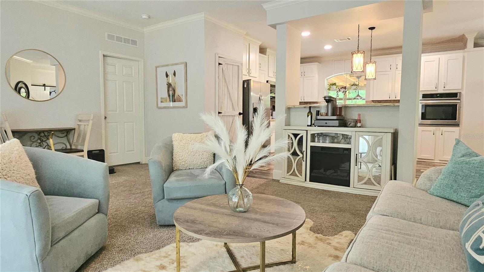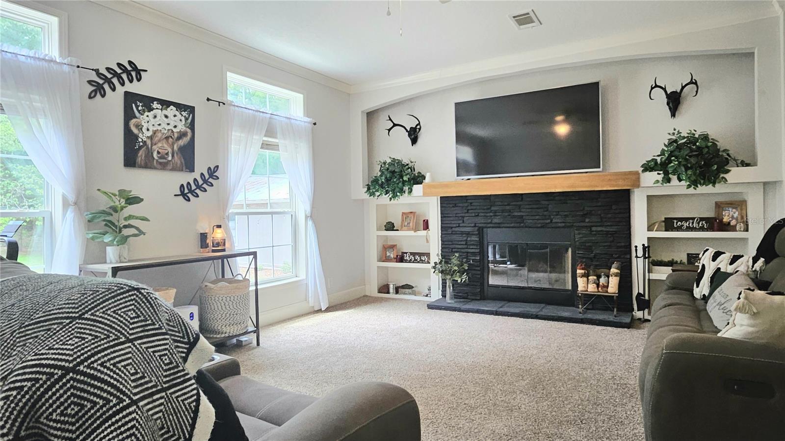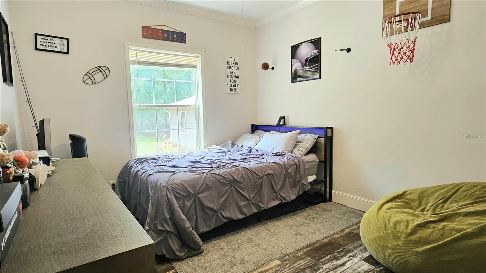 Experience the tranquility of modern country living in this spacious 4-bedroom, 2-bathroom, 2020 home, boasting 2,280 square feet, all situated on over 6 private wooded acres. Centrally located between Gainesville, Alachua, and Newberry, this home is only 15 minutes from everything and completely move-in ready. A convenient circular driveway leads to an oversized detached 2-car garage on one side, and a covered metal carport on the other that is perfect for your boat or utility vehicle. The large wooden deck at the front entrance welcomes you into the front living room, while a convenient side entrance provides access to a useful mudroom with a utility sink. Inside, you'll find plenty of relaxation spaces to unwind. The home feels expansive and open, thanks to 9-foot ceilings and transom windows that flood the area with natural light. The well-lit front living room seamlessly flows into the kitchen, making entertaining a breeze. The spacious central family room features a cozy wood-burning fireplace, perfect for gatherings. The open kitchen is designed for convenience and entertaining, featuring an oversized custom island with a bar, upgraded appliances, a stainless steel farmhouse sink, double-stacked cabinets, abundant counter space, a full-height pantry, and a utility closet. The generously sized master bedroom is filled with sunlight from large windows and offers a luxurious retreat with its spacious spa-like ensuite bathroom, complete with a garden tub and a luxury walk-in shower. This well-designed split floor plan features three inviting guest bedrooms on the opposite side of the home, ensuring privacy. Accessible from the family room, the space includes a beautifully upgraded full guest bathroom with a luxurious garden tub and shower combination, along with a stylish dual vanity with two sinks. Step outside to the comfortable, covered back patio, equipped with an oversized ceiling fan, offering an ideal outdoor relaxation space. You can fully immerse yourself in nature by walking the footpaths or riding ATVs on the trails that wind through the wooded property.