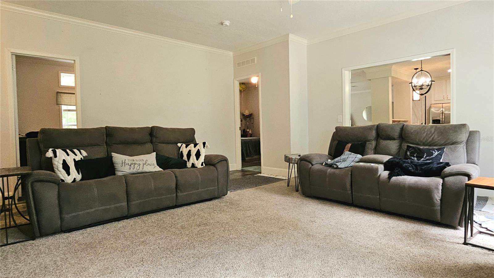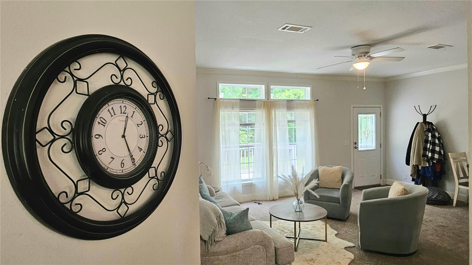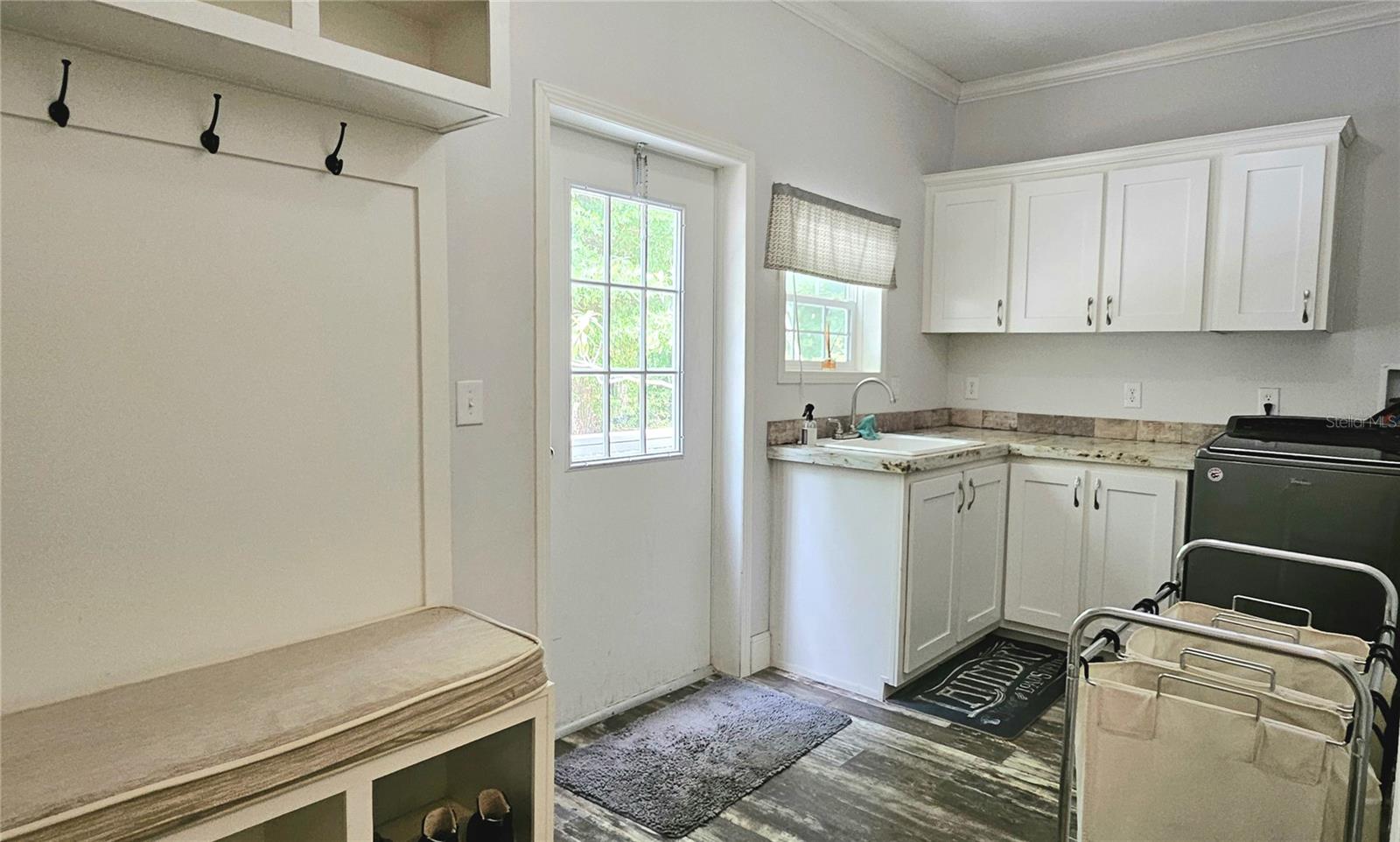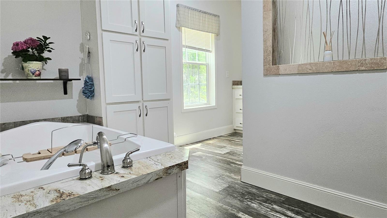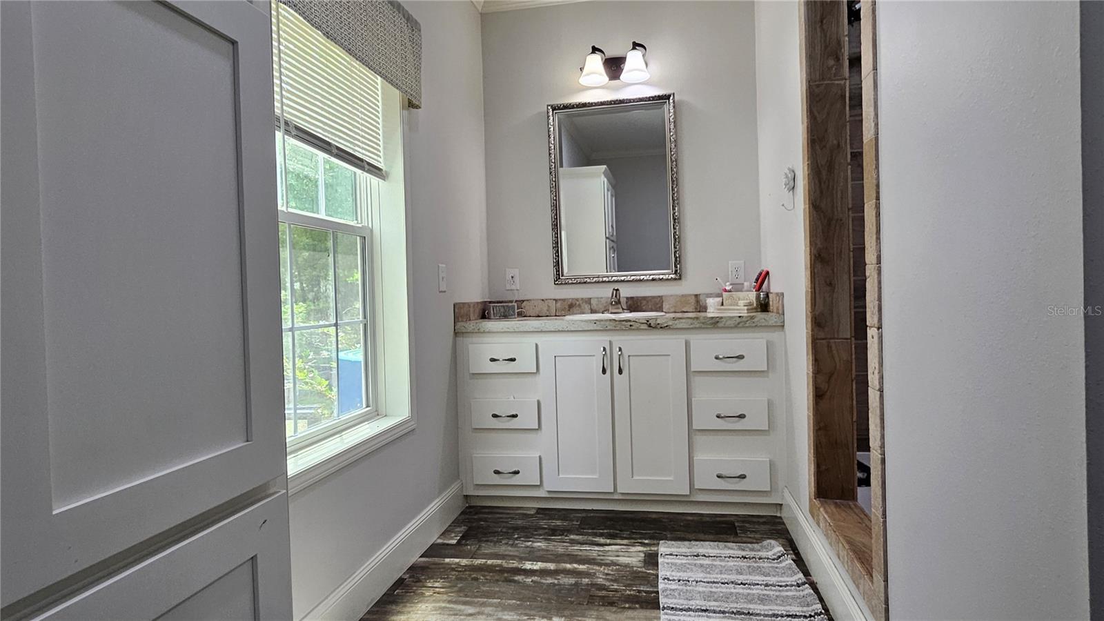 Experience the tranquility of modern country living in this spacious 4-bedroom, 2-bathroom, 2020 home, boasting 2,280 square feet, all situated on over 6 private wooded acres. Centrally located between Gainesville, Alachua, and Newberry, this home is only 15 minutes from everything and completely move-in ready. A convenient circular driveway leads to an oversized detached 2-car garage on one side, and a covered metal carport on the other that is perfect for your boat or utility vehicle. The large wooden deck at the front entrance welcomes you into the front living room, while a convenient side entrance provides access to a useful mudroom with a utility sink. Inside, you'll find plenty of relaxation spaces to unwind. The home feels expansive and open, thanks to 9-foot ceilings and transom windows that flood the area with natural light. The well-lit front living room seamlessly flows into the kitchen, making entertaining a breeze. The spacious central family room features a cozy wood-burning fireplace, perfect for gatherings. The open kitchen is designed for convenience and entertaining, featuring an oversized custom island with a bar, upgraded appliances, a stainless steel farmhouse sink, double-stacked cabinets, abundant counter space, a full-height pantry, and a utility closet. The generously sized master bedroom is filled with sunlight from large windows and offers a luxurious retreat with its spacious spa-like ensuite bathroom, complete with a garden tub and a luxury walk-in shower. This well-designed split floor plan features three inviting guest bedrooms on the opposite side of the home, ensuring privacy. Accessible from the family room, the space includes a beautifully upgraded full guest bathroom with a luxurious garden tub and shower combination, along with a stylish dual vanity with two sinks. Step outside to the comfortable, covered back patio, equipped with an oversized ceiling fan, offering an ideal outdoor relaxation space. You can fully immerse yourself in nature by walking the footpaths or riding ATVs on the trails that wind through the wooded property.