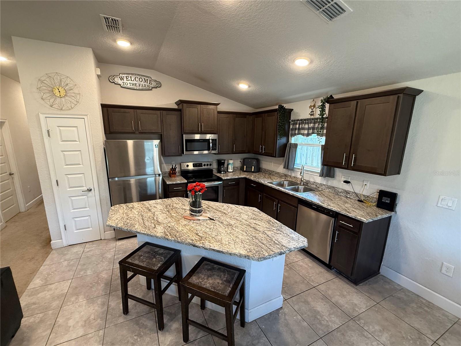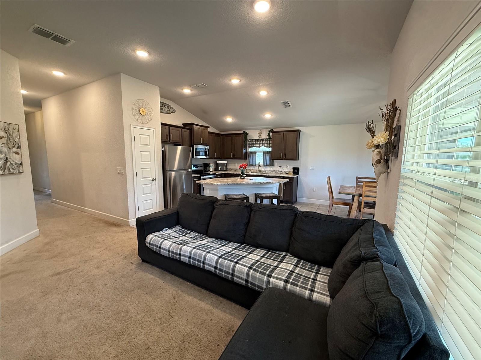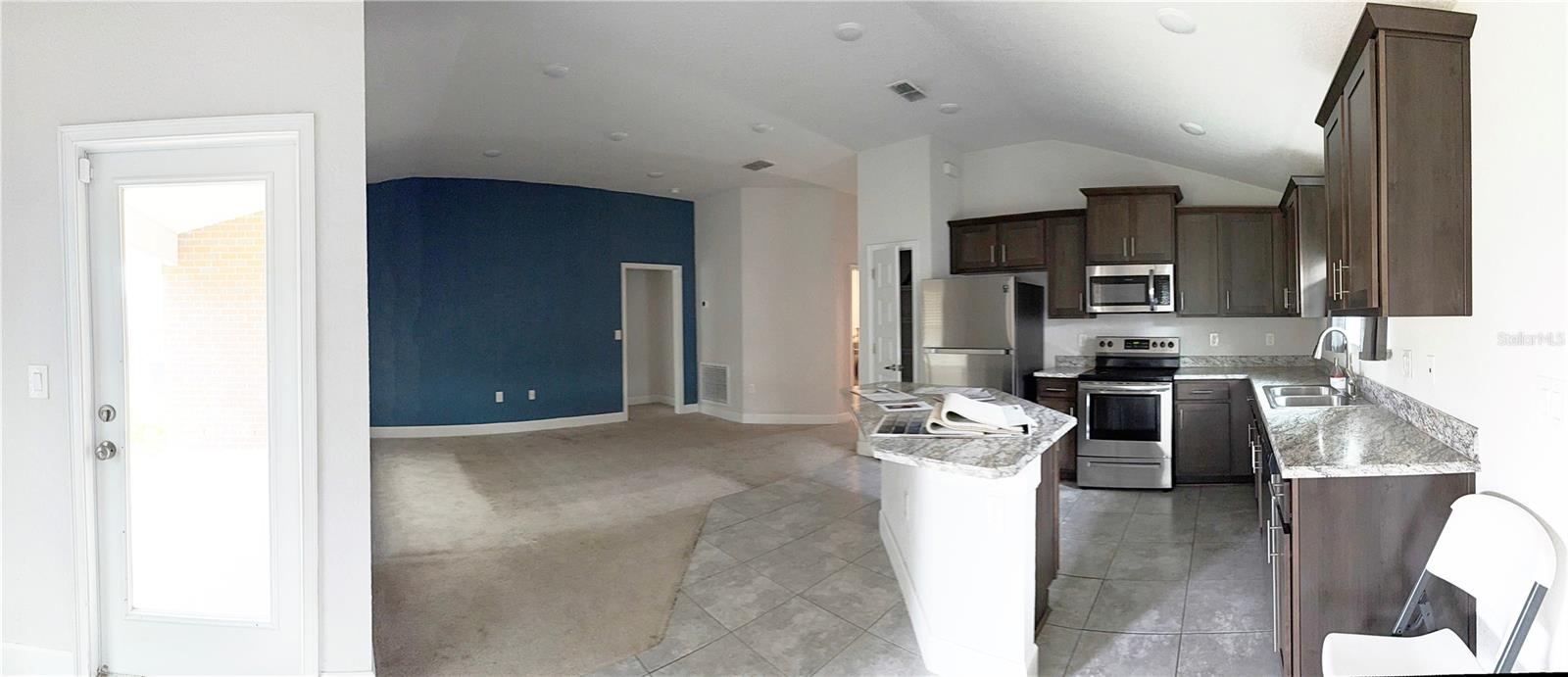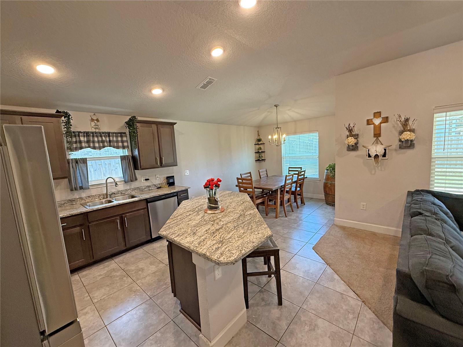 PRICE DROPPED. MILITARY MOVE requires fast sale of 2021 Adams Model Home. 3BR/2BA brick *no painting maintenance* 1,512 sq ft HC (2,093 sq ft UR) vaulted/sloped ceilings in the home add to sense of space. It's a split floorpan with ensuite master bath. Two covered porches (front & back), each with room for chairs and table. The open concept floor plan provides plenty of natural light. The plan combines the family room to the kitchen to dining, to the covered porch back yard. The kitchen has sloped ceiling, granite look formica counters, closet pantry, S/S appliances, with stainless sink, garbage disposal and center isle for eating and food prep. Lots of cabinets for storage of kitchen tools and utensils. Sharing the openness with kitchen is the family/great room with extra big window, also a sloped ceiling. This framing detail is not often seen, as it ads materials cost and framer know-how, but it really adds to the spacious feeling over all. The roomy master suite is a private retreat with large en-suite bath, two vanities, glass and tiled shower, like new garden tub, and the private potty room. Bath also has a sloped ceiling making for a robust, big & tall feel. Bedroom #2 has the bay window for extra space and creative decorating. Hall bath has tub/shower combo, tiled floors and good sized sink. Brushed Nicklel faucets and fixtures throughout the house, with abundant recessed LED lighting. Bedroom #3 has another sloped ceiling, instrumental in creating a cozy, roomy bedroom space. Hall laundry/utility room with a tech panel for the prewired security system that can be initiated by new owners. The return closet has the Carrier AC unit in is this room, affording a quieter living space, set up high for easy filter change and monthly bleach drop. Outside, the 3/4 wrapped wooden privacy fenced-in backyard was perfect for sellers big dogs. This yard is a clean pallet; good for the minimalist who does not want vegetation maintenance, or it's ready for your own landscape & garden design, which can become your biggest investment to a property. The sky is the limit here to enjoy the Florida outdoors in your own private, natural space the way you want it. Savannah Station offers a nice playground area and; new clubhouse and pool currently under construction. Well maintained sidewalks for walks or jogs throughout the neighborhood. This is a well established friendly, close-knit community. Minutes to Downtown Alachua, High Springs and Gainesville: shops, restaurants, schools, businesses. Florida natural springs & rivers just minutes drive. Alachua is “The Good Life Community” and one of the largest bio life sciences work sectors in FL. VIRTUAL TOUR: https://www.youtube.com/watch?v=vM8f78cV4R8