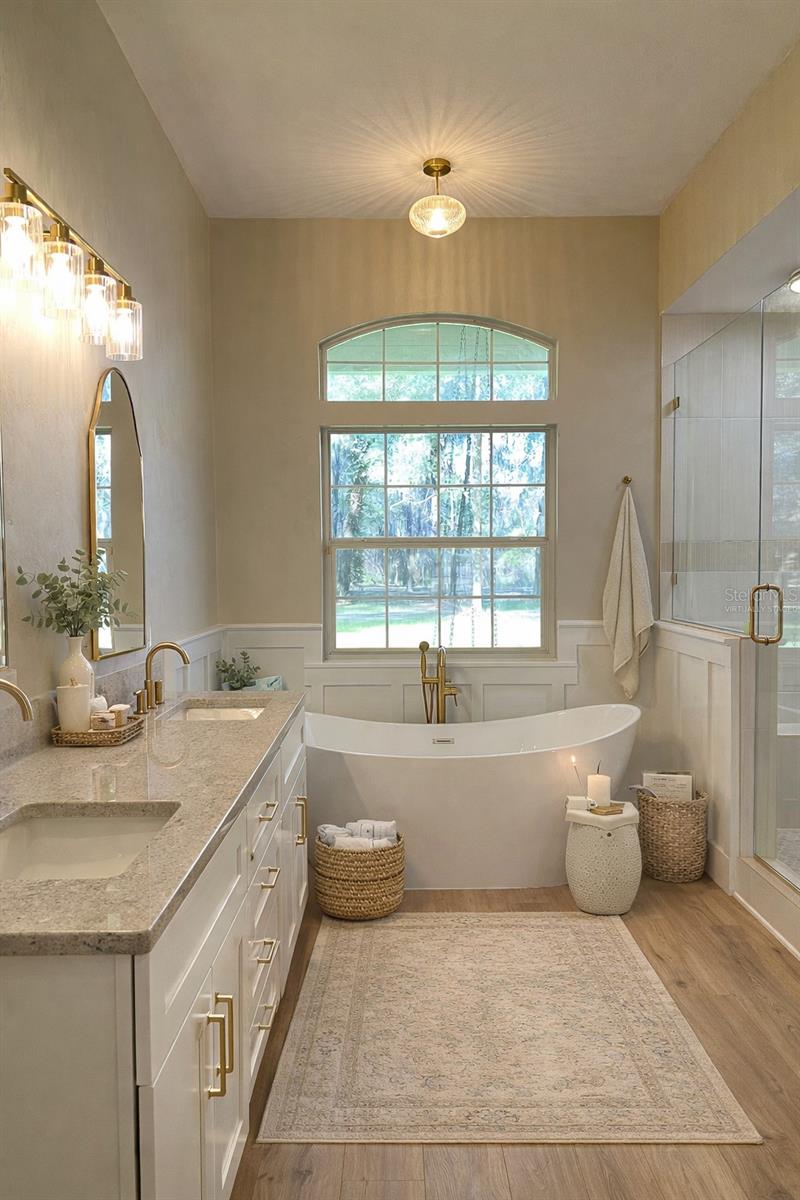 One or more photo(s) has been virtually staged. Welcome to this beautifully updated 3-bedroom, 2-bath home offering 2,517 square feet of spacious living on 5.81 private acres in Alachua, Florida. Thoughtfully designed with both comfort and functionality in mind, this home features an inviting floor plan filled with natural light, 10' ceilings, and generous living spaces, including a great room, ideal for everyday living and entertaining. The home has been completely updated with new luxury vinyl plank throughout, fully renovated kitchen/bathrooms, plumbing fixtures, tankless hot water heater, paint, electrical fixtures, landscaping.....etc. The spacious kitchen showcases modern finishes, new stainless steel appliances, ample cabinetry, and plenty of counter space, flowing seamlessly into the main living area and positioned around the corner from the formal dining room. The expansive primary suite provides a peaceful retreat with a private ensuite bath with walk in closet. Two well-sized guest bedrooms share an updated secondary bathroom. Additional highlights include oversized garage, a circular driveway, and welcoming sidewalks that guide you to the front door, providing both convenience and curb appeal. Step outside to the front or back porch to enjoy the serenity of nearly six acres of open land with mature trees, offering endless possibilities for gardening, animals, recreation, or future expansion. With no HOA and plenty of room to roam, this property delivers the perfect blend of modern updates, space, and quiet country living — all just minutes from downtown Alachua and a short drive to Gainesville.