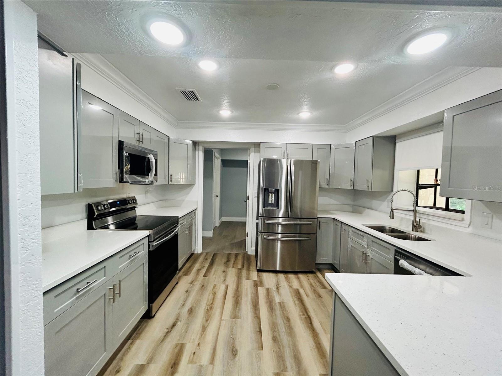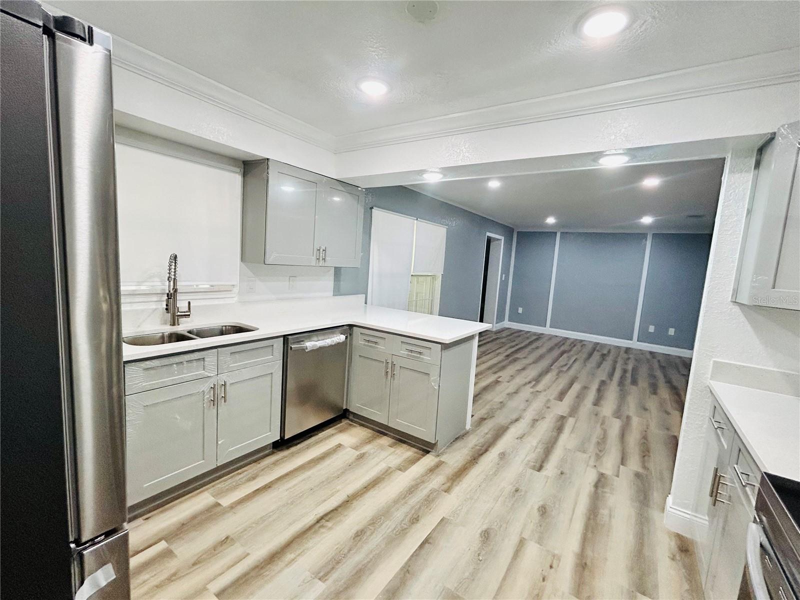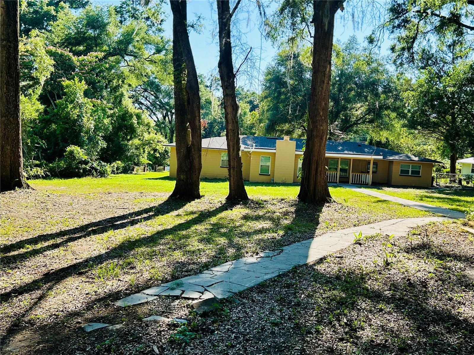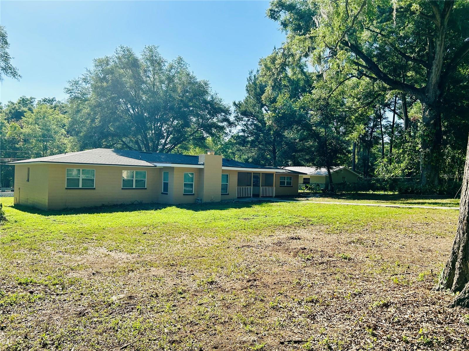 Welcome home to this beautiful 4-bedrooms, 3-bathrooms, plus 2 additional rooms that can be used as a den, office or playroom. Located in the Alachua Leroys Add Subdivision. Minutes away from I-75, library, hospital and shopping centers etc. 2 spacious living areas, a den with a wood burning fireplace, screen porch in the back for your weekend BBQ or family entertainment. This home is completely remodeled with luxury vinyl plank flooring throughout the entire house. New kitchen cupboards with sparkle Quartz countertops, new double sides stainless-steel sink and faucets looking out into your Hugh backyard, all new stainless-steel appliances. Fully renovated bathrooms. All new light fixtures, window shades etc. Freshly painted interior and exterior. New roof 2024. Hugh outdoor building in the backyard can be used for additional storage etc. This home is a move in ready. Schedule your showing today!!