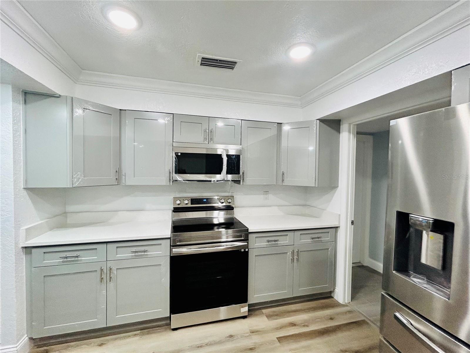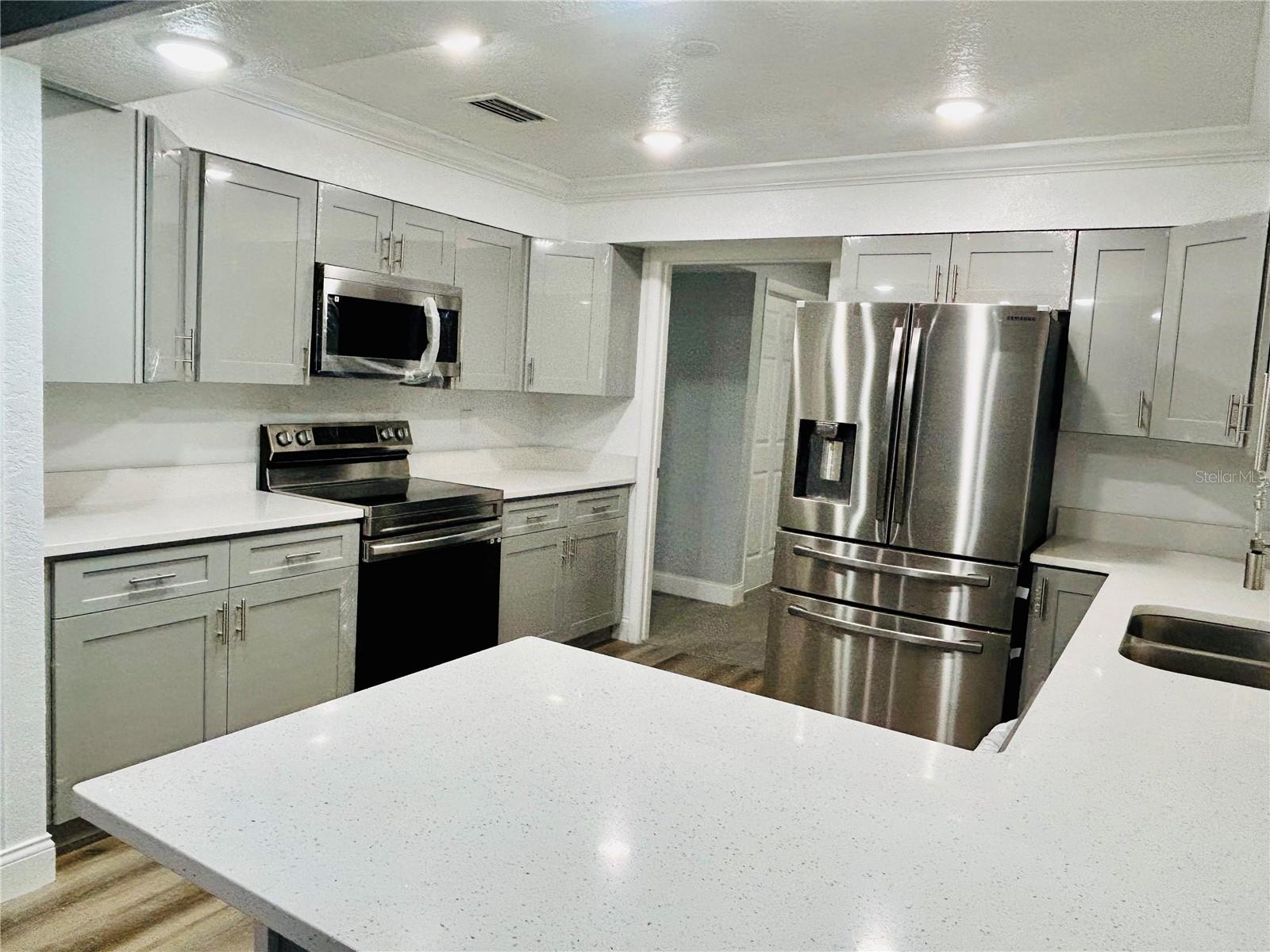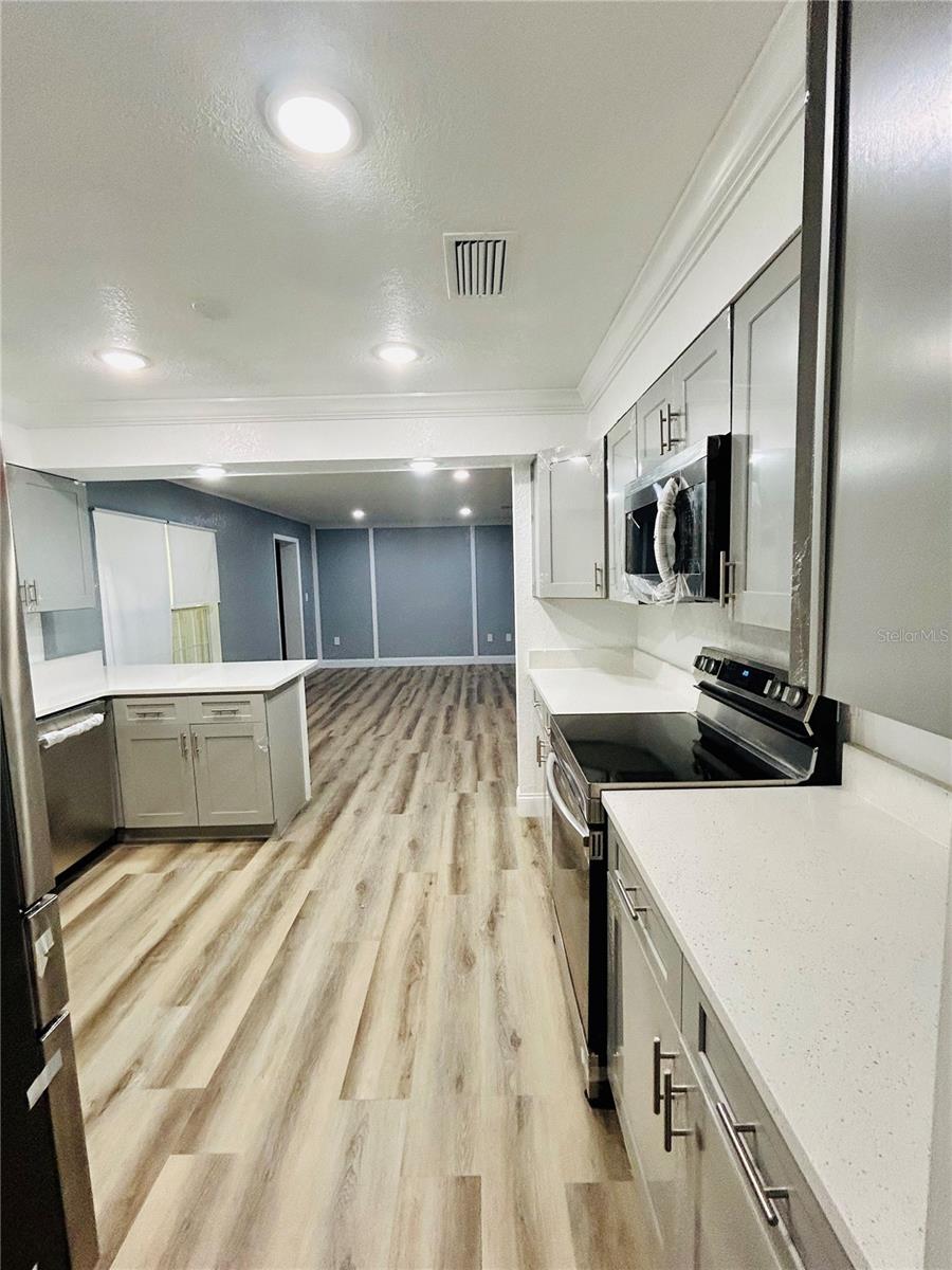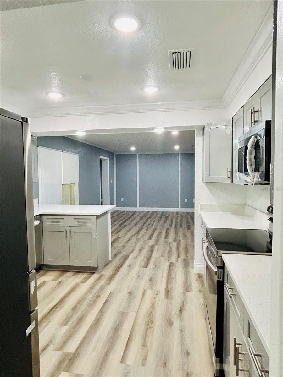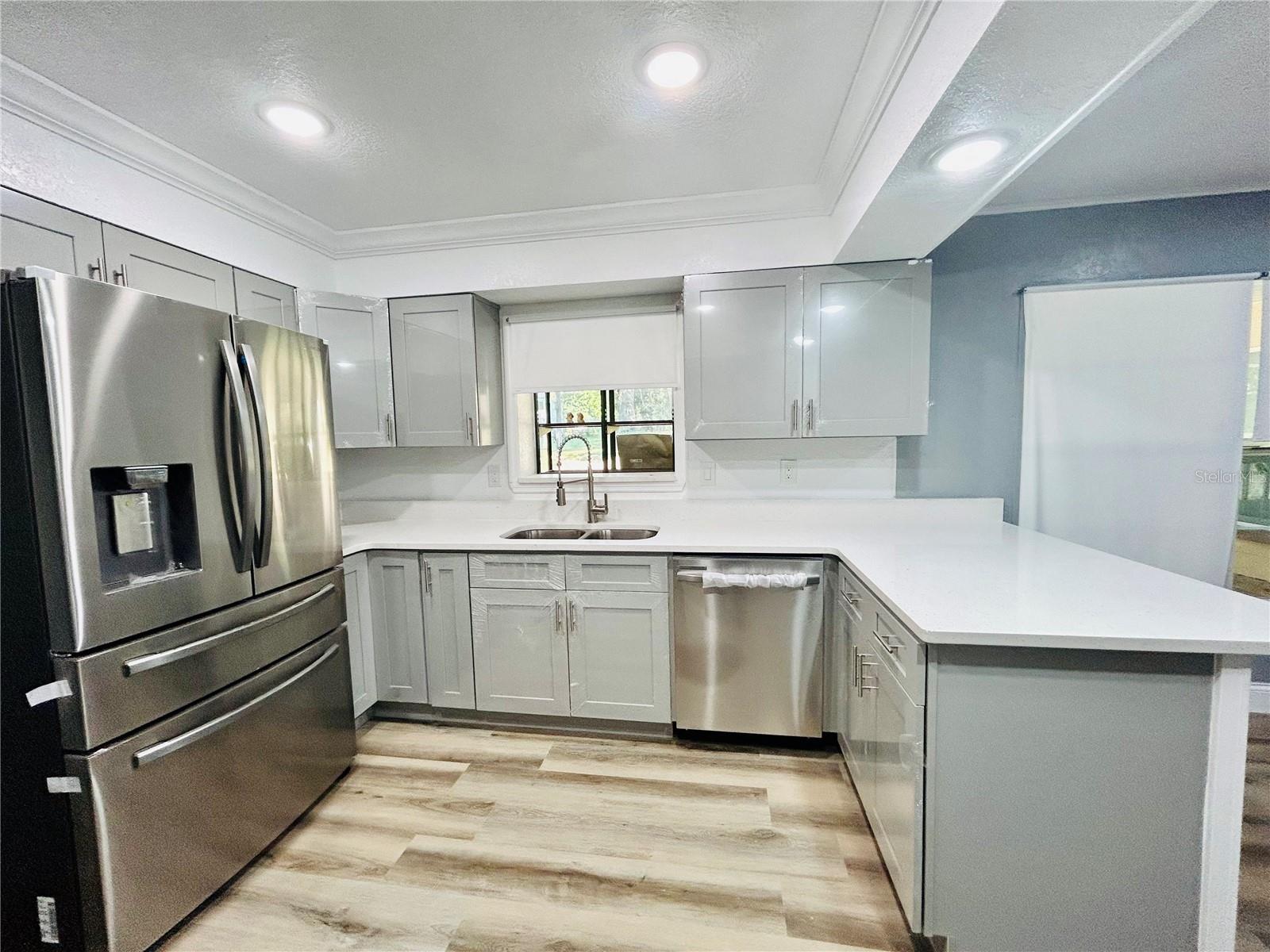 Welcome home to this beautiful 4-bedrooms, 3-bathrooms, plus 2 additional rooms that can be used as a den, office or playroom. Located in the Alachua Leroys Add Subdivision. Minutes away from I-75, library, hospital and shopping centers etc. 2 spacious living areas, a den with a wood burning fireplace, screen porch in the back for your weekend BBQ or family entertainment. This home is completely remodeled with luxury vinyl plank flooring throughout the entire house. New kitchen cupboards with sparkle Quartz countertops, new double sides stainless-steel sink and faucets looking out into your Hugh backyard, all new stainless-steel appliances. Fully renovated bathrooms. All new light fixtures, window shades etc. Freshly painted interior and exterior. New roof 2024. Hugh outdoor building in the backyard can be used for additional storage etc. This home is a move in ready. Schedule your showing today!!