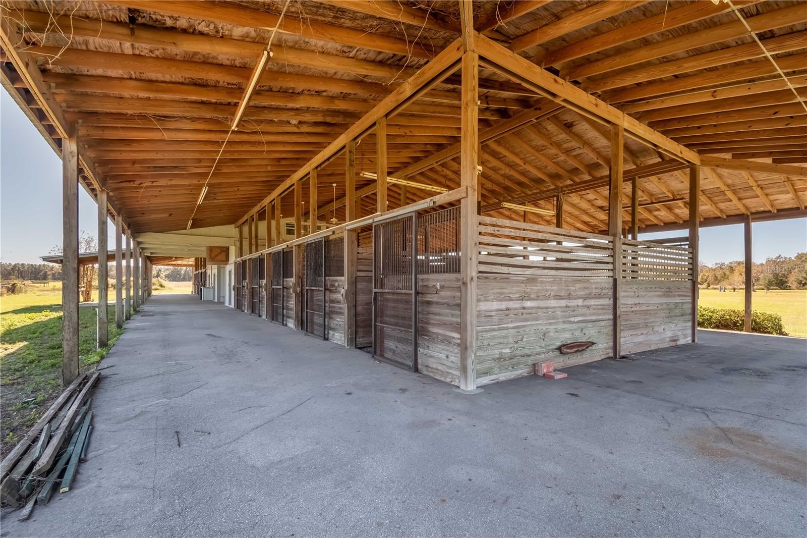 Nestled north of Gainesville on a tranquil stretch of Alachua countryside, this remarkable 78.6-acre property presents endless possibilities for the discerning buyer. Lightly dotted with mature trees and offering lots of open space, the property enjoys a peaceful location along a greenbelt for added privacy and picturesque surroundings. Previously established as a horse farm, this property is ready for a visionary owner to restore its former charm or transform it into something new. The standout feature is the well-designed shed-row barn, equipped with 19 stalls, a tack room, feed room, barn office, and a second-story barn apartment—ideal for creating a comfortable live-work environment. Nearby, remnants of paddocks and spacious pastures hint at the property's thoughtfully planned equestrian roots, offering a layout that could be brought back to its former glory with some time and care or redesigned into a configuration that better suits your needs. Also established on the property is a log cabin and a mobile. The mobile is a complete haul away, but does have its own electric hook-up, well, and septic for use as a potential future home site. The log home, meanwhile, is in need of some repairs including siding and a new HVAC system, but has potential for those with a bit of imagination. Conveniently located just 28 minutes from the Alachua County Agriculture and Equestrian Center, 30 minutes from the University of Florida, and 35 minutes from UF Health Shands Hospital, this farm strikes the perfect balance between seclusion and accessibility. Ocala, celebrated as the "Horse Capital of the World®," is a scenic drive away, providing access to world-class equestrian competitions, premium feed and tack retailers, and an array of equine services. Whether you're seeking an investment, a personal project, or a working farm, this property offers a prime opportunity to create your dream.
