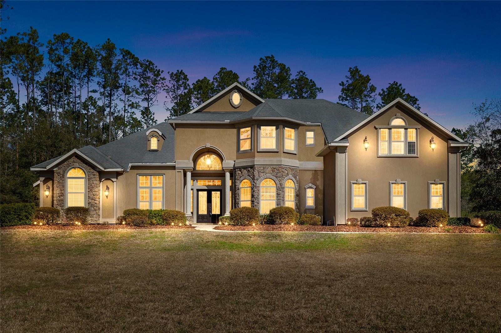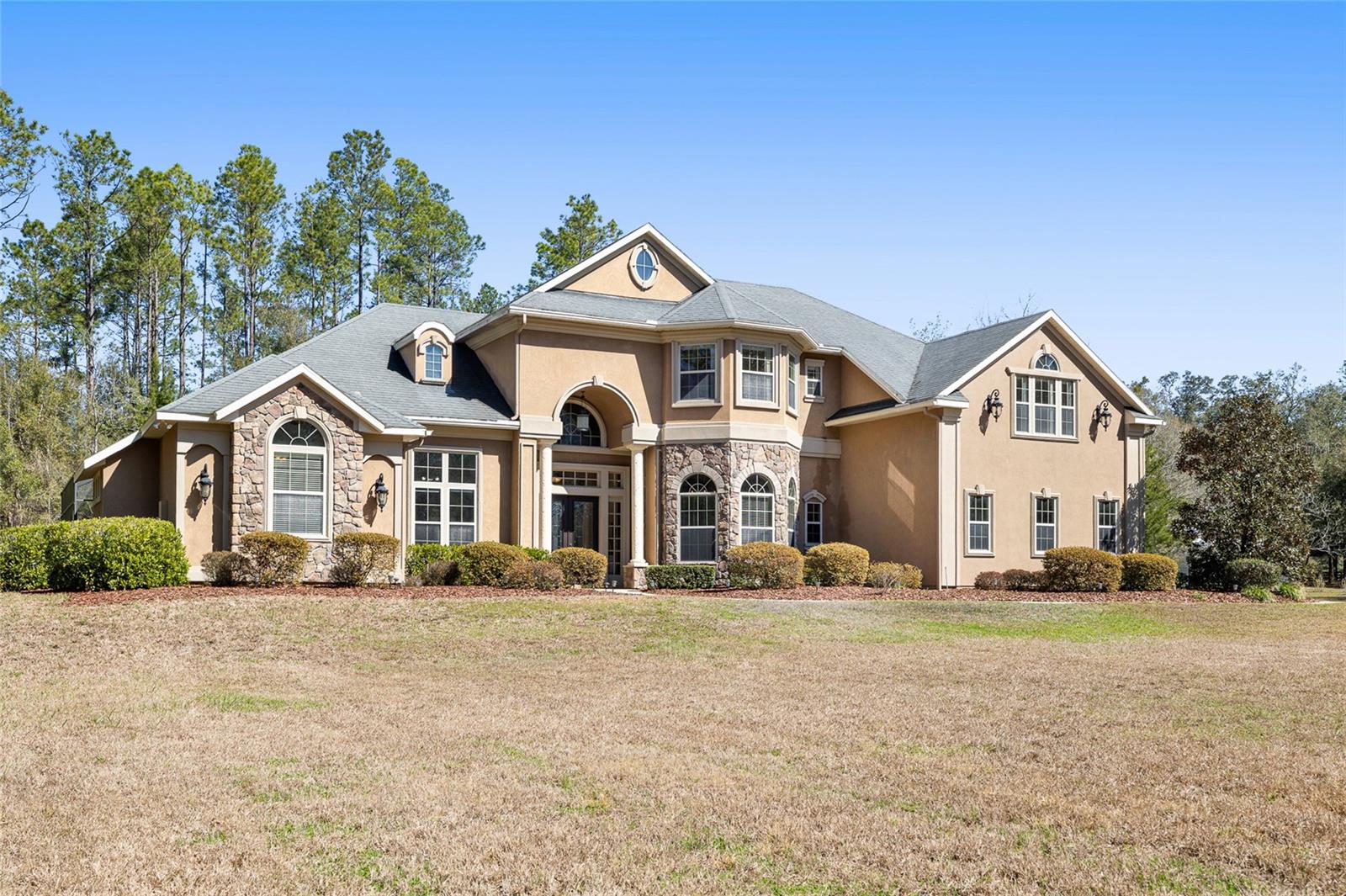 Experience the pinnacle of luxury living with this breathtaking two-story estate, nestled on an expansive 5-acre property. This grand residence boasts five generously sized bedrooms, and a three-car garage providing ample space for family and guests alike. From its striking curb appeal to its meticulously designed interiors, this home exudes charm and elegance. The main living areas feature soaring ceilings, abundant natural light, and a seamless flow perfect for entertaining or relaxing. The gourmet kitchen, equipped with top-of-the-line appliances and large pantry will delight even the most discerning chef. The first-floor master suite offers a private retreat with a spa-like en-suite bathroom, large walk-in closet and serene views. A private office is also on the first level while the remaining bedrooms provide privacy upstairs. Step outside to your personal oasis, where a sparkling pool, spa, and multiple areas to treat await. Whether you're hosting summer gatherings or seeking tranquil moments, the outdoor space is the perfect escape. With 5 acres to call your own, the possibilities are endless—create a garden paradise, enjoy recreational activities, or simply revel in the privacy and serenity this property provides. Brand new roof, pool pump, water heaters and more!